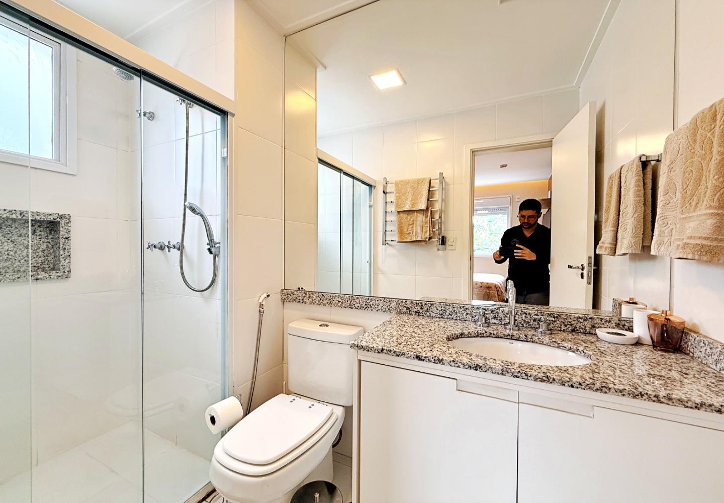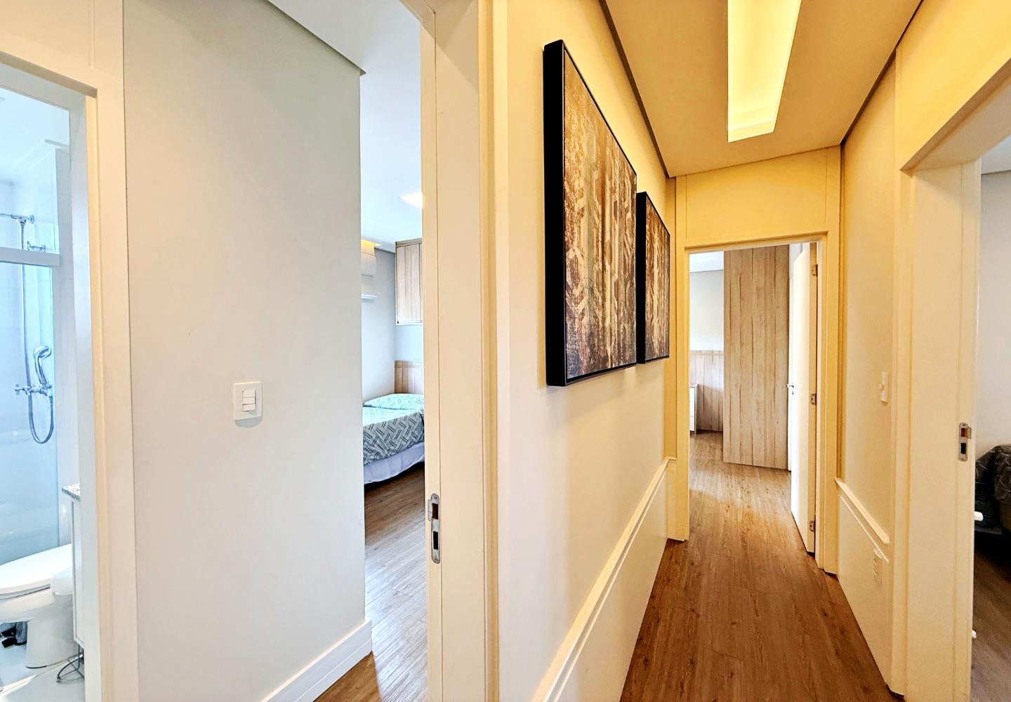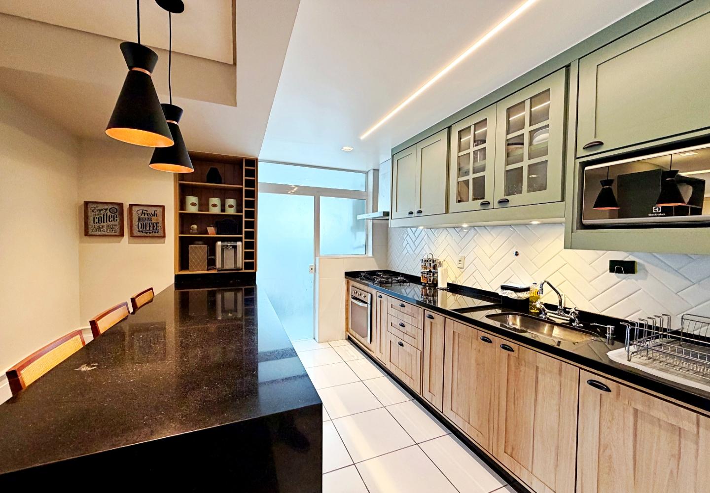 A cozinha é funcional e bem equipada, apoiando a área social sem separar os ambientes. Na área íntima são três suítes bem iluminadas, com banheiros completos e circulação reservada. Imóvel pronto para uso, sem necessidade de intervenções imediatas.