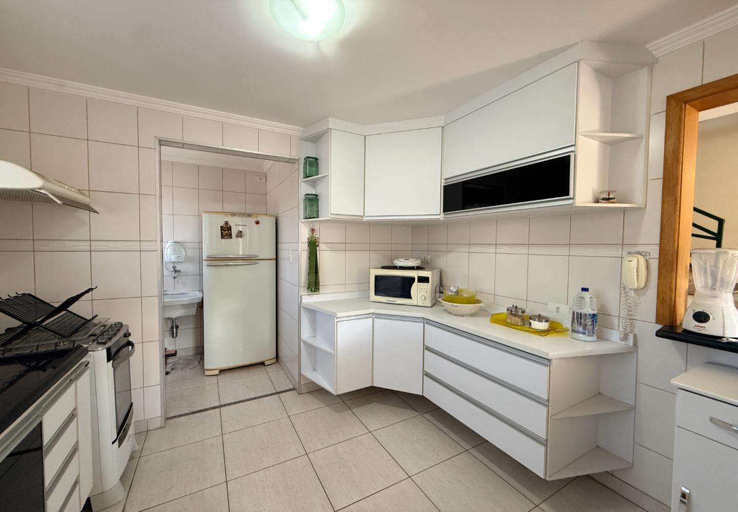 Apartamento duplex mobiliado com 215m² no Village de La Colline, com ambientes bem definidos entre área social e íntima. No pavimento principal, o living integra estar e jantar, com lareira em pedra e acesso direto à varanda voltada para o verde. A cozinha é independente, com armários planejados e passa-pratos para a sala, além de área de serviço reservada e lavabo de apoio na área social.