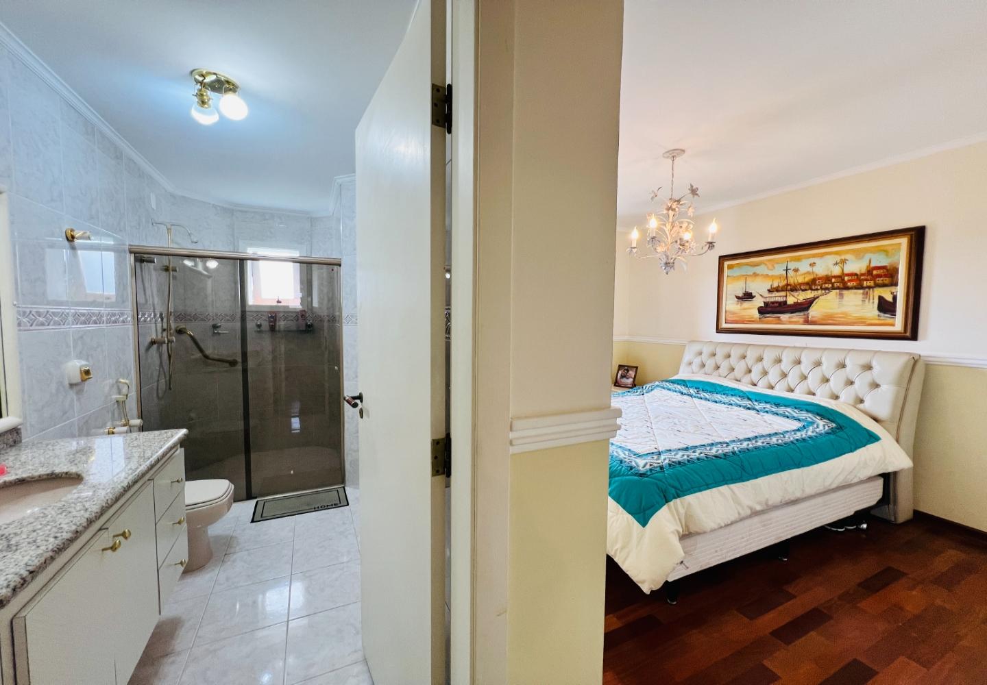 A área íntima conta com quatro dormitórios, sendo três com portas-balcão, incluindo duas suítes com varanda e vista agradável. Os ambientes são bem dimensionados, com boa distribuição e privacidade.