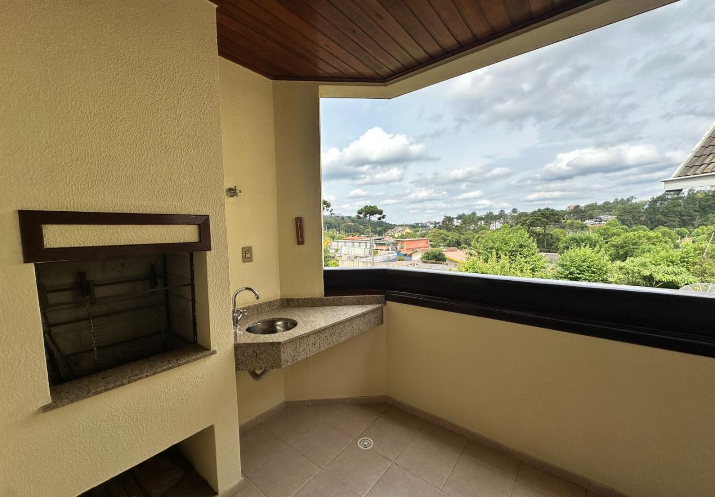 Apartamento localizado no primeiro andar do Condomínio Residencial Vila Quebec, com 95 m² de área privativa e planta bem distribuída. A sala comporta dois ambientes e conta com lareira, conectada a uma sacada ampla com churrasqueira e pia de apoio, criando uma extensão natural da área social.