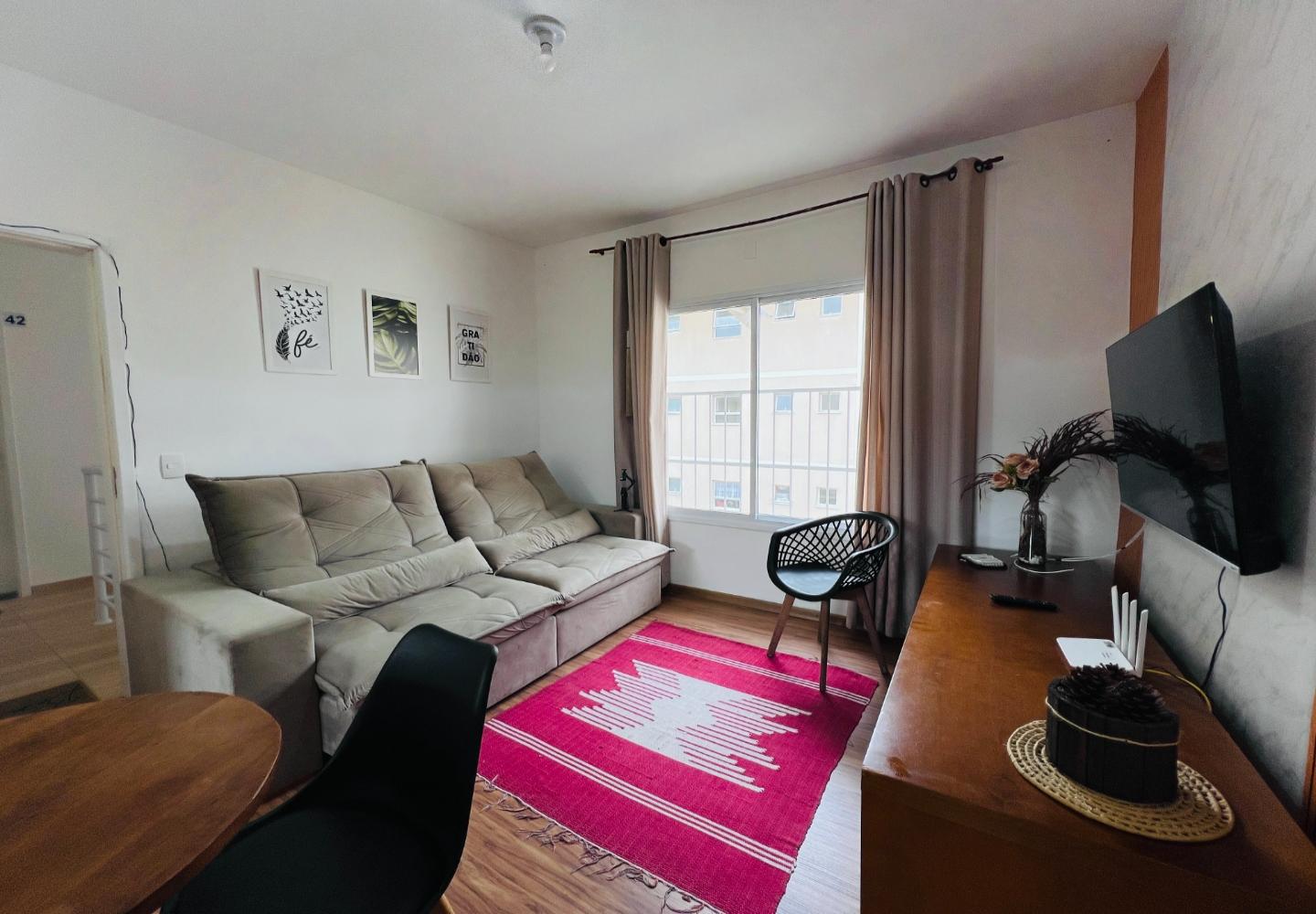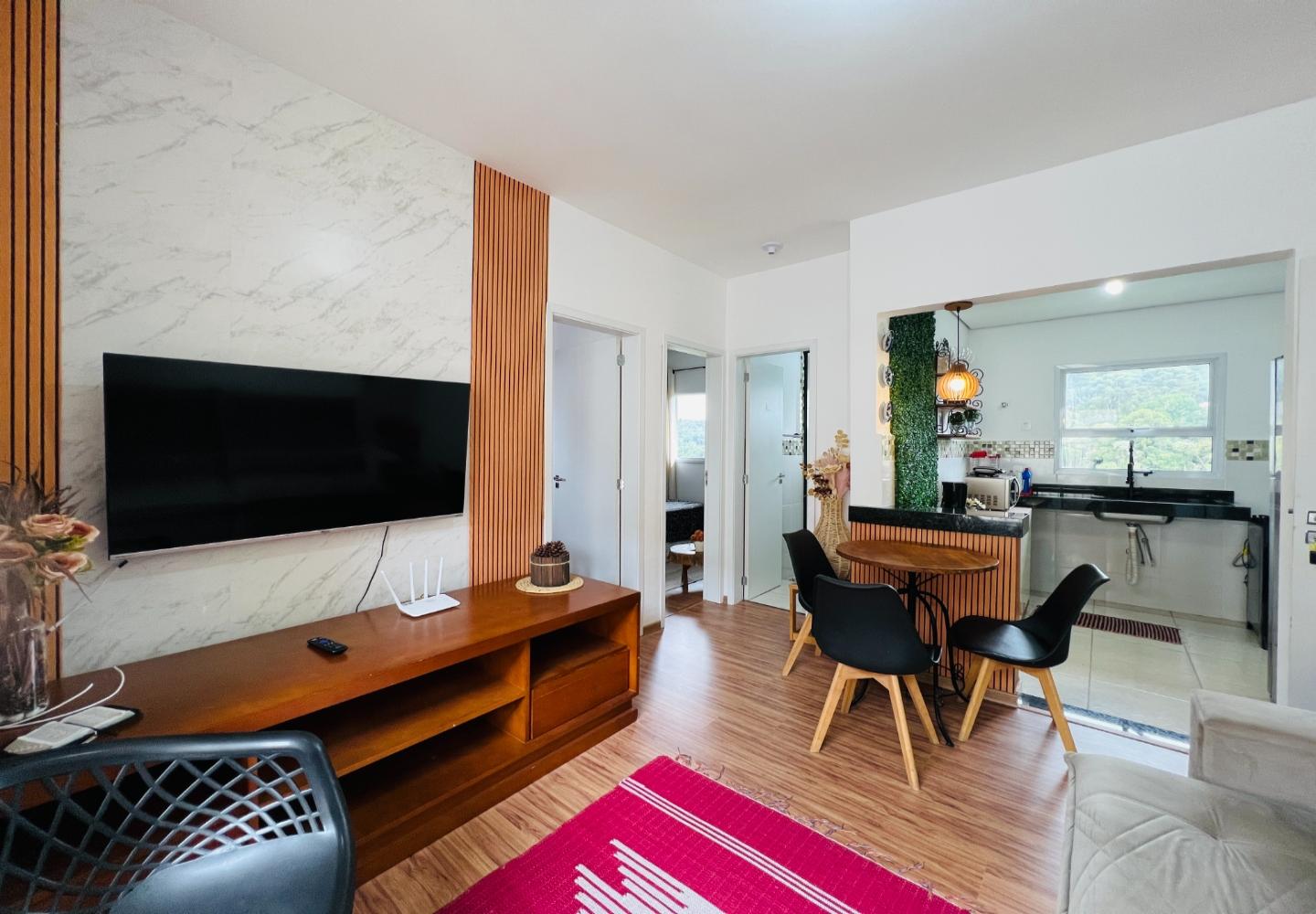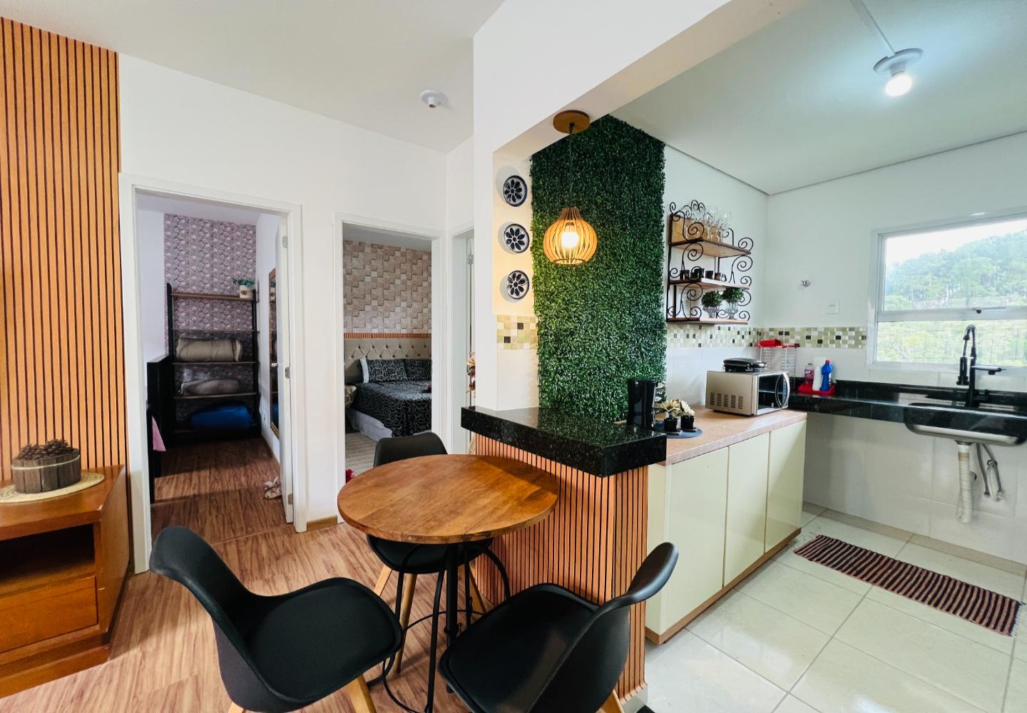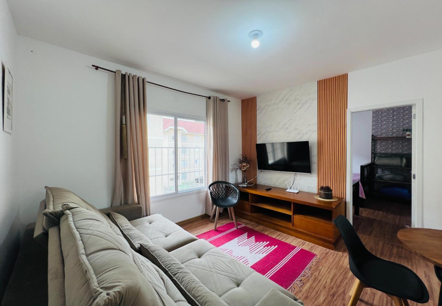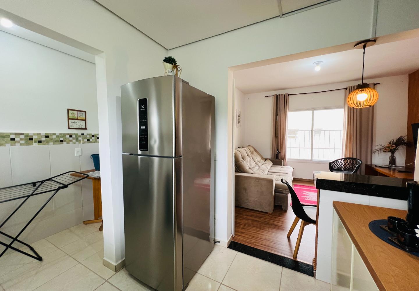 Localizado no Bosque das Araucárias, na região da Vila Marinela, este apartamento de 57 m² aproveita bem a planta e oferece ambientes claros e funcionais. A sala integra estar e jantar com janelas amplas, enquanto a cozinha mantém bancada em granito, ventilação natural e conexão direta com a área de serviço.