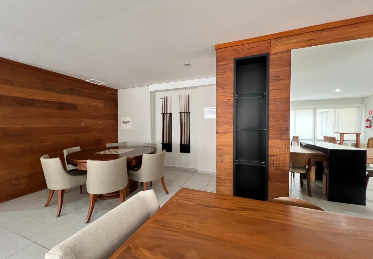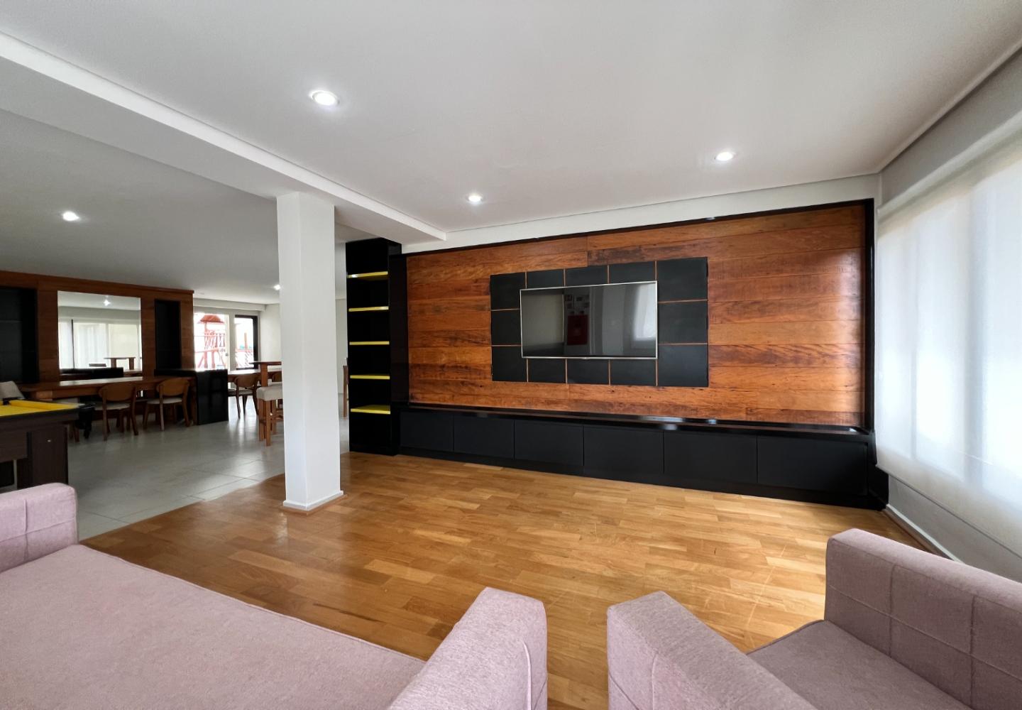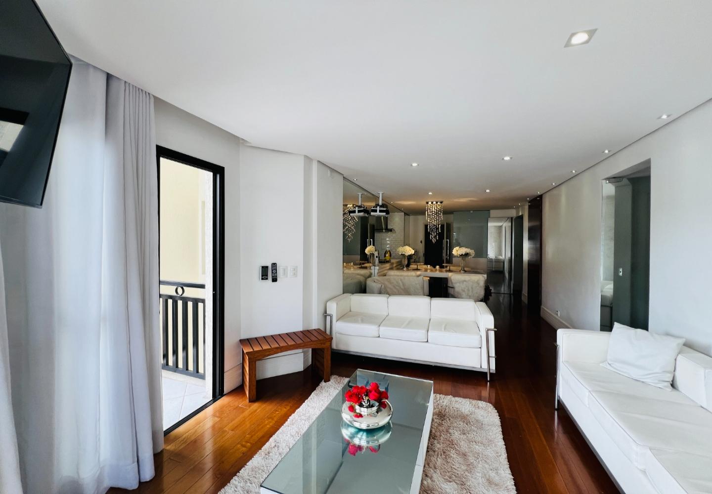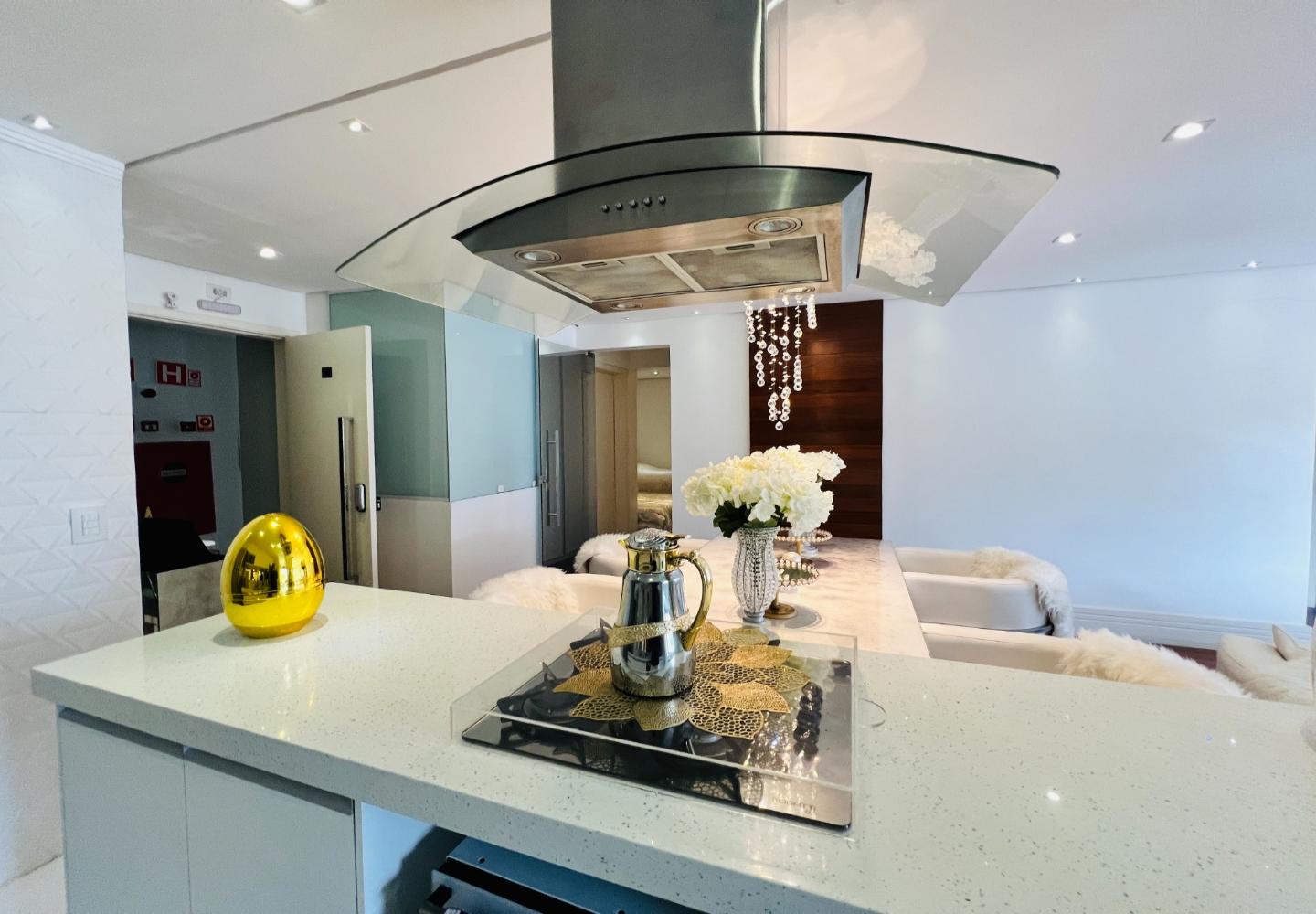 O imóvel será vendido mobiliado, com decoração em tons claros, iluminação embutida e detalhes que valorizam o conjunto, como o lustre em cristais sobre a bancada. São 3 dormitórios, sendo 1 suíte, todos com armários e boa ventilação, além de dois banheiros com acabamento em pedra e box em vidro.