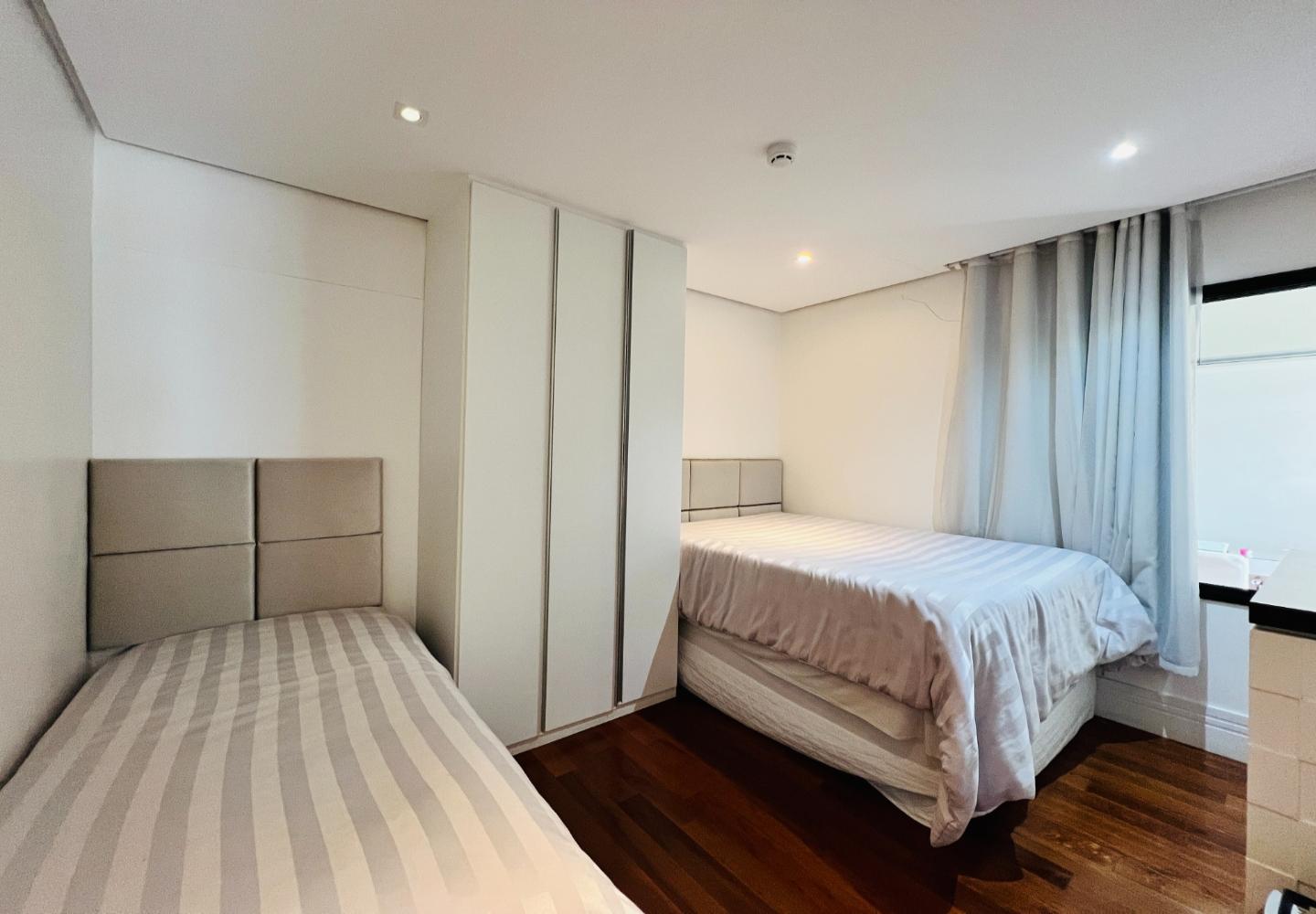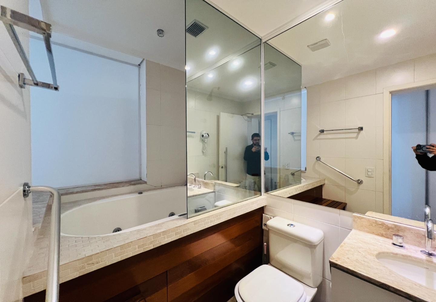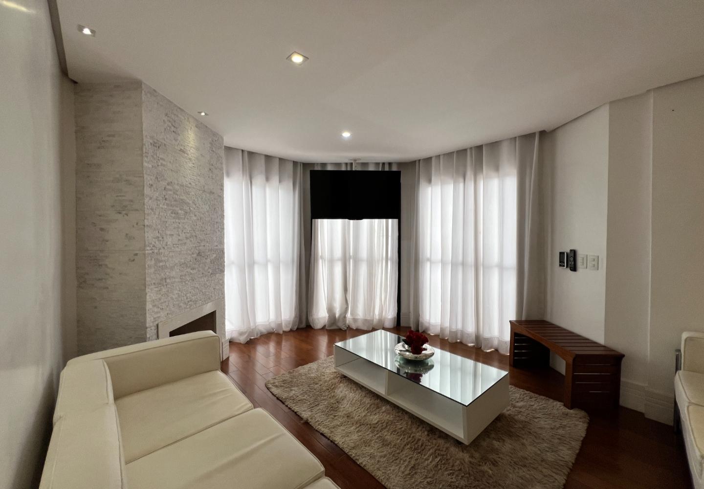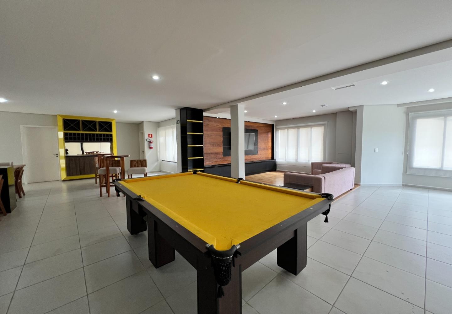 O imóvel será vendido mobiliado, com decoração em tons claros, iluminação embutida e detalhes que valorizam o conjunto, como o lustre em cristais sobre a bancada. São 3 dormitórios, sendo 1 suíte, todos com armários e boa ventilação, além de dois banheiros com acabamento em pedra e box em vidro.