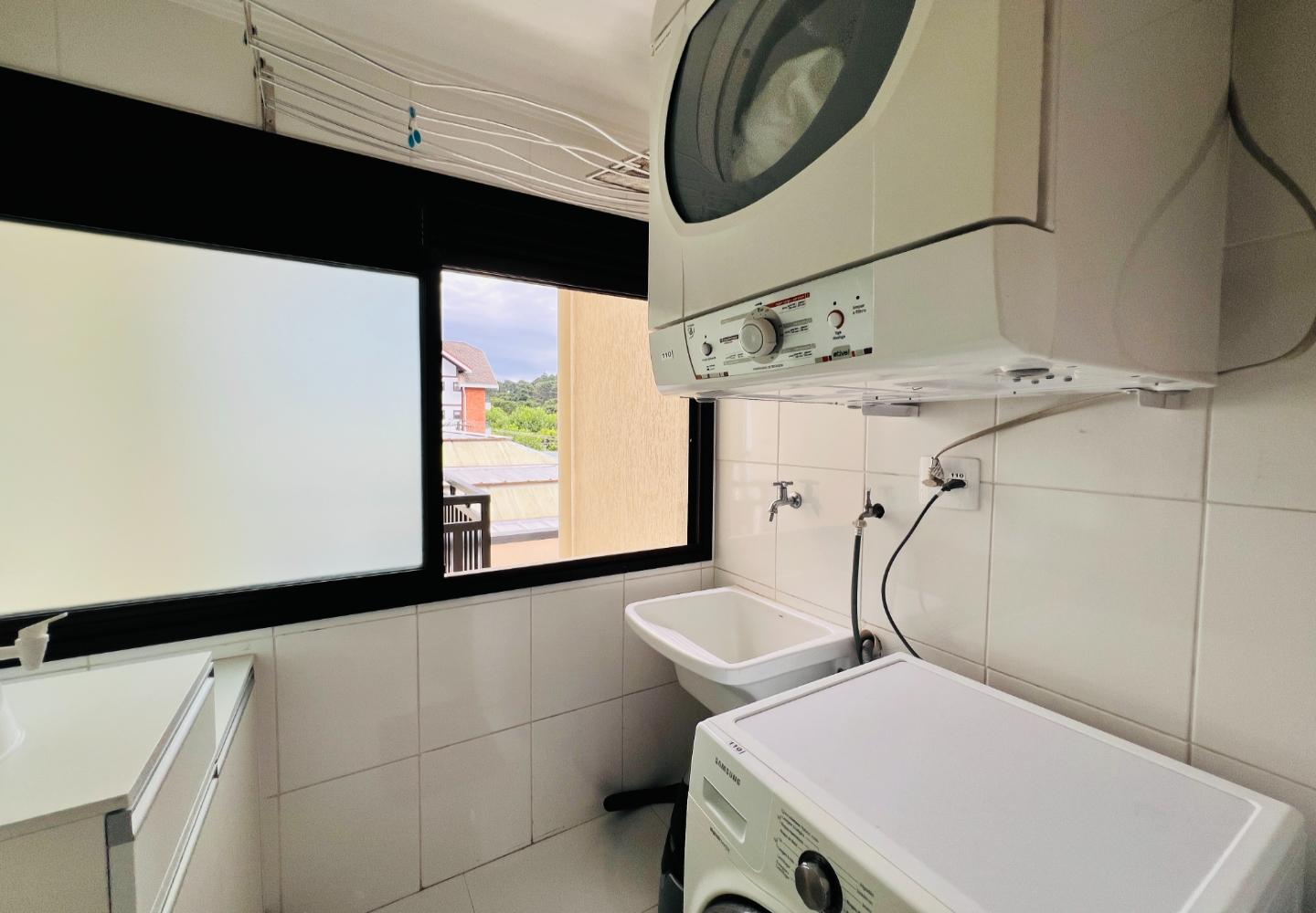 O condomínio já inclui no valor a água e o gás, o que garante mais previsibilidade aos custos mensais. O apartamento conta ainda com área de serviço independente, duas vagas de garagem livres e um depósito privativo tipo armário.
