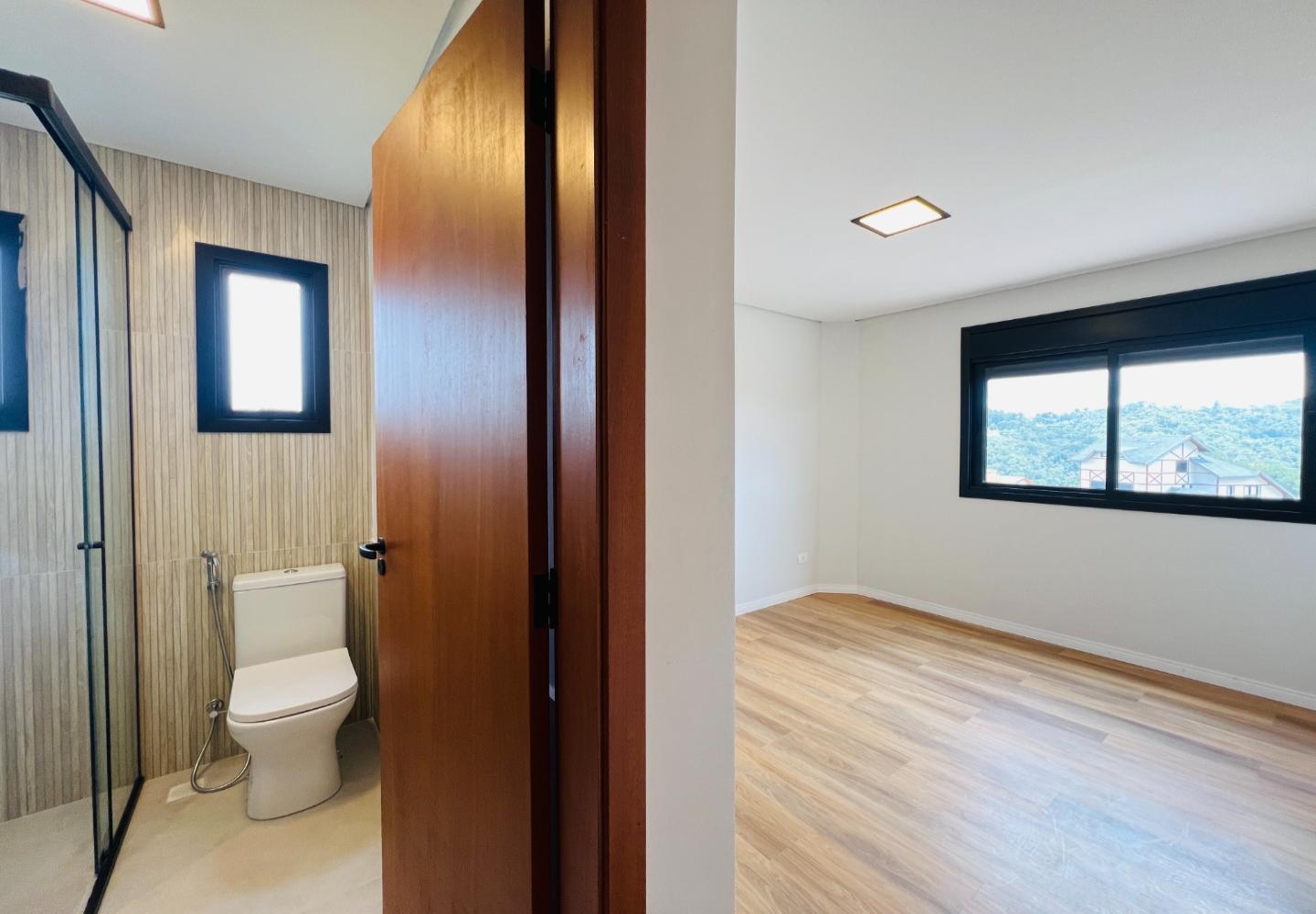 Residência dentro do condomínio Beverly Hills, na região do Atalaia. Imóvel que combina linhas contemporâneas com elementos de madeira e esquadrias escuras que valorizam a volumetria da fachada. A casa é distribuída em três níveis. No térreo ficam a área social integrada à cozinha com grandes aberturas para iluminação natural, além de uma suíte que oferece praticidade no dia a dia. O pavimento intermediário reúne três suítes, todas com piso vinílico e janelas amplas com vista para o condomínio. No nível superior está a suíte master, com bom espaço interno e privacidade.
