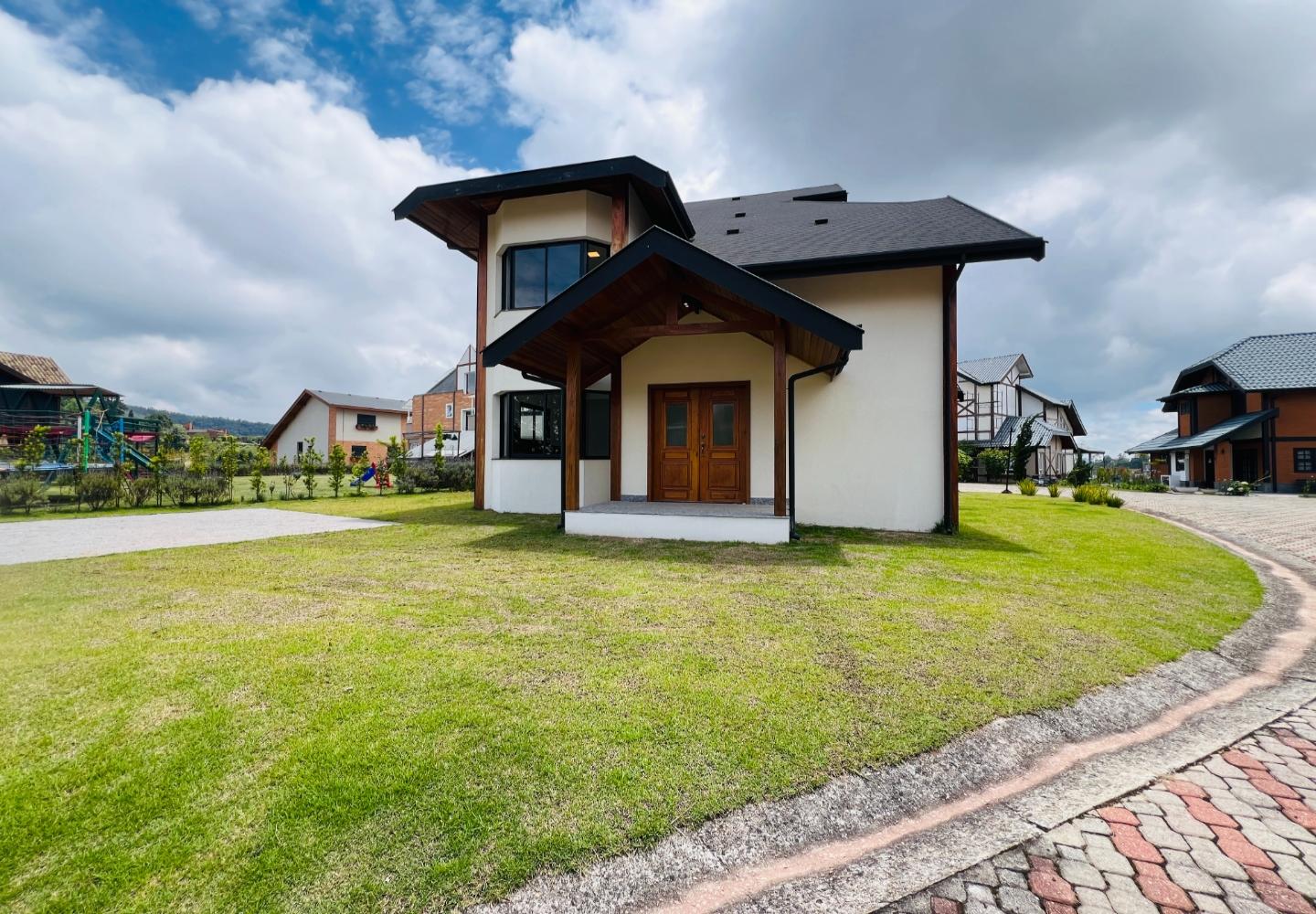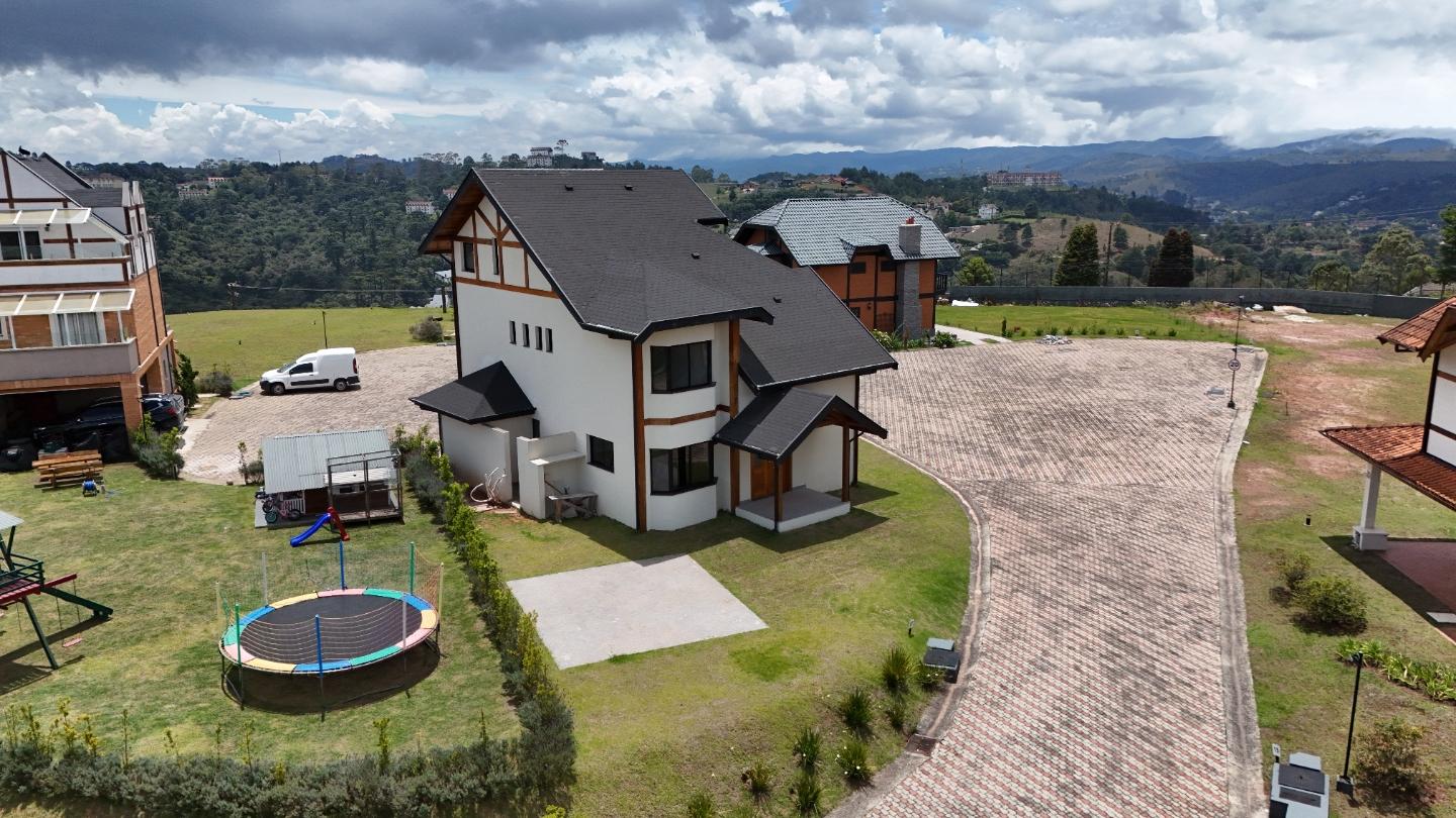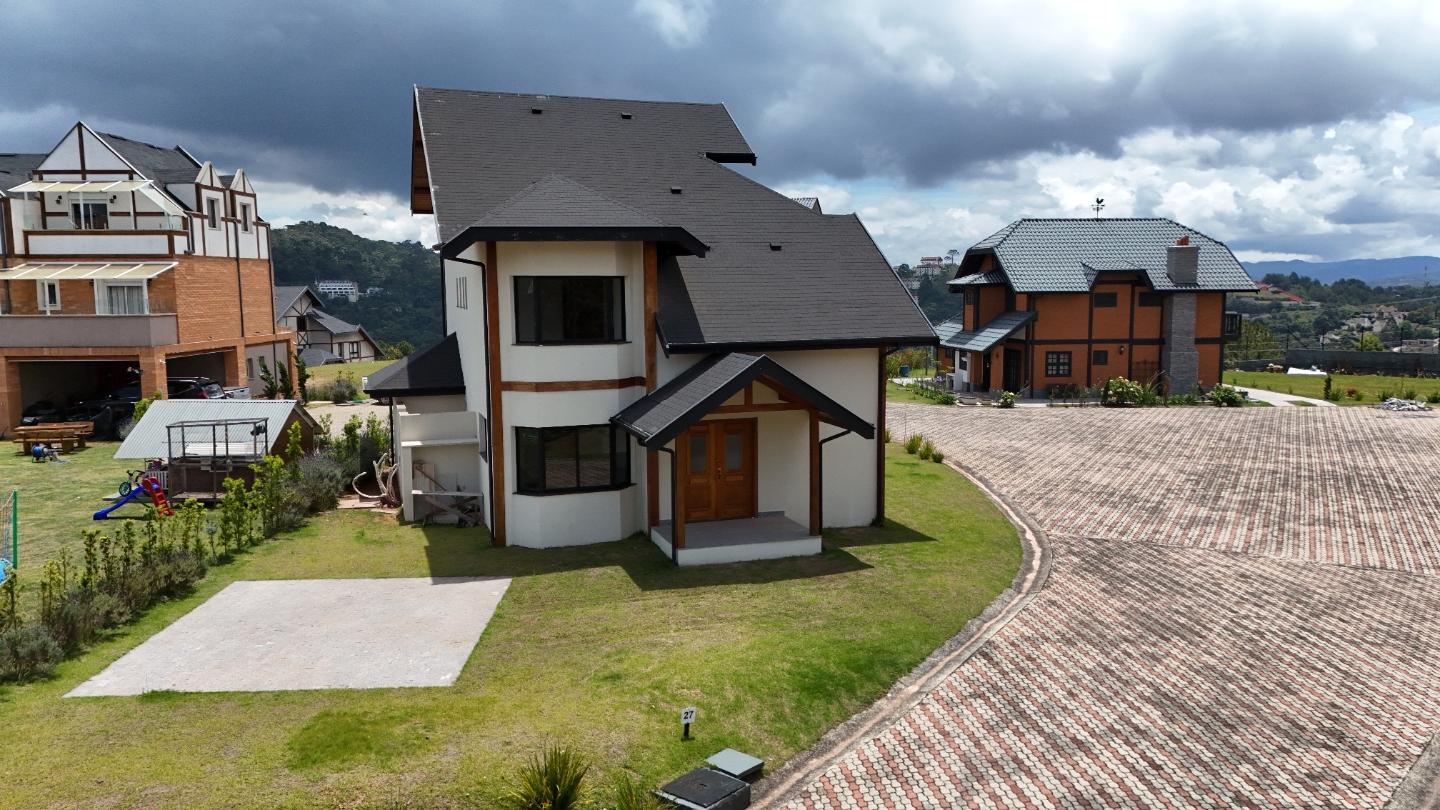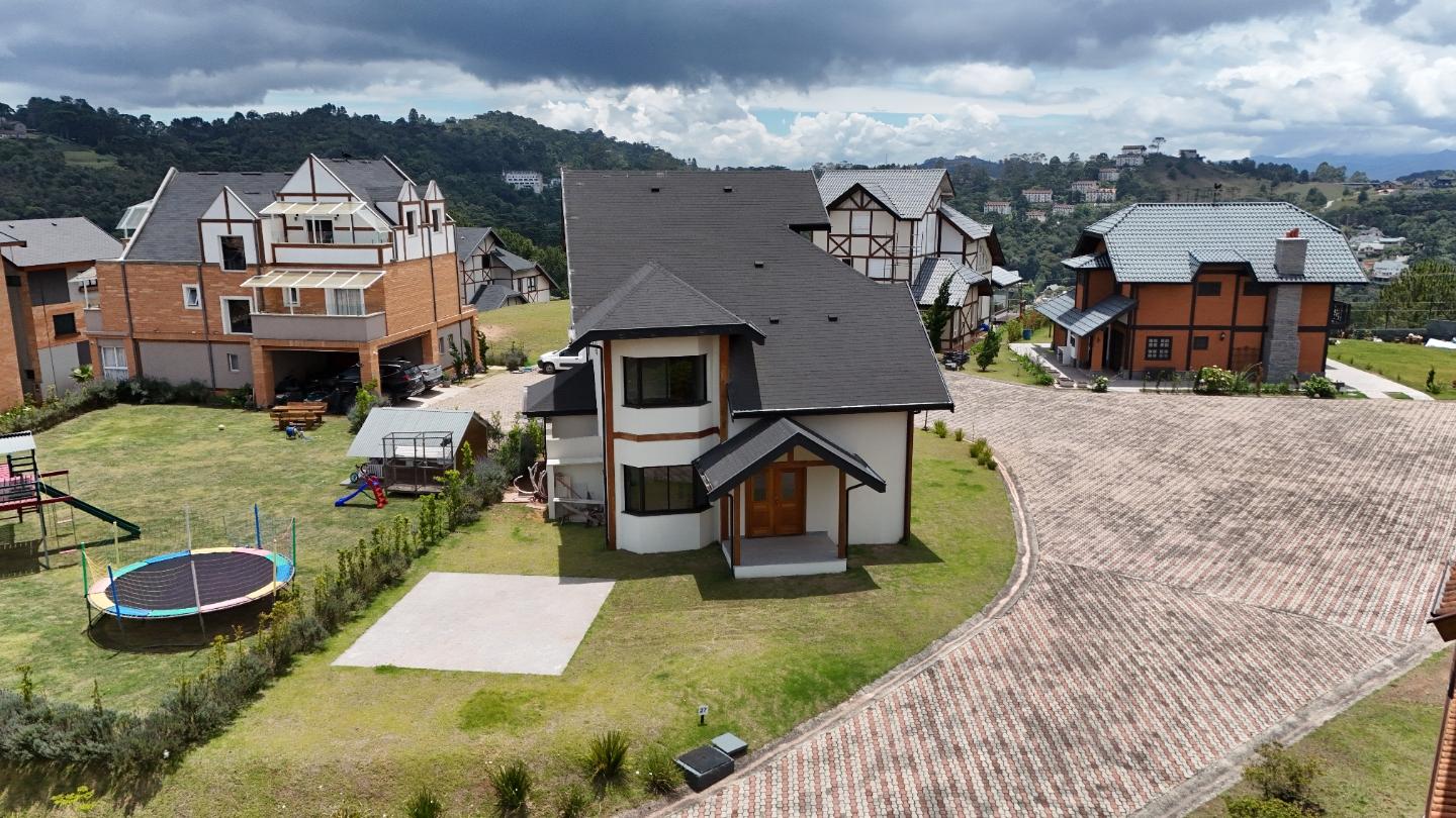 O condomínio Beverly Hills conta com controle de acesso, portaria e circulação interna pavimentada, mantendo um padrão arquitetônico homogêneo, com casas em estilo alpino e ruas amplas que reforçam a sensação de organização e segurança. A região do Atalaia está em expansão, com boa altitude, vista aberta e fácil acesso aos bairros centrais de Campos do Jordão.