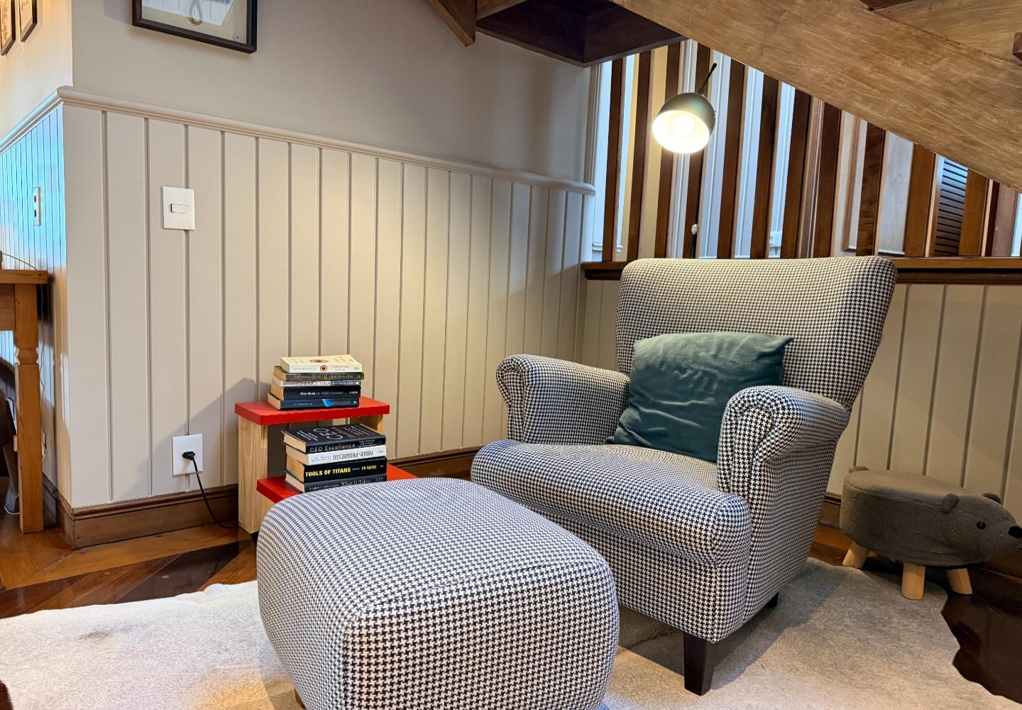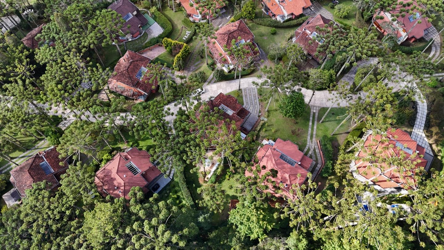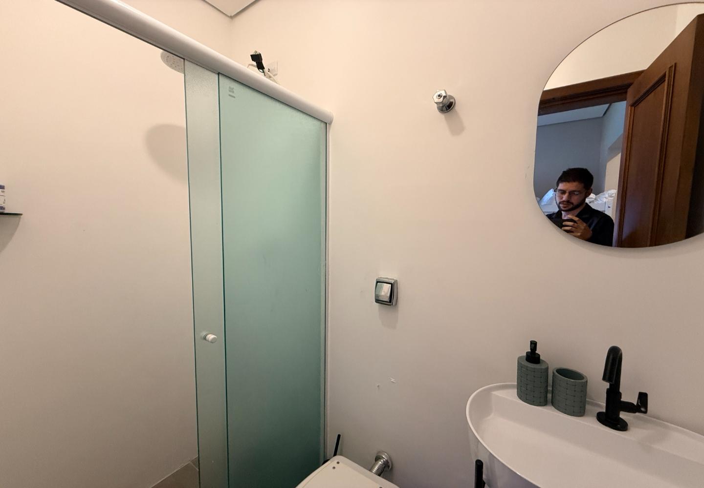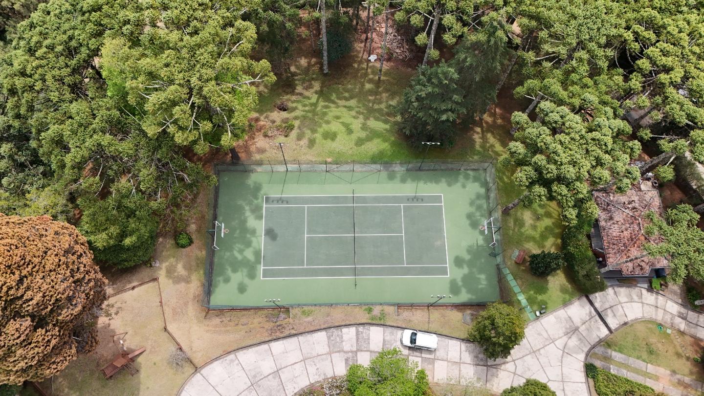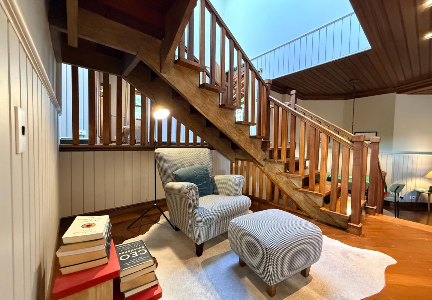 A área externa é um dos destaques, com hidromassagem para oito pessoas, espaço de convivência com fogo de chão e diferentes pontos para uso ao longo do dia. O imóvel conta com 240 m² de área privativa e vagas para até quatro veículos, em um condomínio reservado e arborizado.