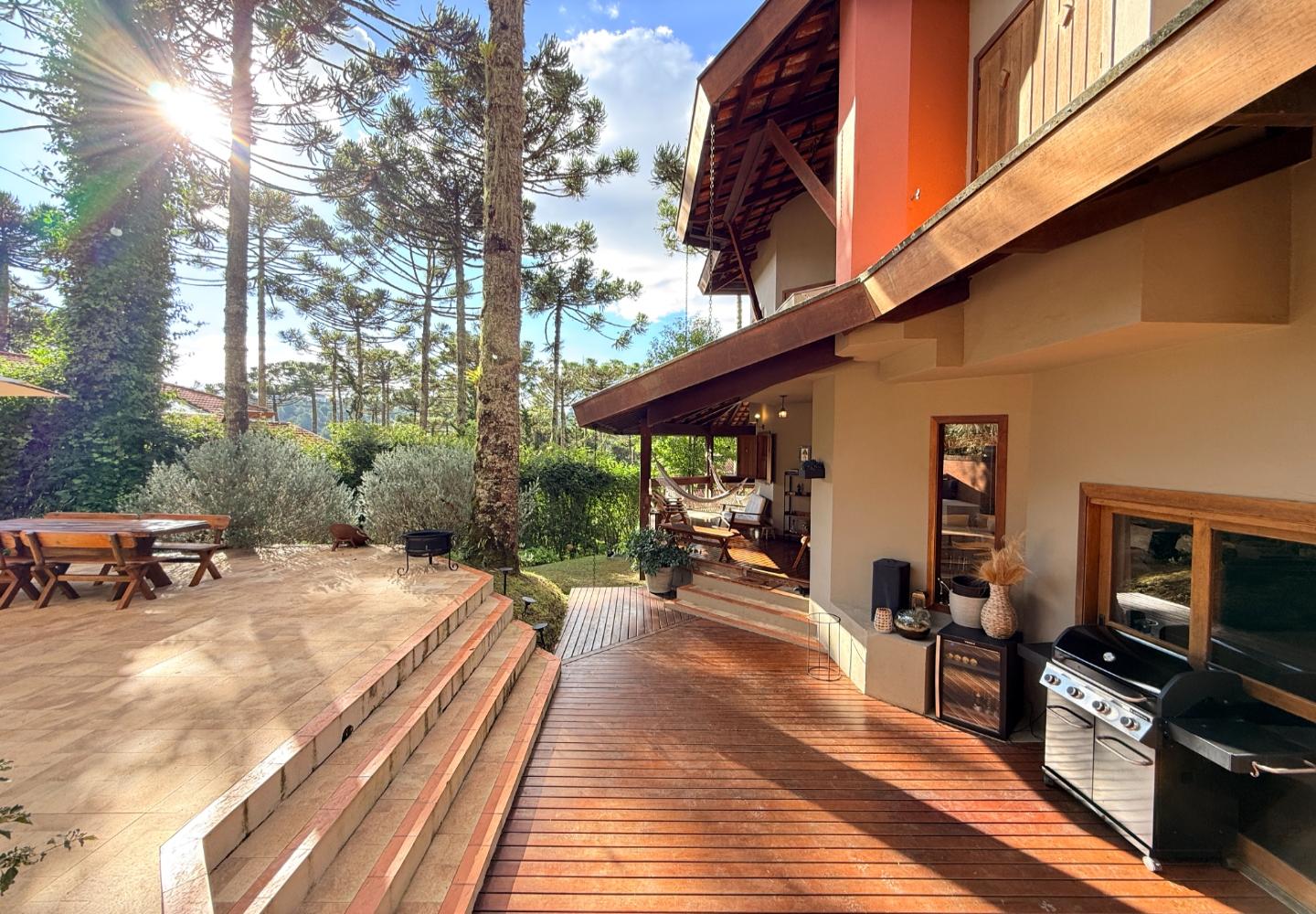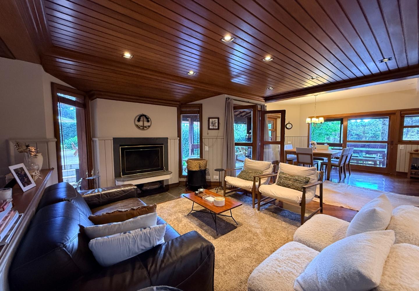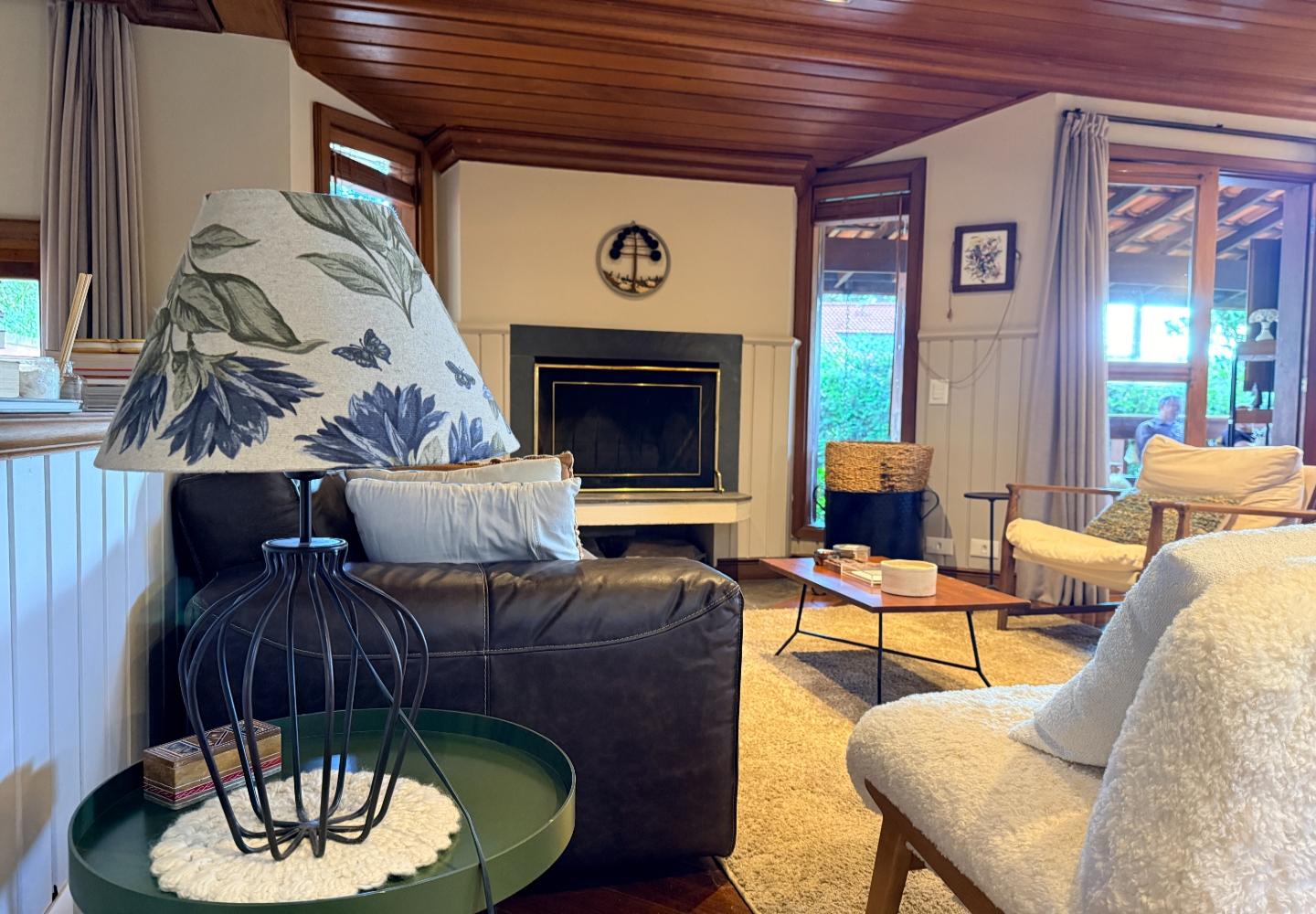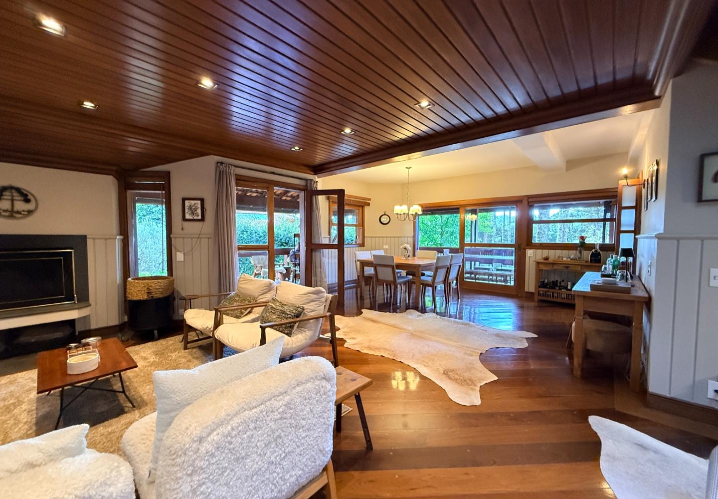 Localizada no condomínio Pinheiros da Lagoinha, com apenas 17 residências em meio a uma área arborizada, a casa oferece privacidade e boa integração com o entorno natural. A área social é ampla, com living para três ambientes, lareira e acesso direto à varanda com churrasqueira, que se conecta ao deck e aos espaços externos.