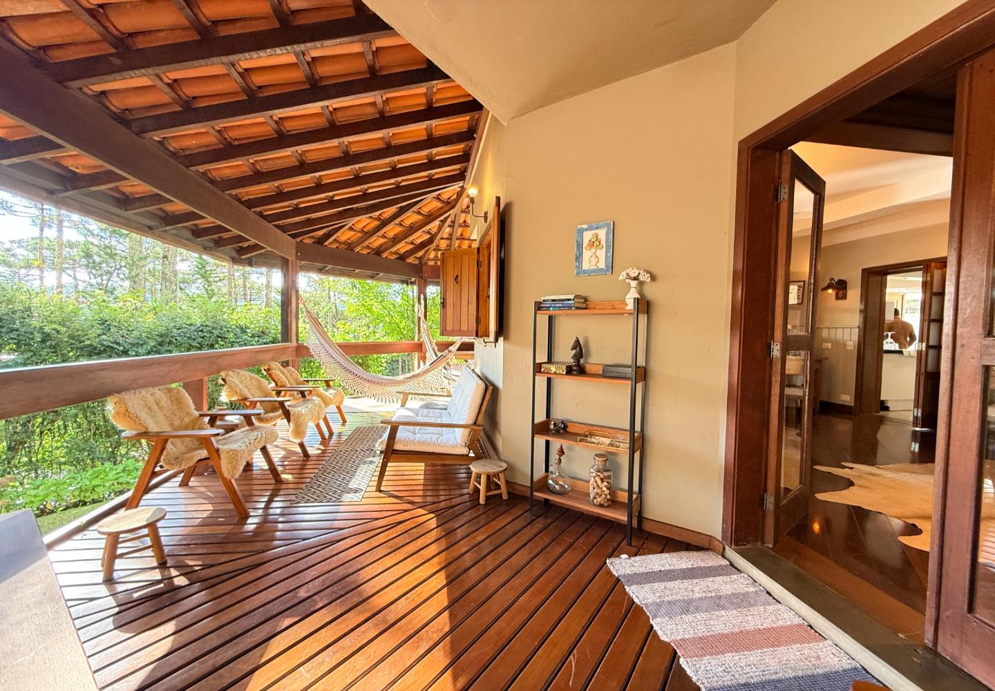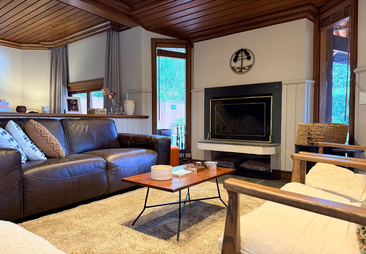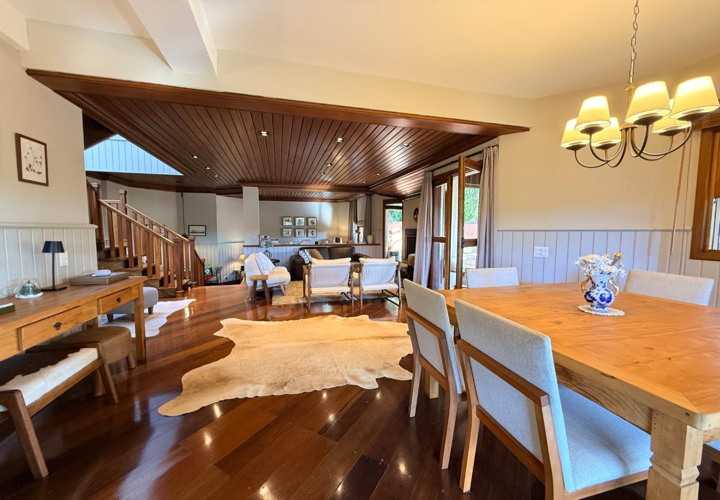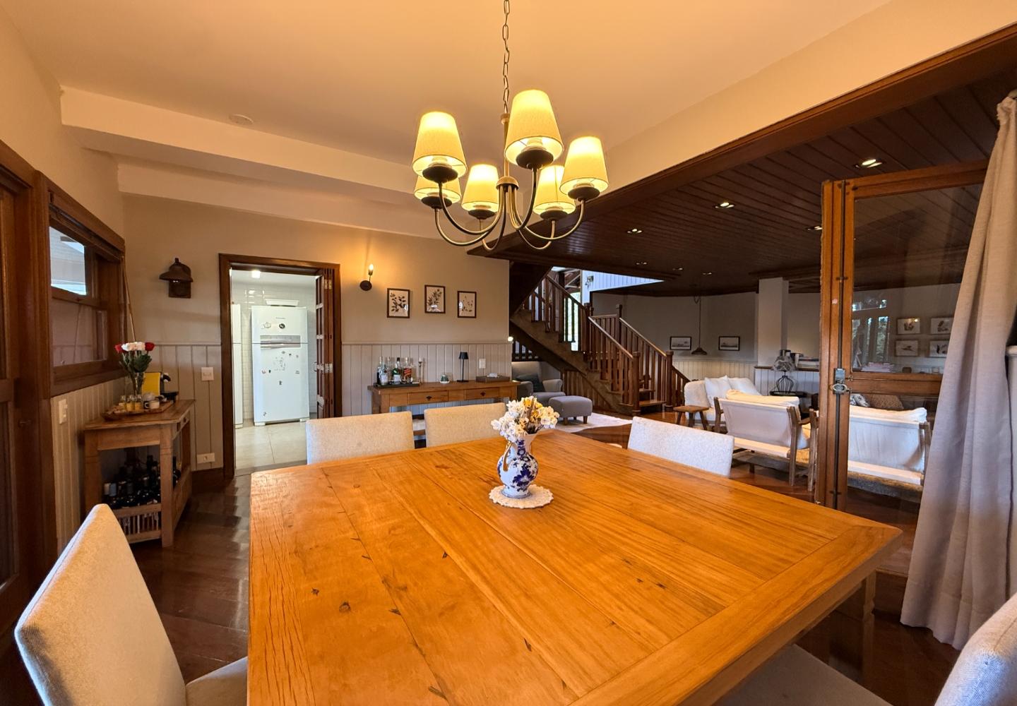 Localizada no condomínio Pinheiros da Lagoinha, com apenas 17 residências em meio a uma área arborizada, a casa oferece privacidade e boa integração com o entorno natural. A área social é ampla, com living para três ambientes, lareira e acesso direto à varanda com churrasqueira, que se conecta ao deck e aos espaços externos.