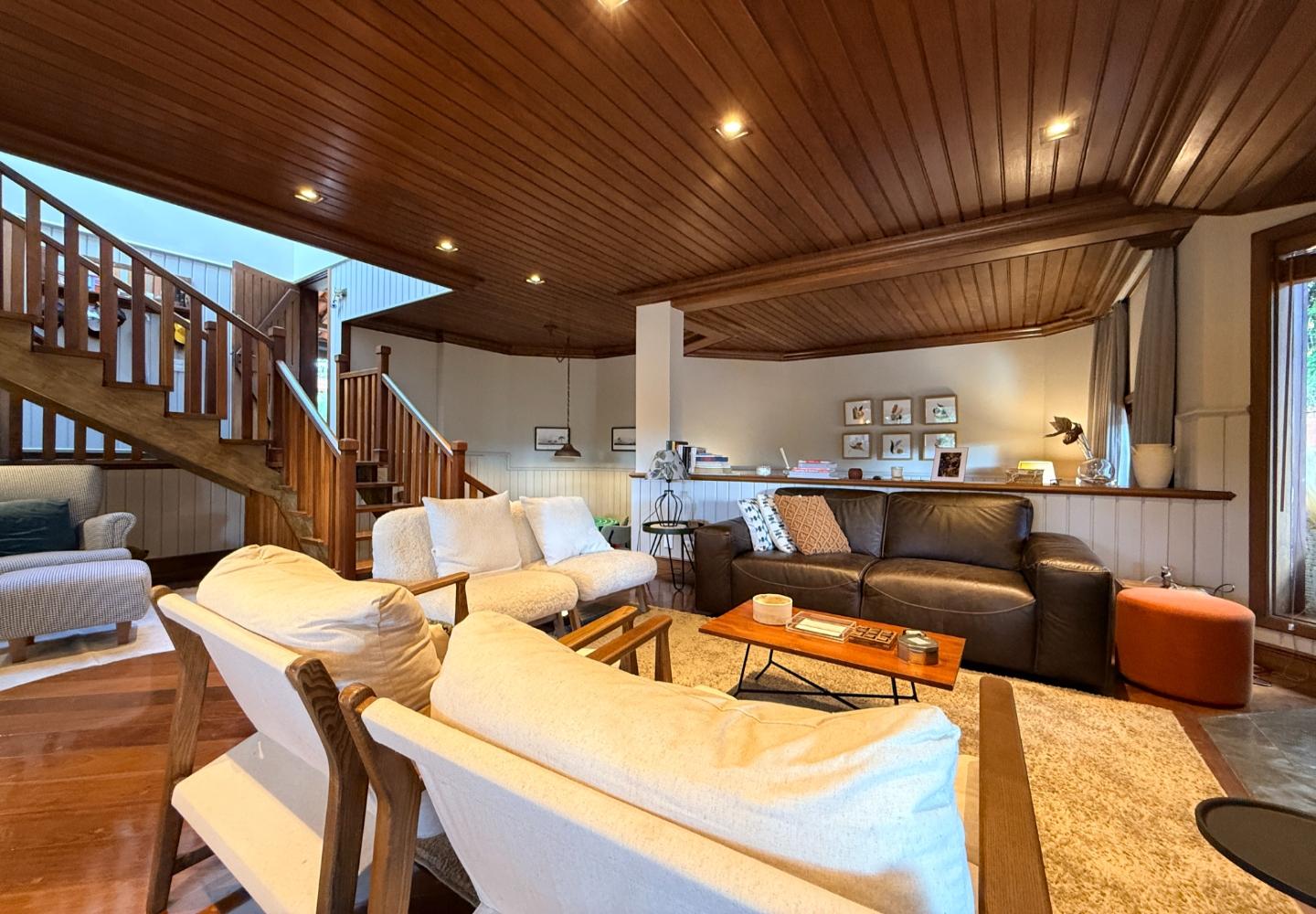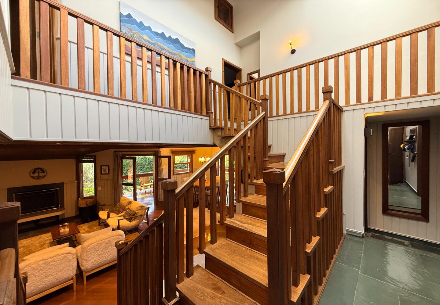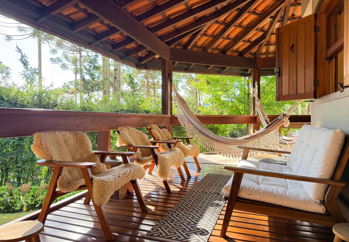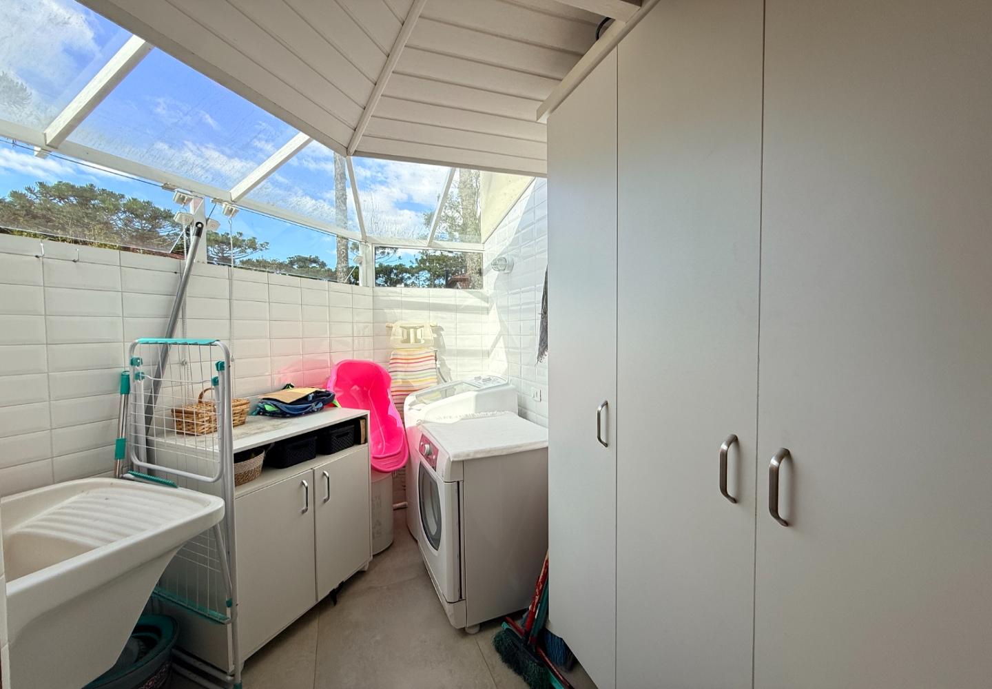 Localizada no condomínio Pinheiros da Lagoinha, com apenas 17 residências em meio a uma área arborizada, a casa oferece privacidade e boa integração com o entorno natural. A área social é ampla, com living para três ambientes, lareira e acesso direto à varanda com churrasqueira, que se conecta ao deck e aos espaços externos.