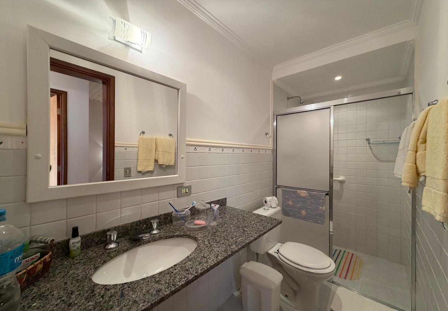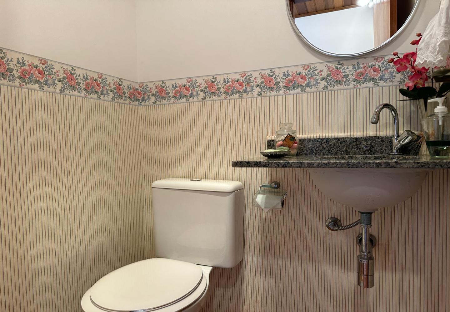 Na área íntima, o apartamento conta com dois dormitórios, sendo uma suíte. O segundo quarto é atendido por um banheiro social completo. No pavimento inferior, há ainda um lavabo que atende a área social.