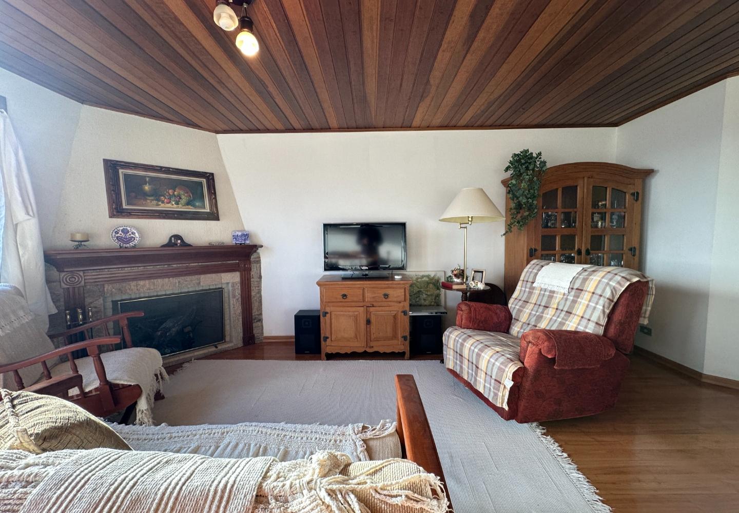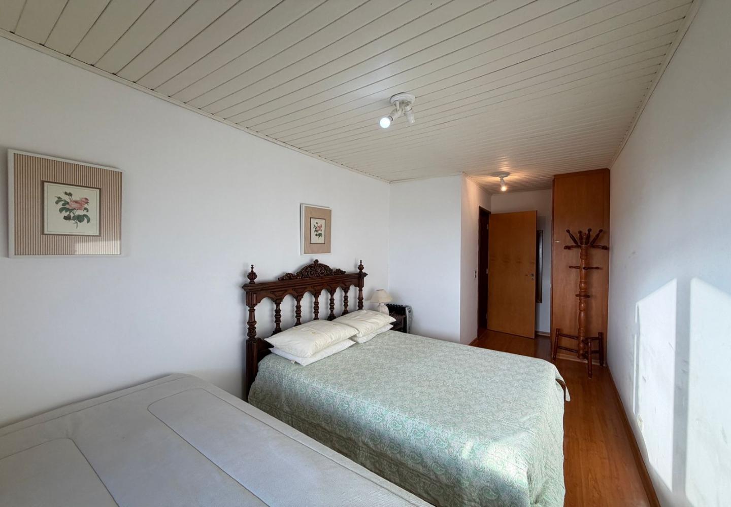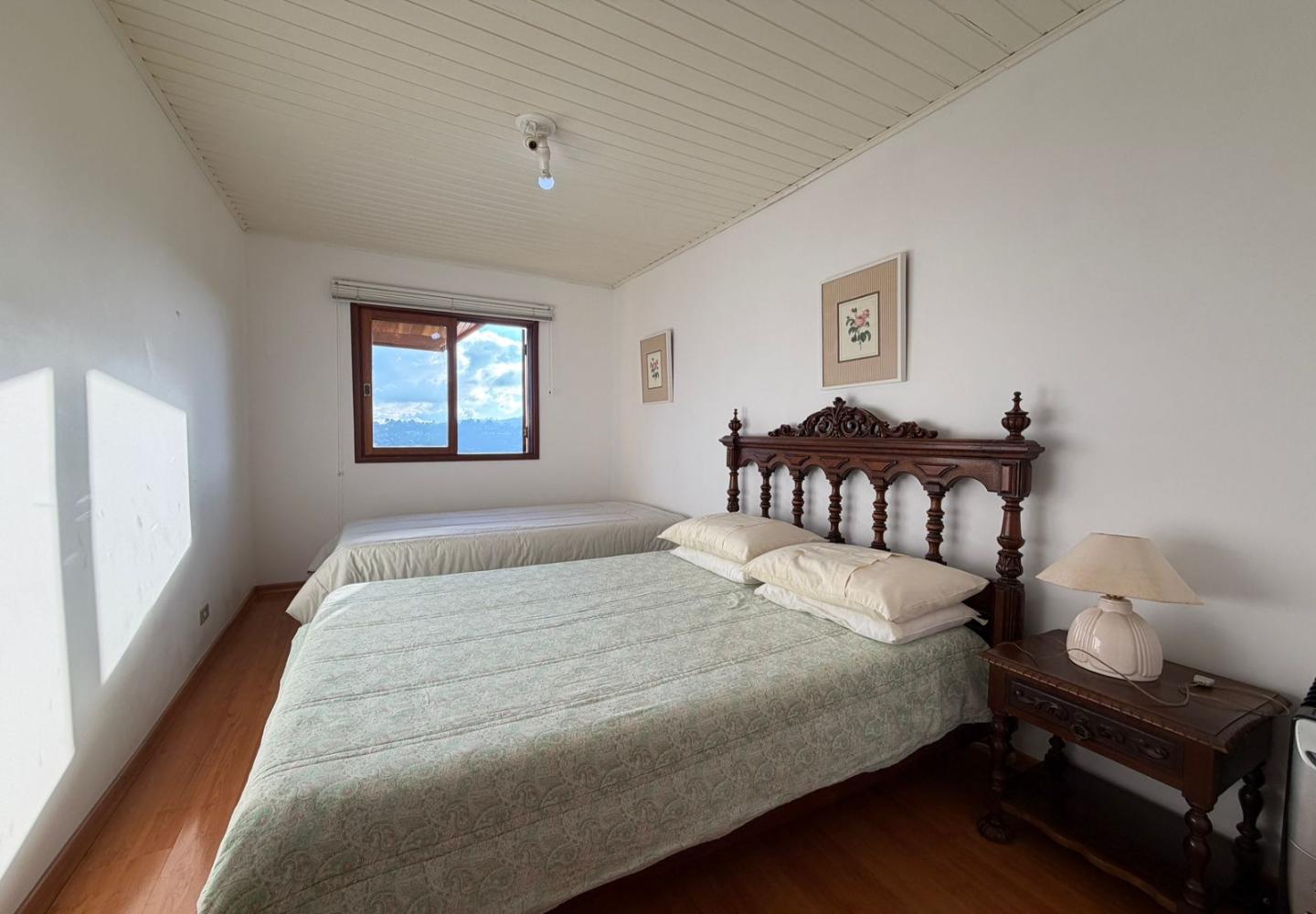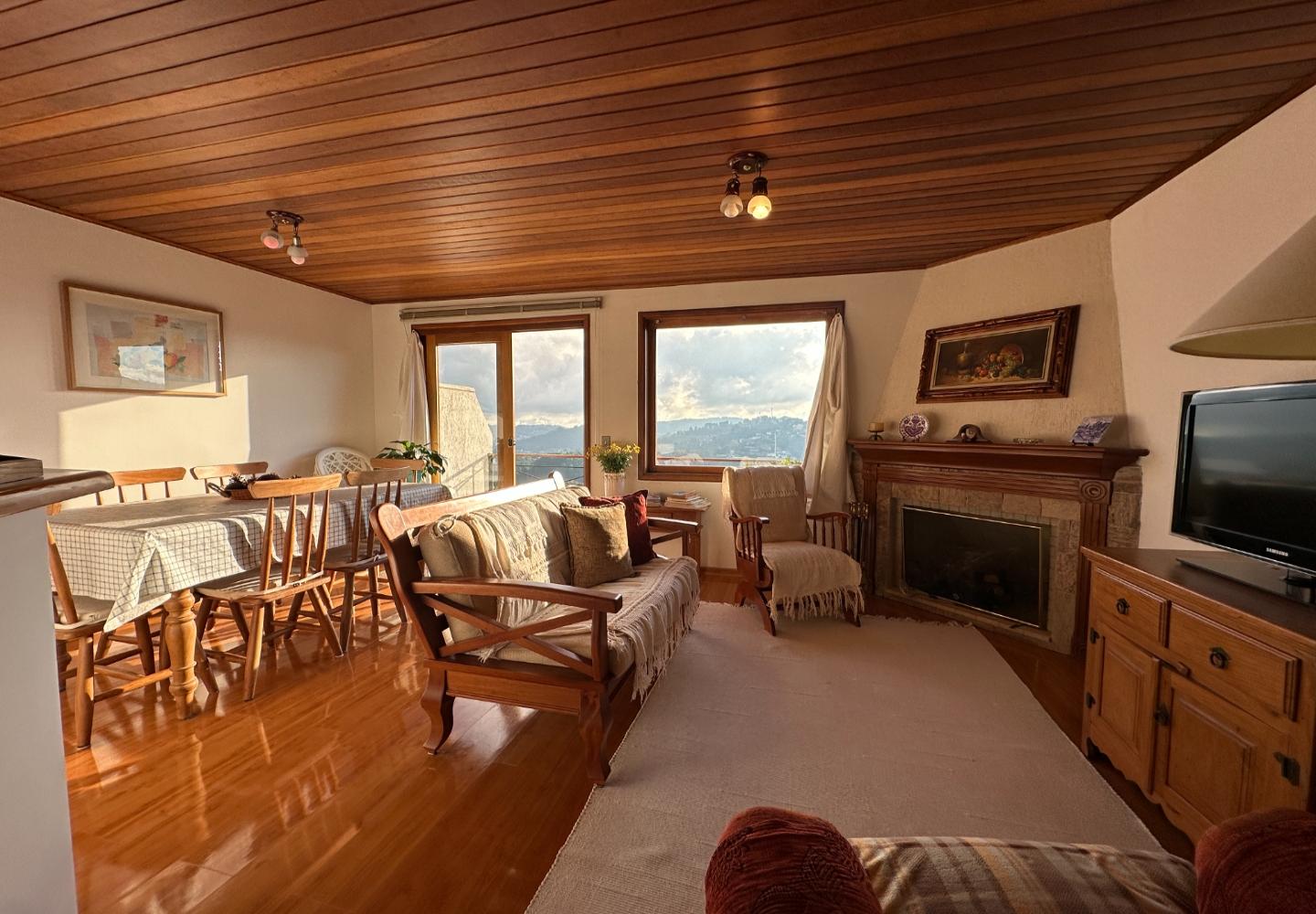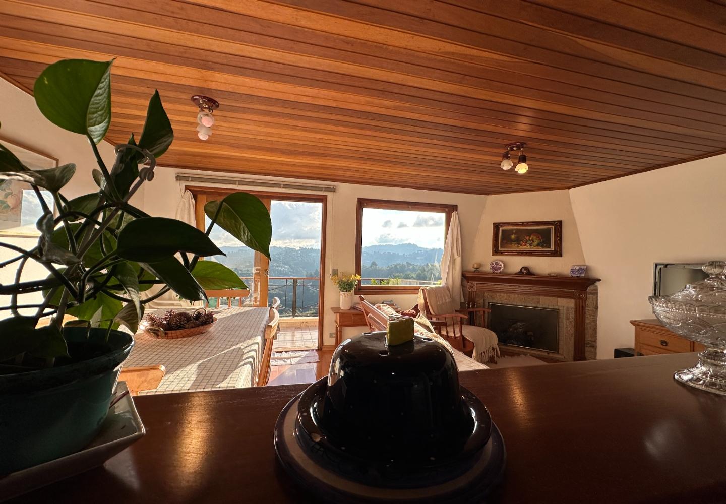 A lareira e o uso de madeira no piso e no forro trazem aquele estilo clássico de Campos do Jordão, bem alinhado com a proposta do imóvel. A cozinha é funcional, com boa área de apoio e ligação prática com o restante do apartamento.