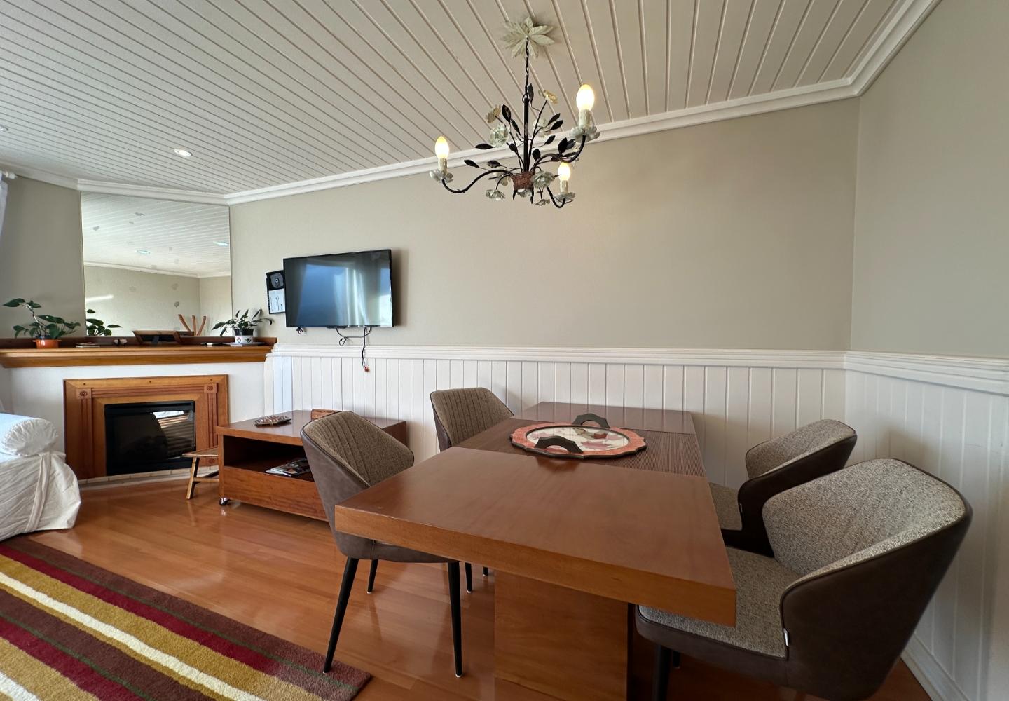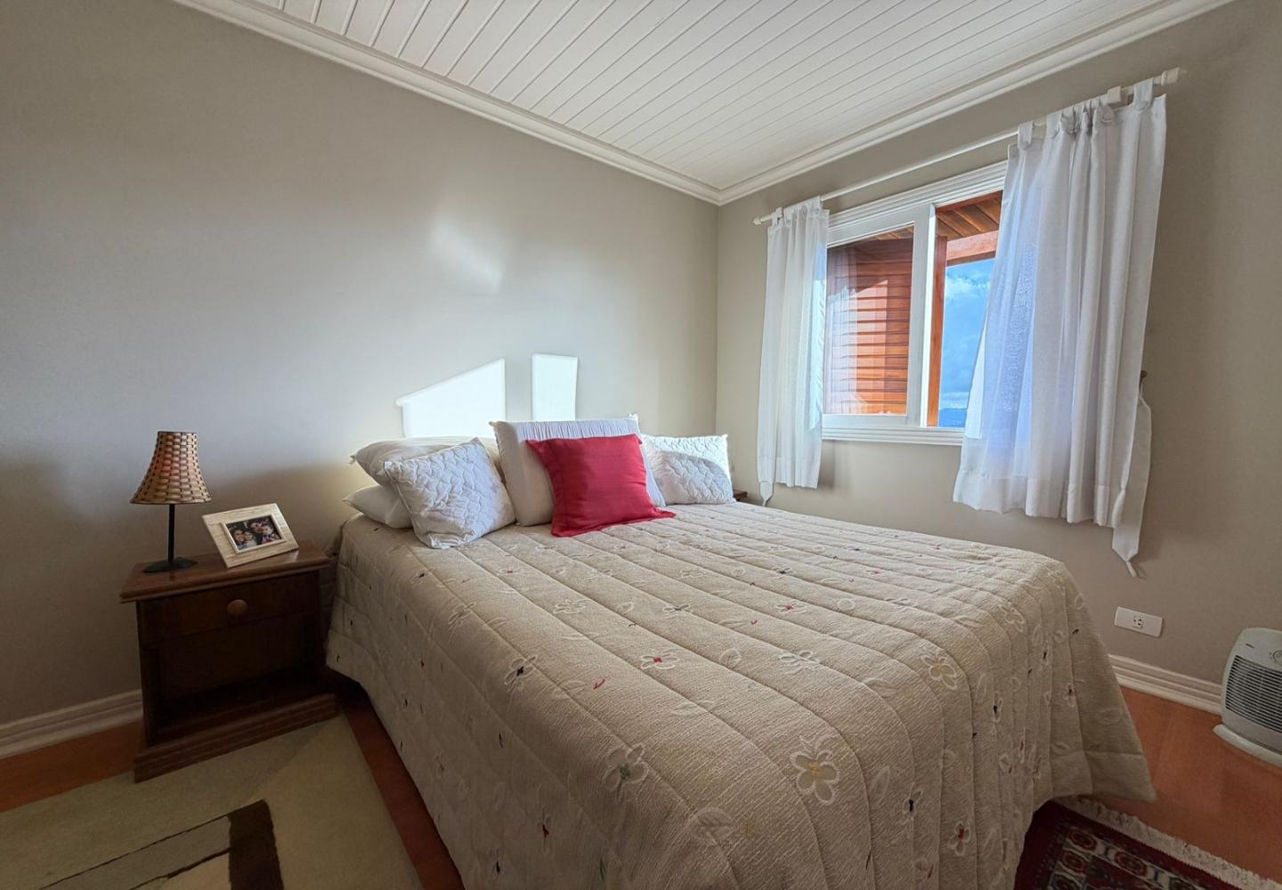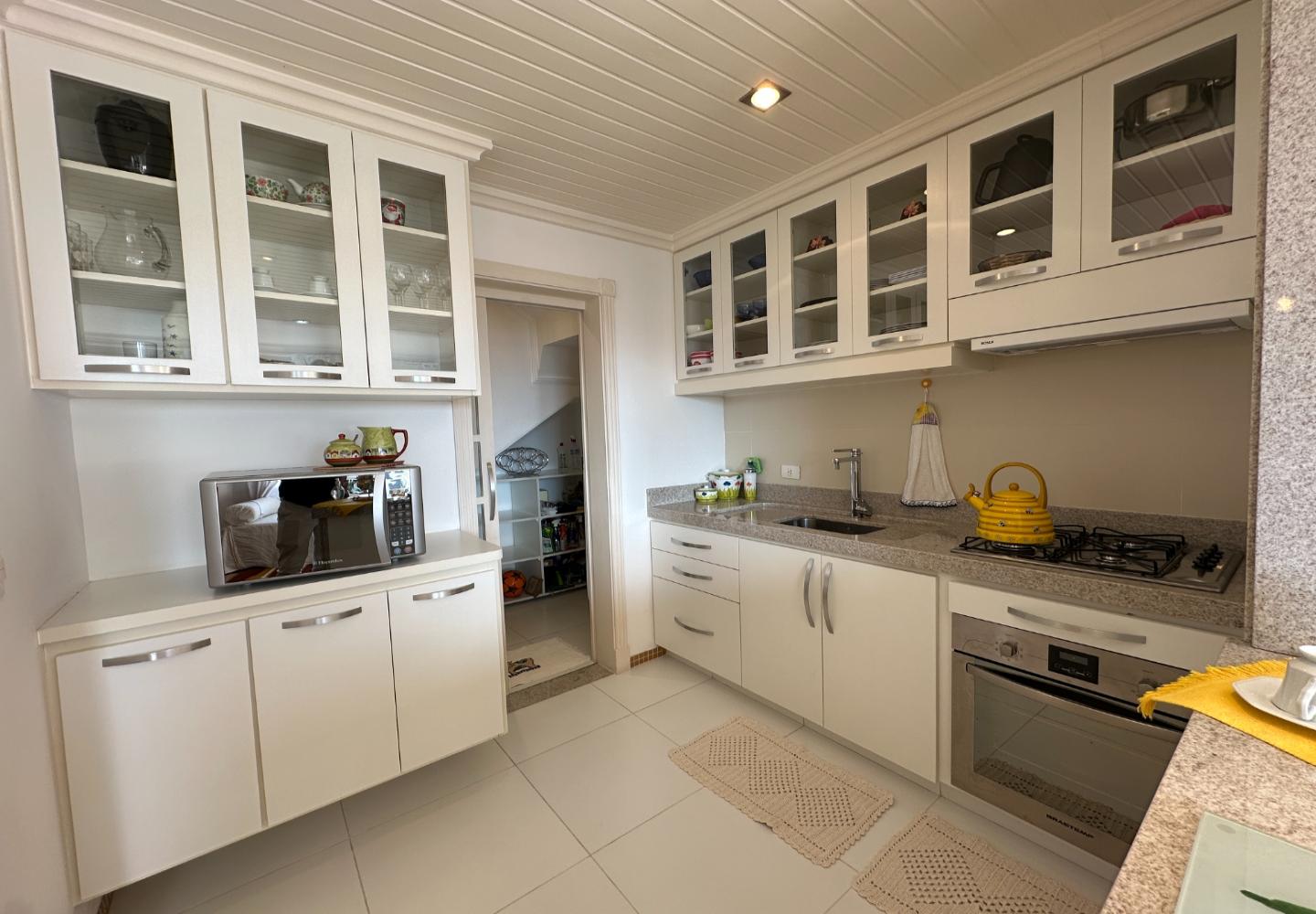 A área social é bem distribuída, com sala integrada à varanda e grandes aberturas que trazem luz natural ao longo do dia. A lareira reforça o clima de serra e cria um ponto central agradável para os momentos mais tranquilos. A cozinha, com móveis planejados, se conecta de forma prática ao ambiente, mantendo funcionalidade no dia a dia.