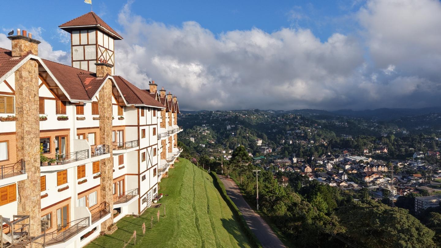 Localizado em uma das regiões mais valorizadas de Campos do Jordão, este apartamento duplex no Saint Etienne chama atenção logo pela vista. A posição elevada no Morro do Elefante entrega um visual amplo da cidade, com muito verde ao redor e uma sensação constante de amplitude.