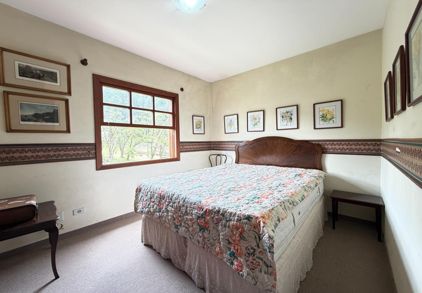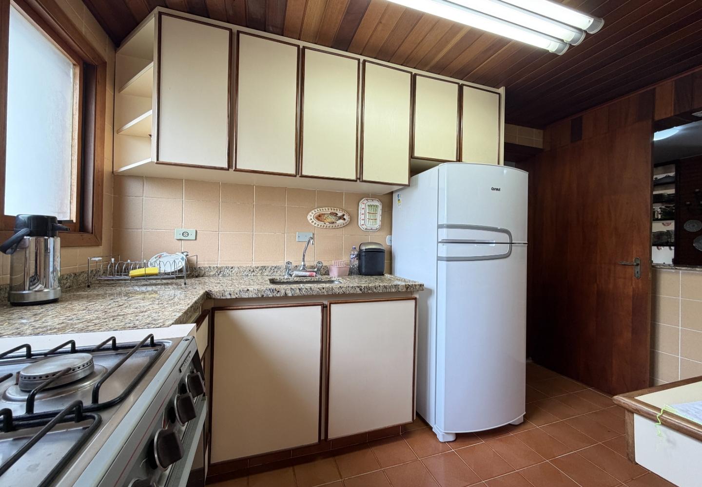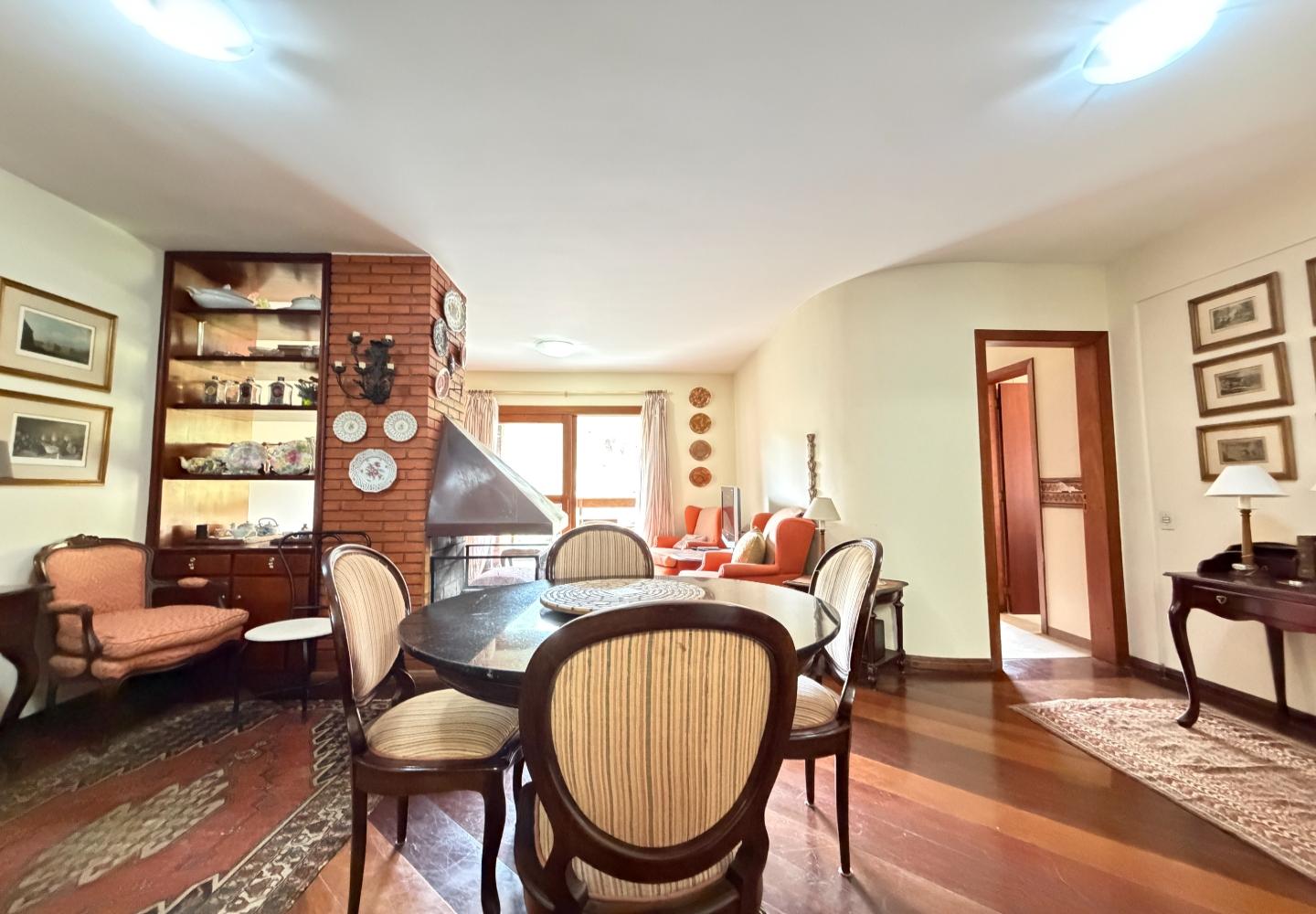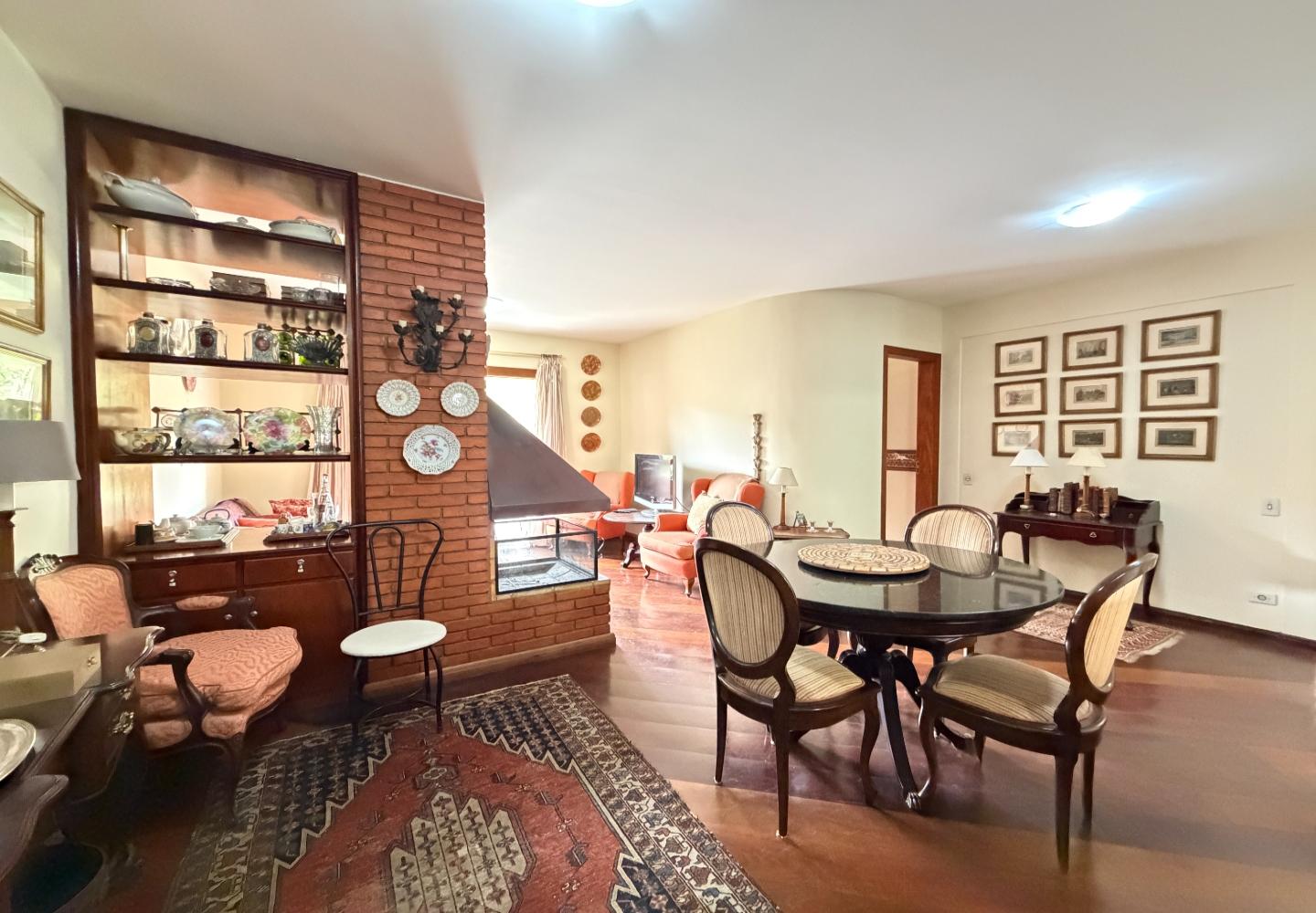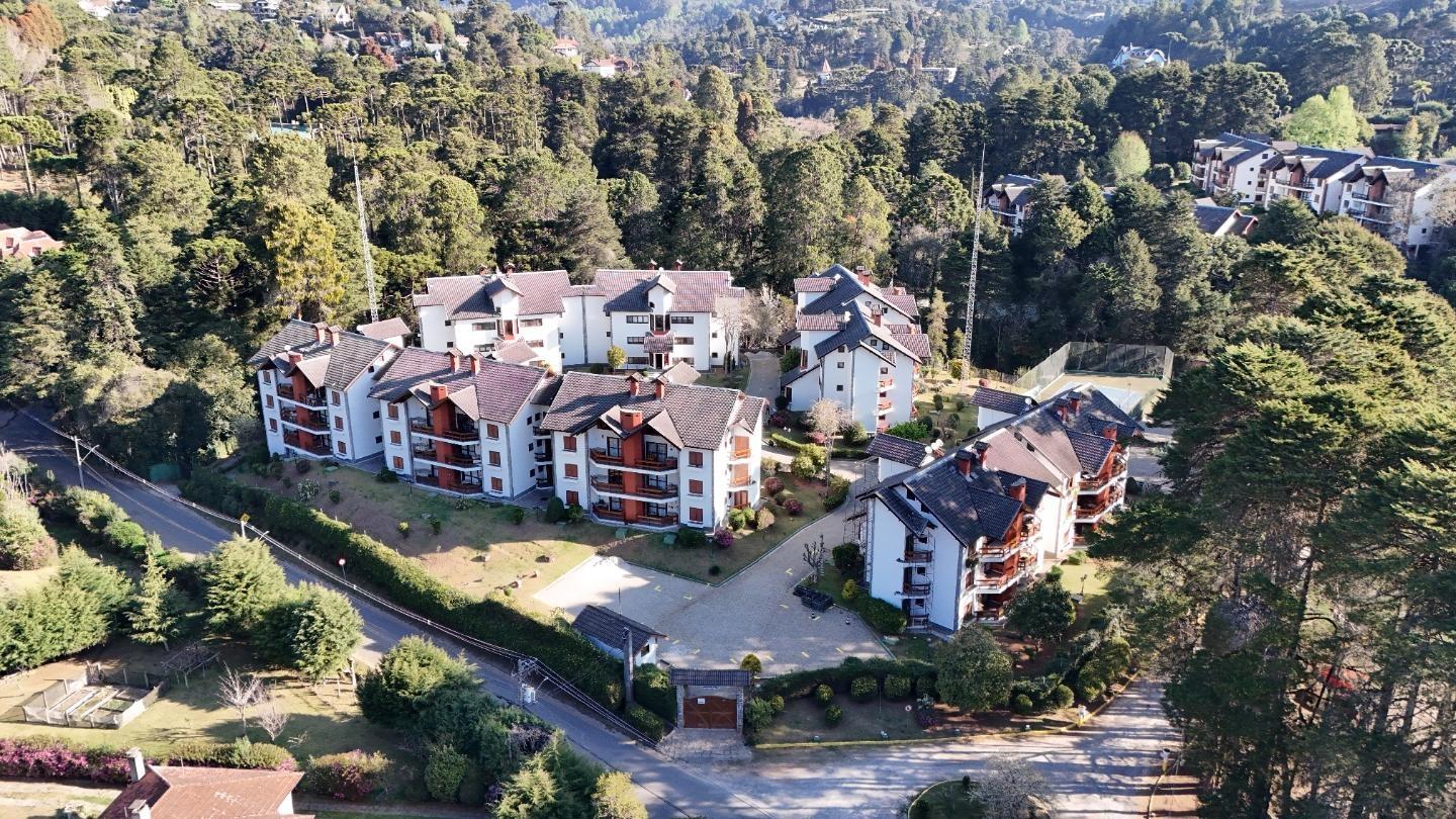 A cozinha tem bancada de apoio voltada para a sala, mantendo a conexão entre os espaços de convivência. Na área íntima, são 3 dormitórios, sendo 1 suíte, todos com marcenaria, proporções confortáveis e um estilo que conversa com a proposta mais clássica do imóvel. Será vendido mobiliado. O condomínio dispõe de portaria 24 horas, estacionamento, jardins cuidados e infraestrutura de lazer com quadra poliesportiva, além de fácil acesso às principais vias da cidade. Trata-se de uma opção completa em um dos endereços mais consolidados de Campos do Jordão, unindo segurança, valorização imobiliária e qualidade de vida em meio à natureza da serra.