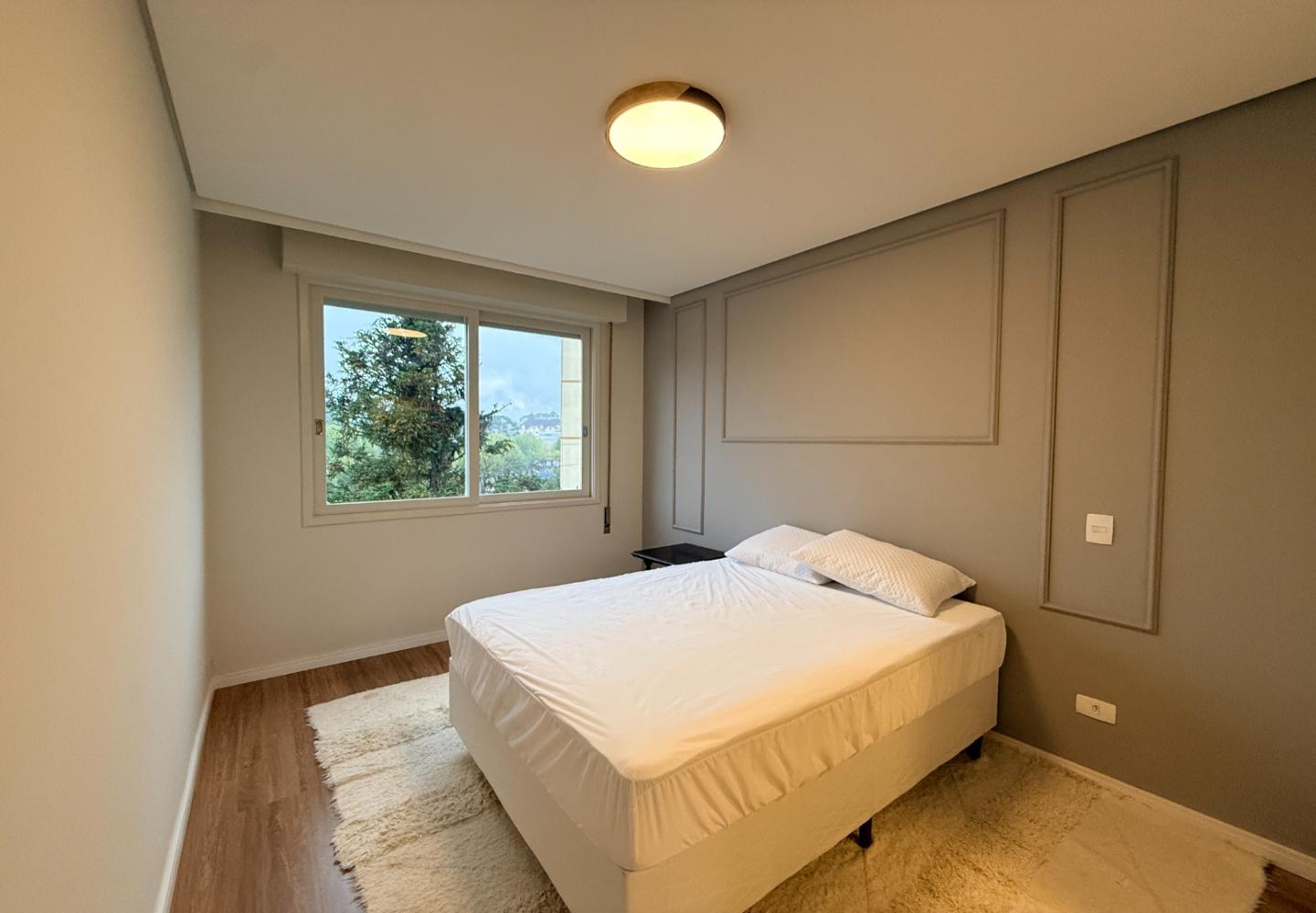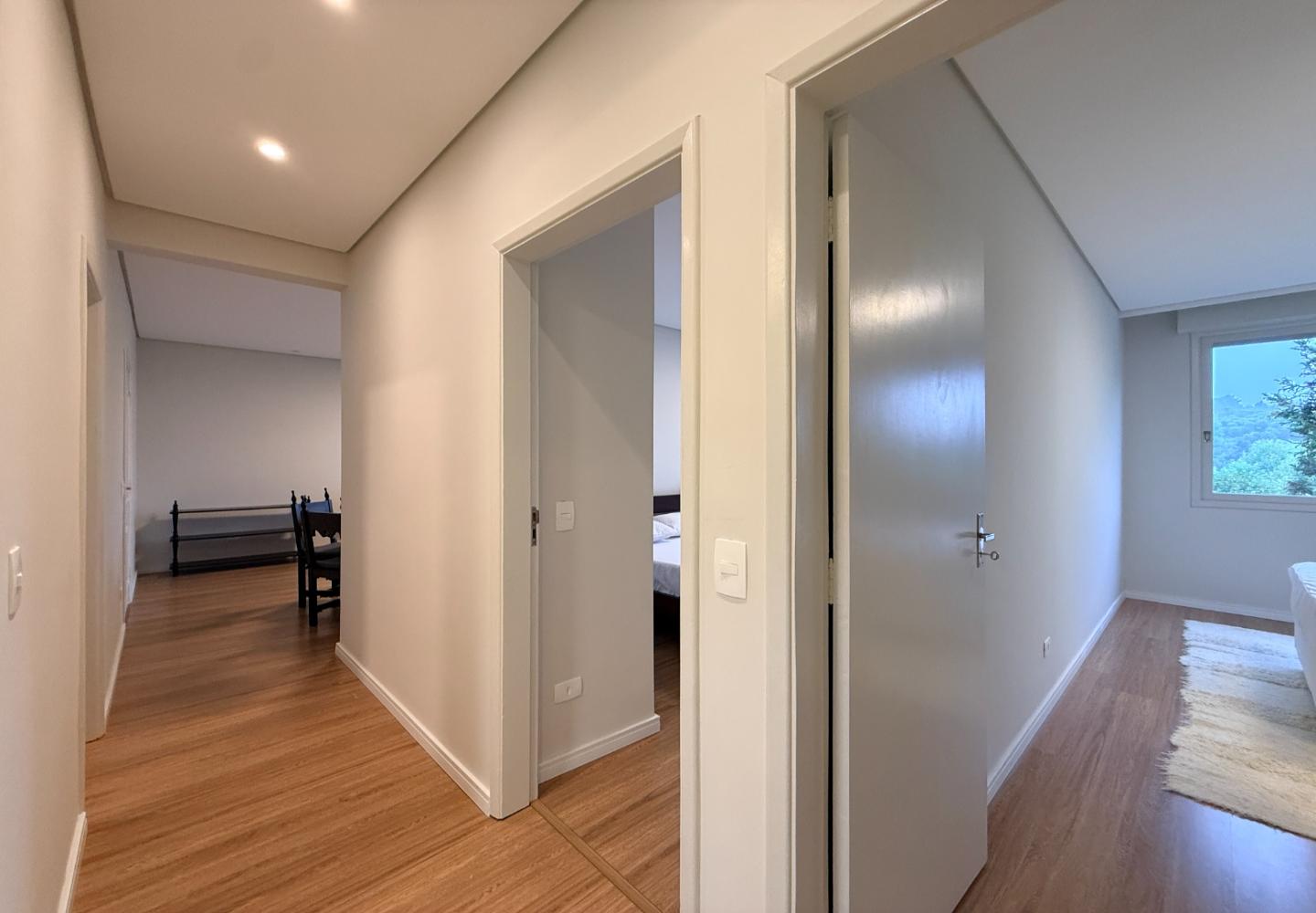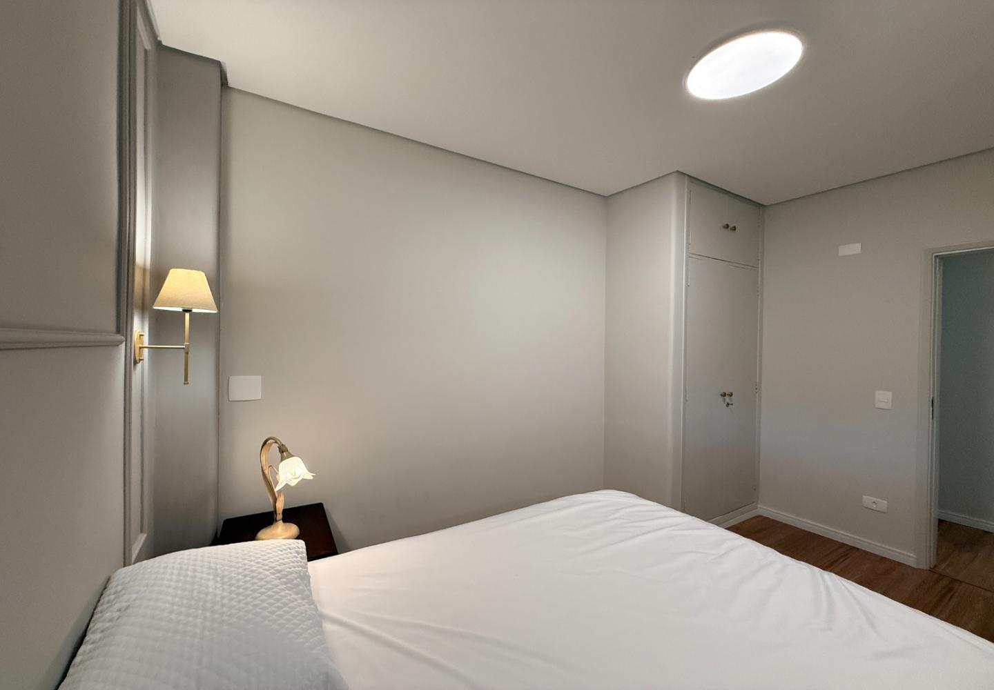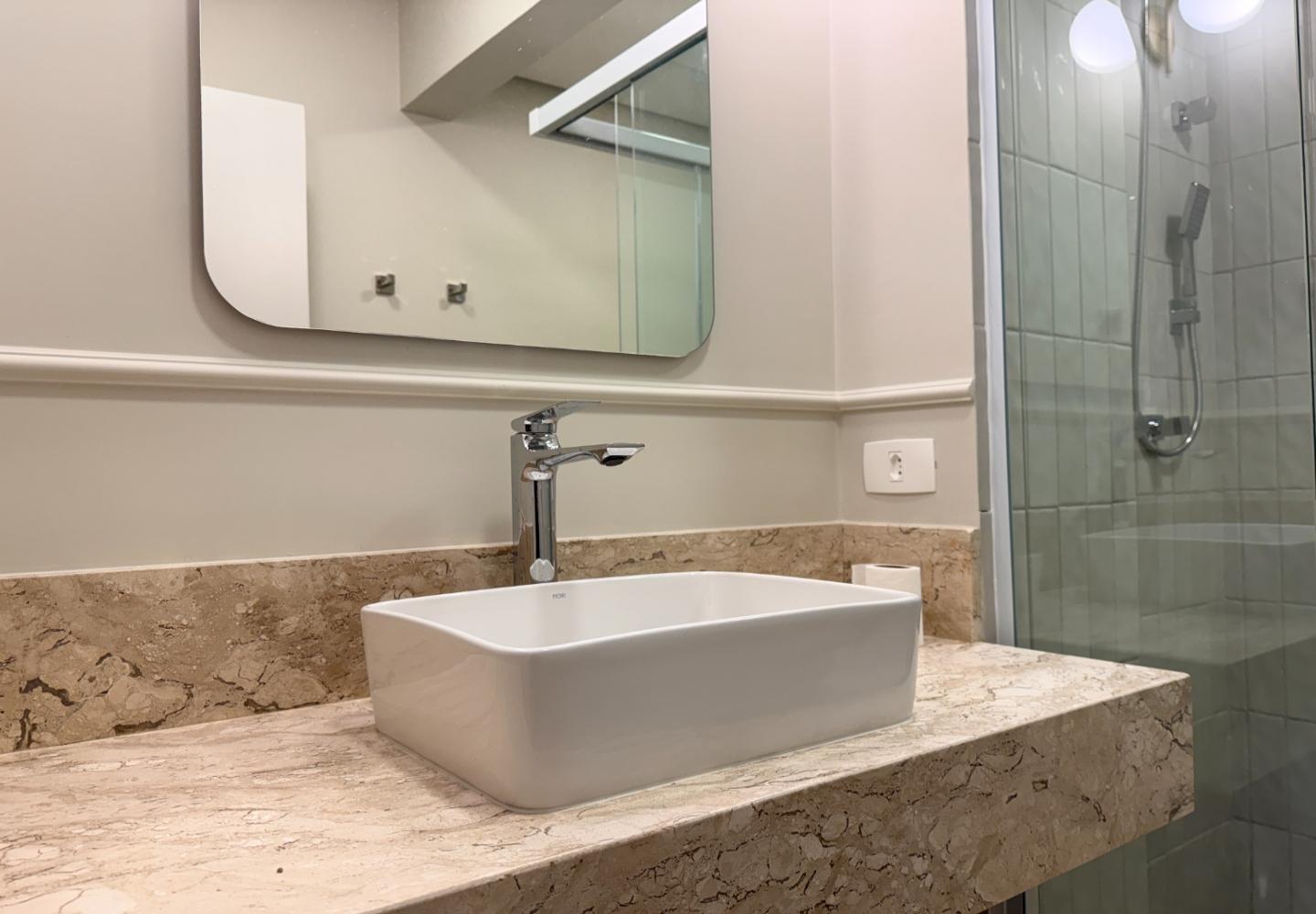 A cozinha foi atualizada, com marcenaria clara, bancada ampla e pontos para lava-louças e lava-roupas, além de área de serviço funcional. Na parte íntima, são três dormitórios, sendo uma suíte, todos com padrão de acabamento alinhado ao restante do imóvel.