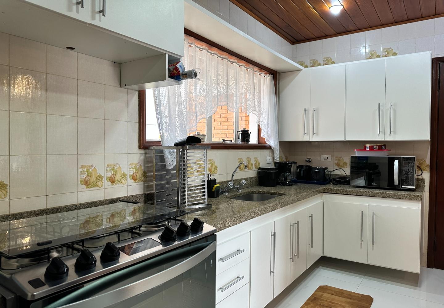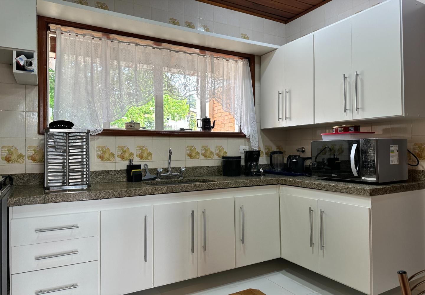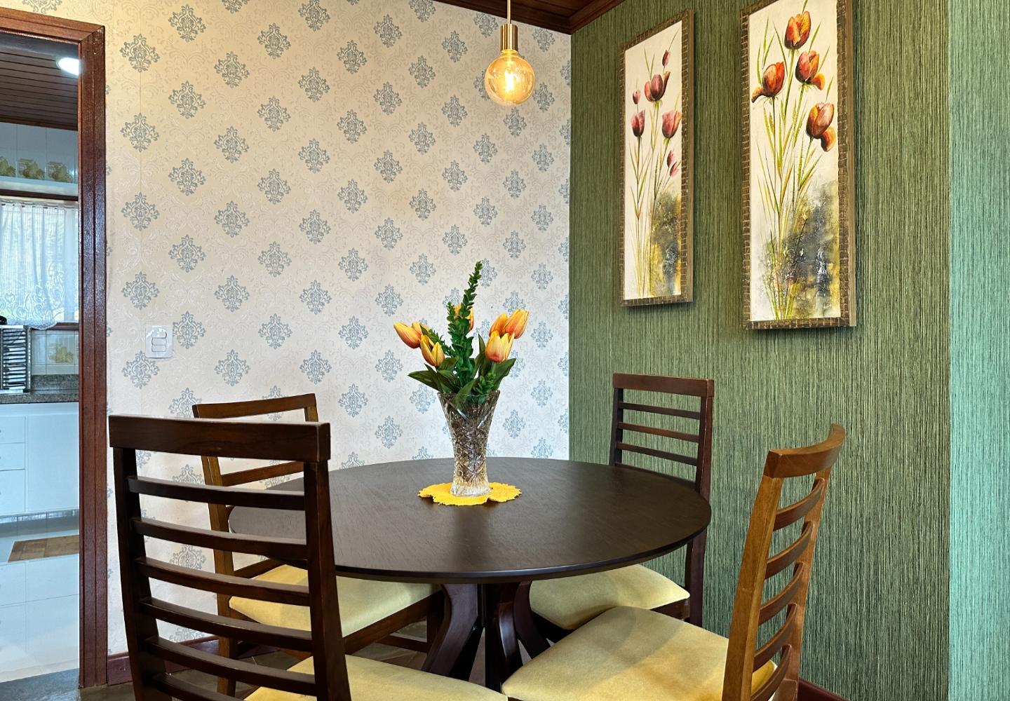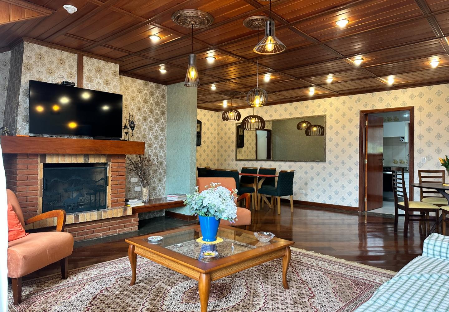 A lareira proporciona um conforto a mais nos dias mais frios, enquanto os quatro dormitórios oferecem espaço suficiente para a família e convidados.