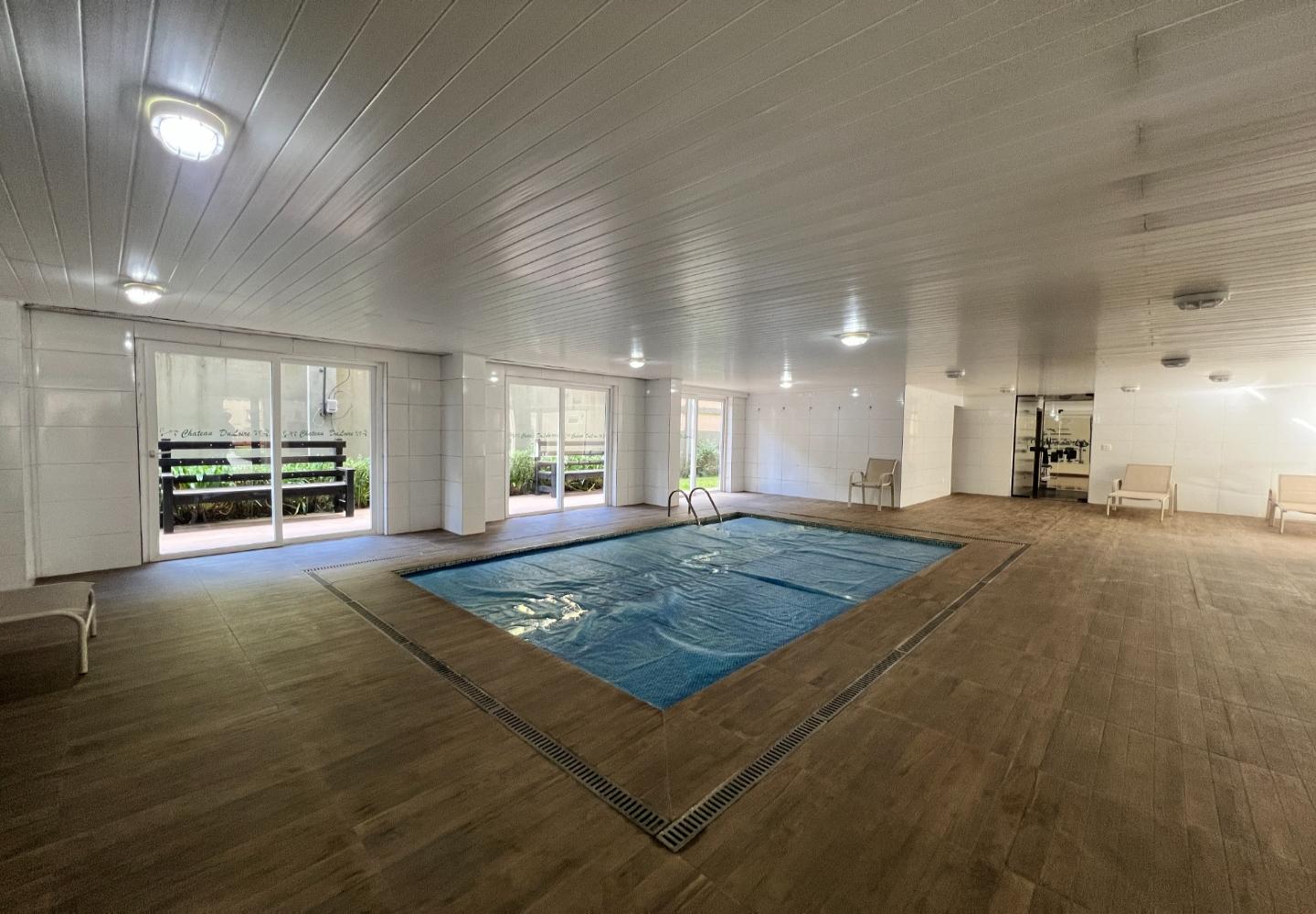 A estrutura de lazer é completa, com piscina coberta e aquecida, sauna úmida, sala fitness e áreas comuns bem cuidadas. O salão de festas segue o estilo do empreendimento, com ambiente amplo, bar e cozinha de apoio.