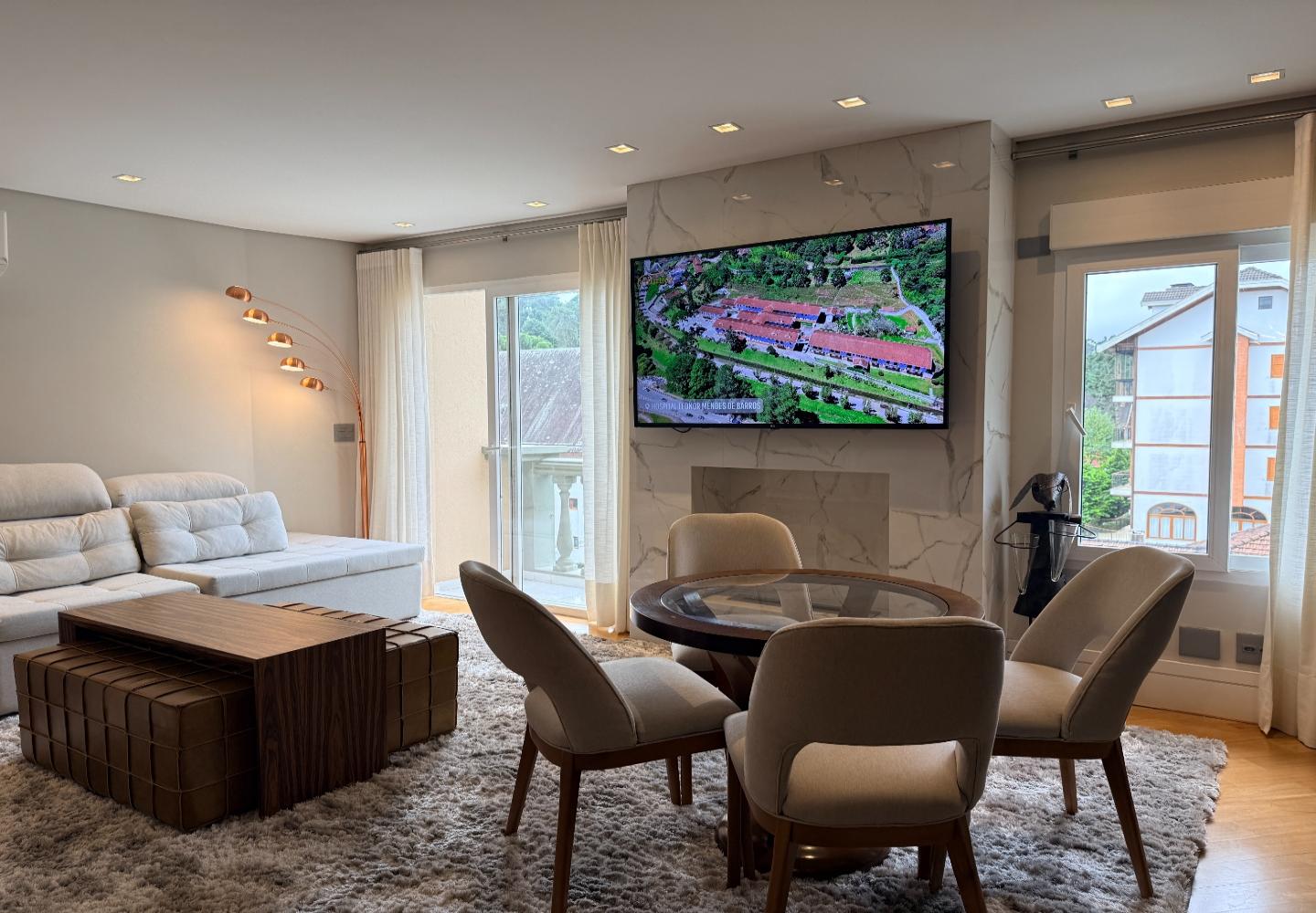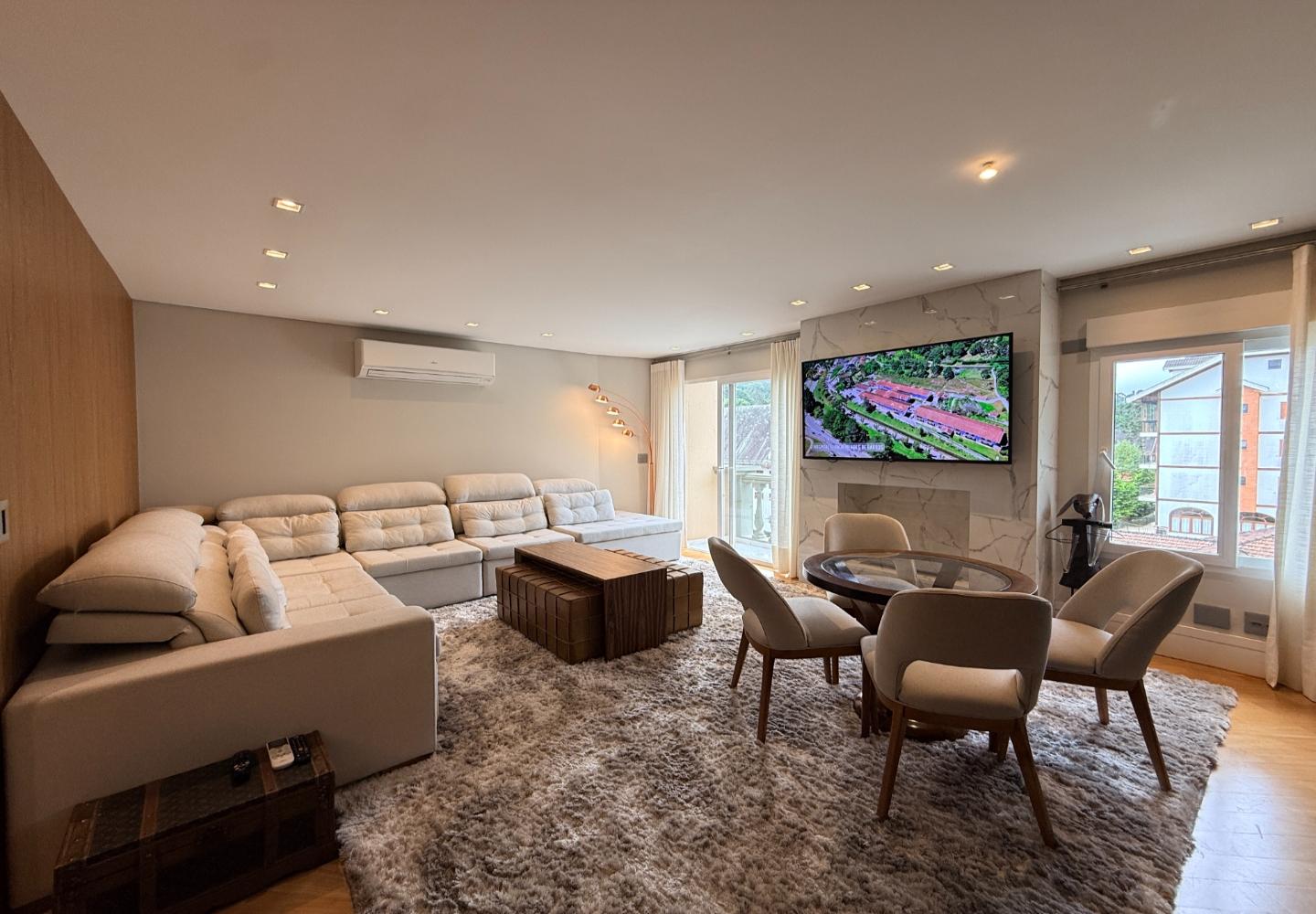 Cobertura duplex localizada no Capivari, em condomínio tradicional e com fácil acesso ao centro. O imóvel apresenta ambientes amplos, bem distribuídos e com integração clara entre as áreas sociais.