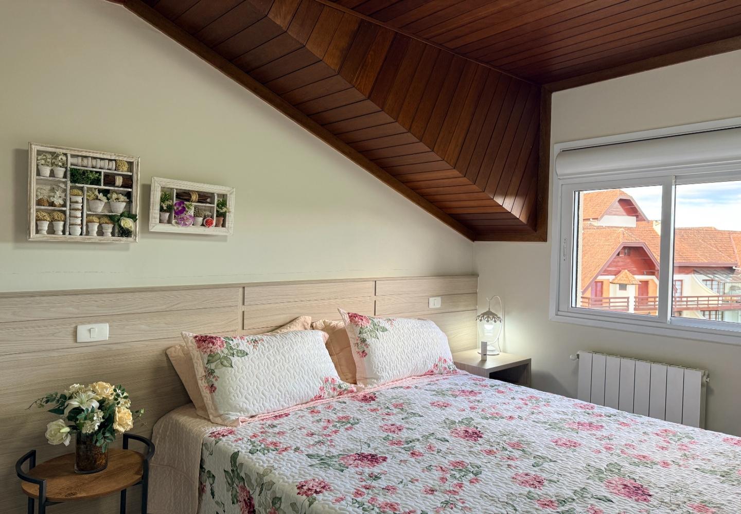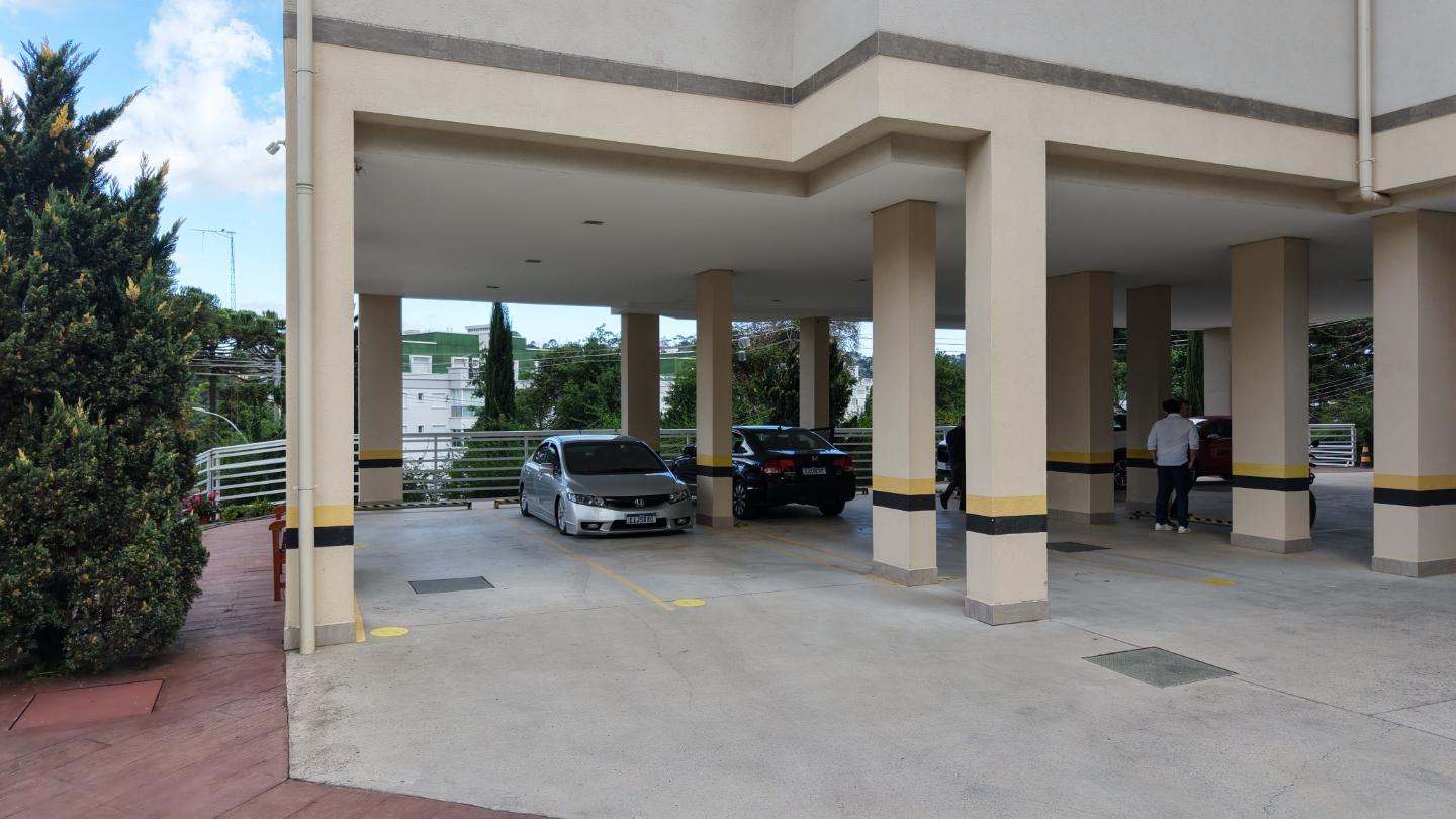 Possui 2 vagas de garagem e está inserido em um contexto tranquilo, com presença de vegetação ao redor, mantendo a proposta de viver em Campos do Jordão com conforto e funcionalidade.