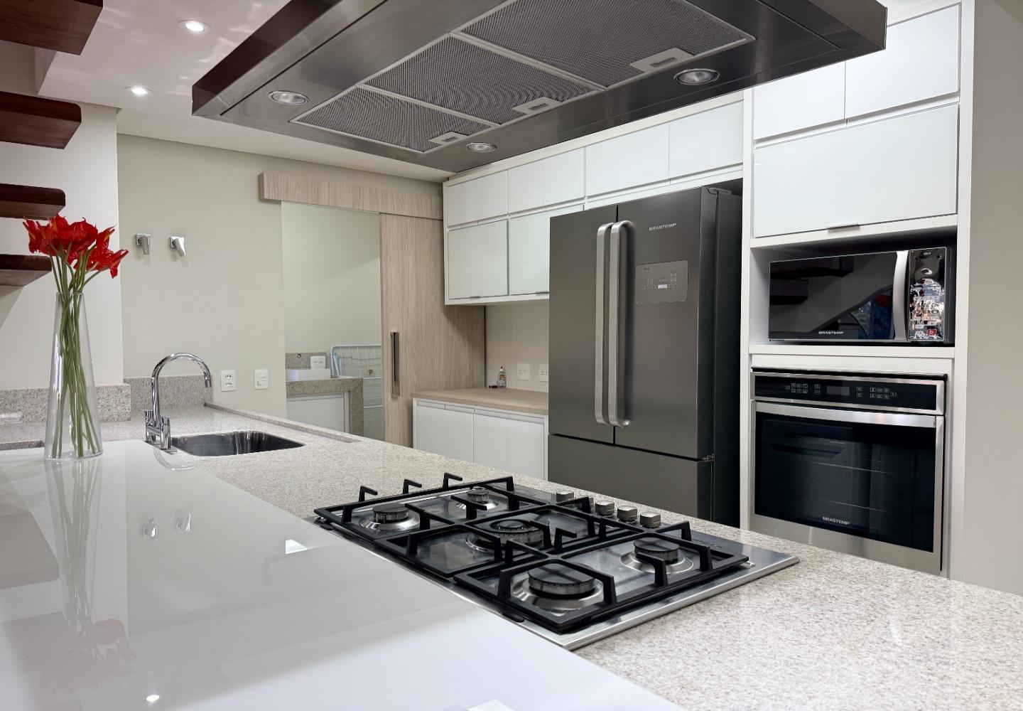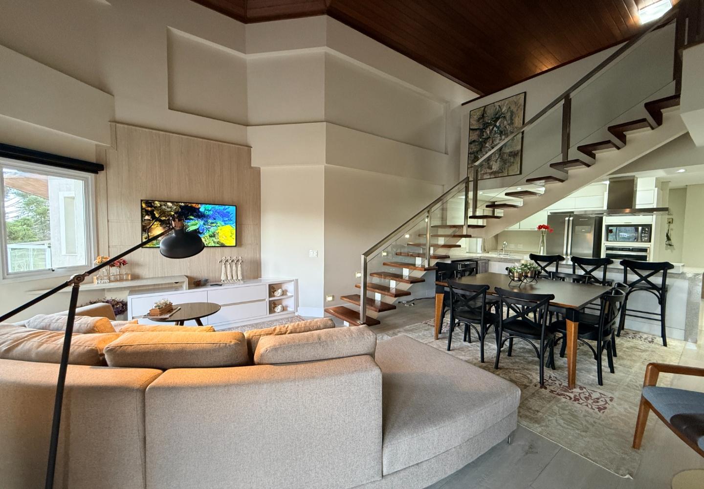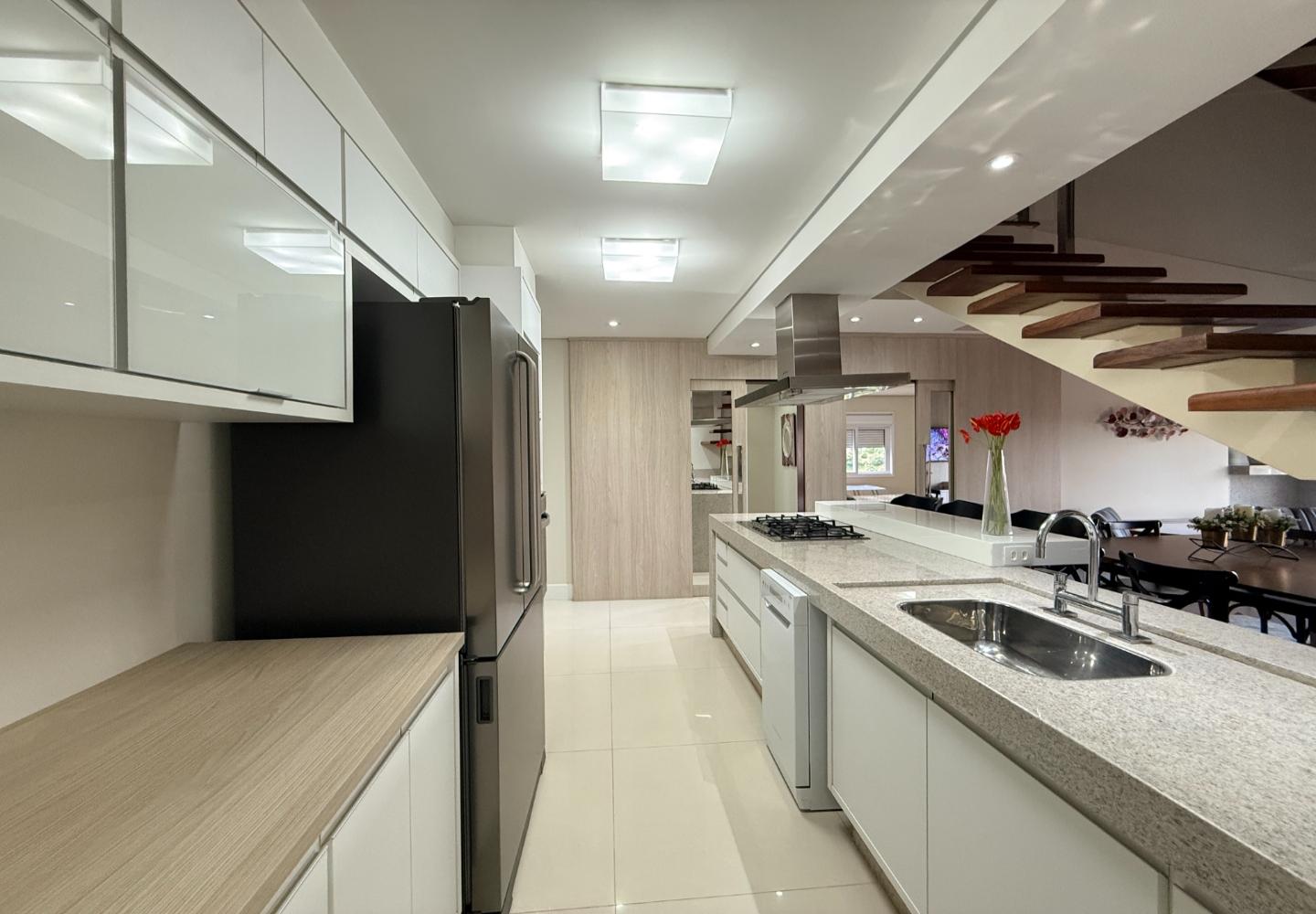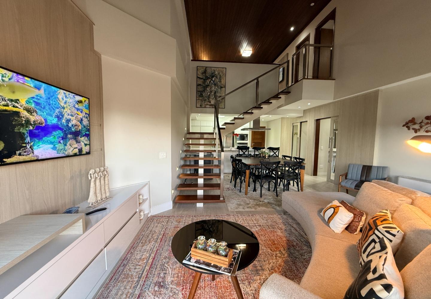 O imóvel conta com quatro dormitórios, sendo três suítes, além de lavabo e lavanderia. Será vendido mobiliado, com acabamentos que combinam madeira, iluminação bem posicionada e elementos que valorizam o estilo da região.