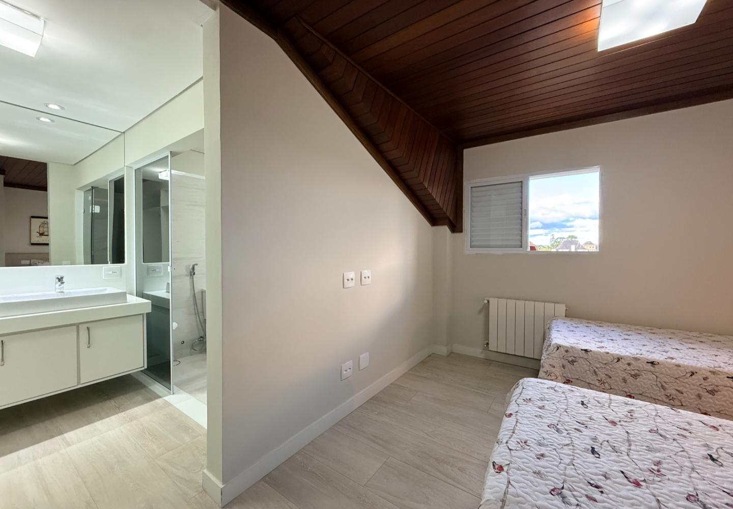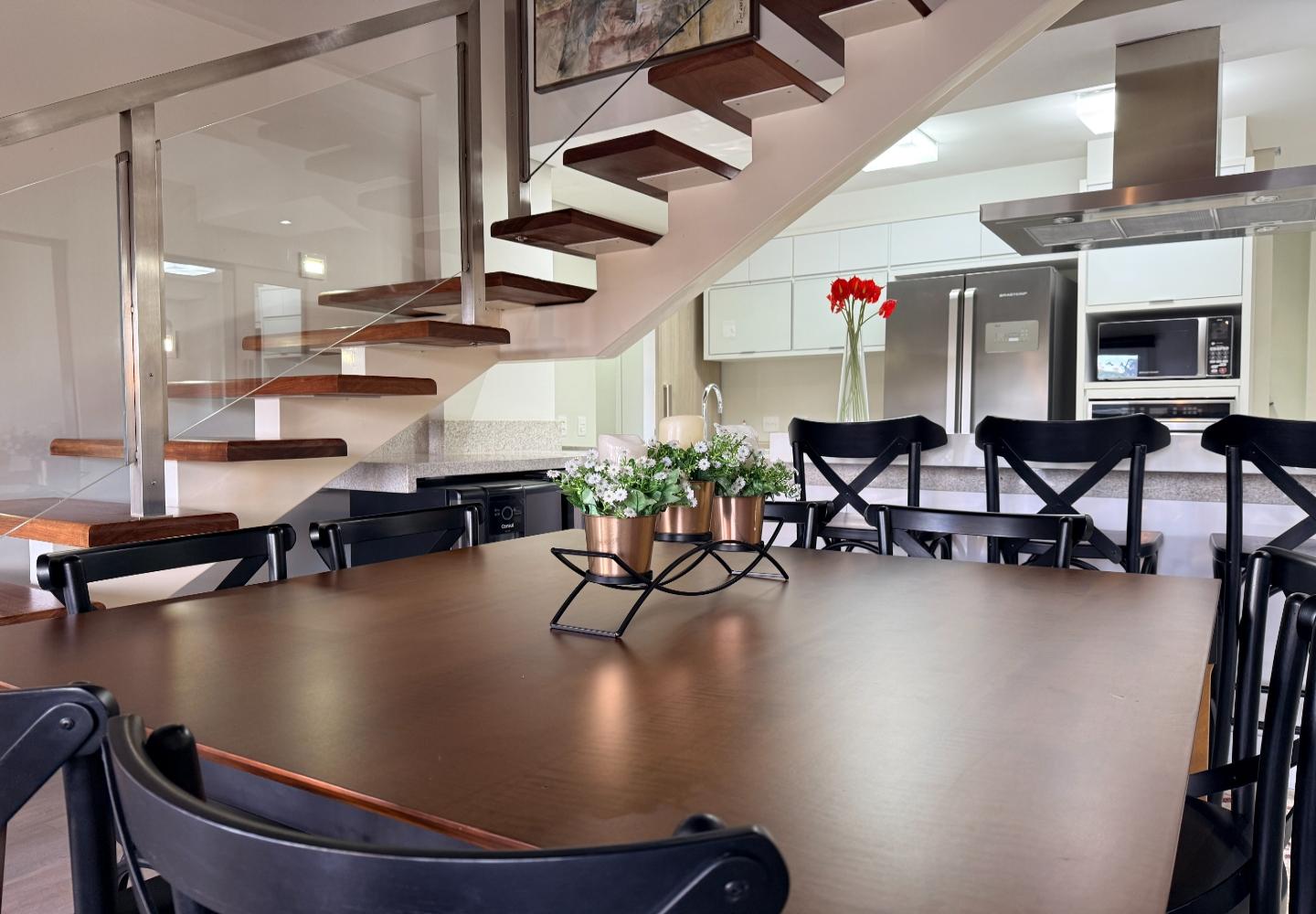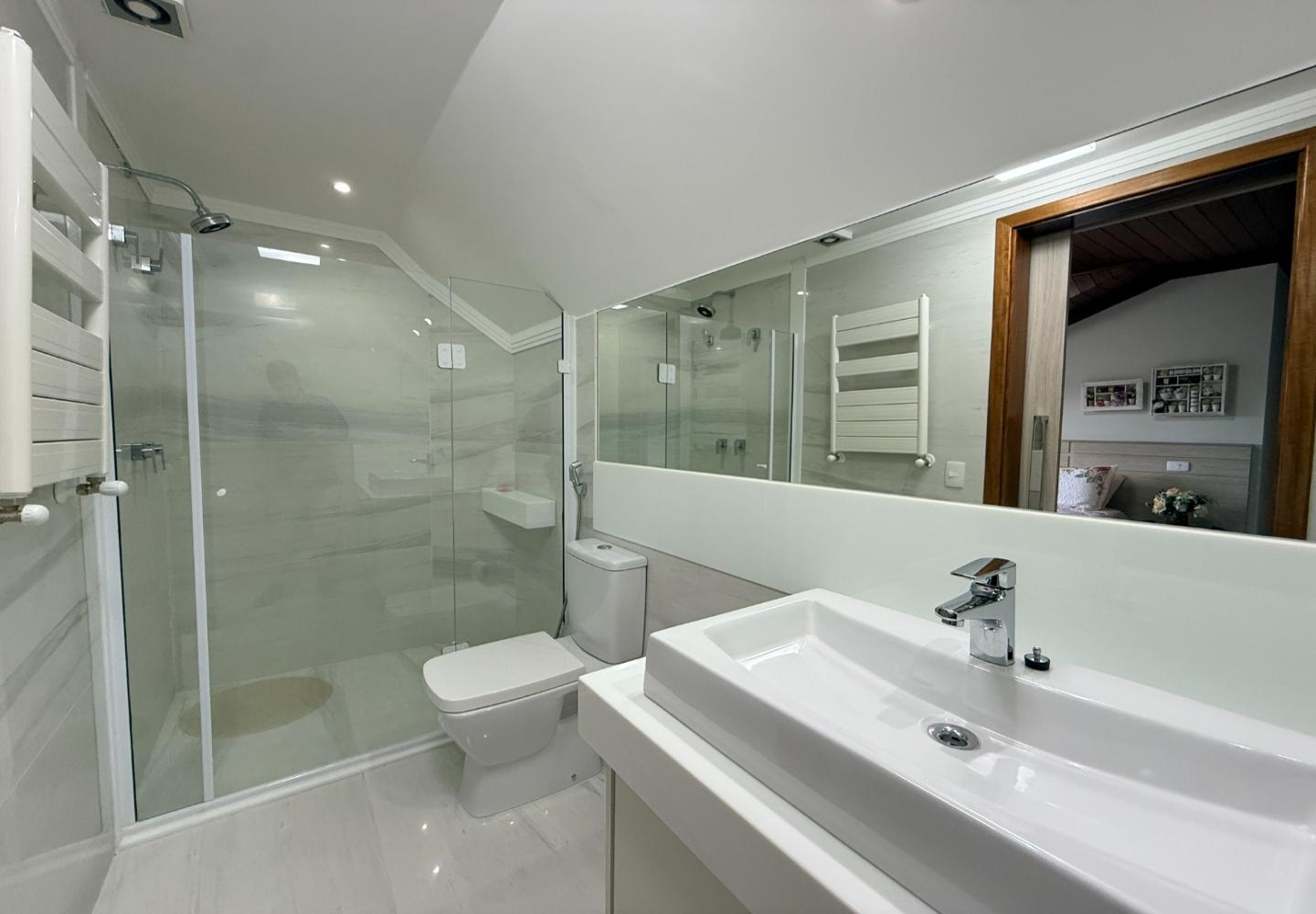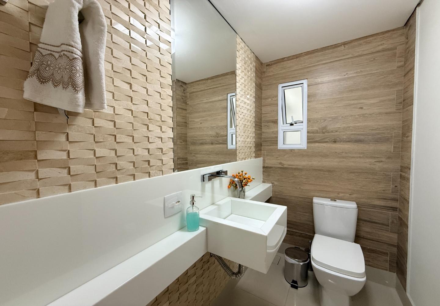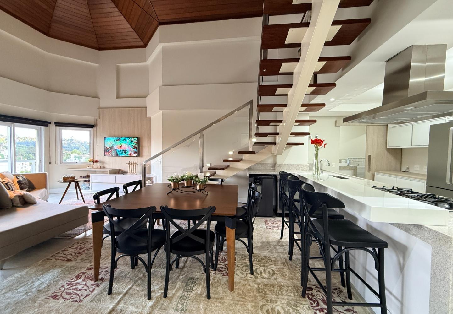 O imóvel conta com quatro dormitórios, sendo três suítes, além de lavabo e lavanderia. Será vendido mobiliado, com acabamentos que combinam madeira, iluminação bem posicionada e elementos que valorizam o estilo da região.