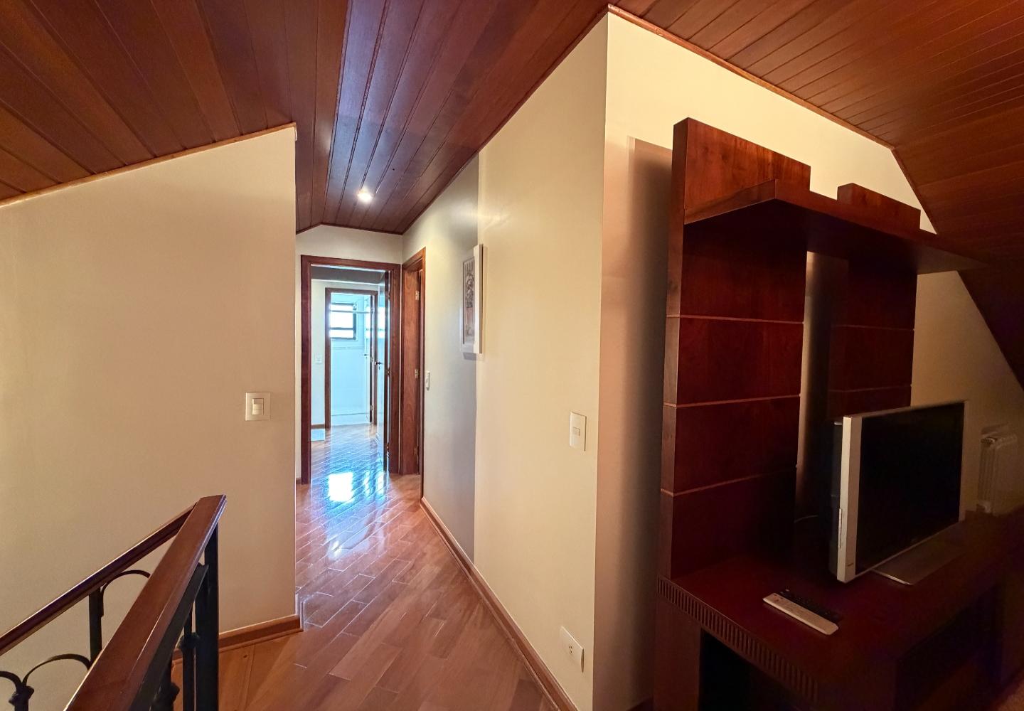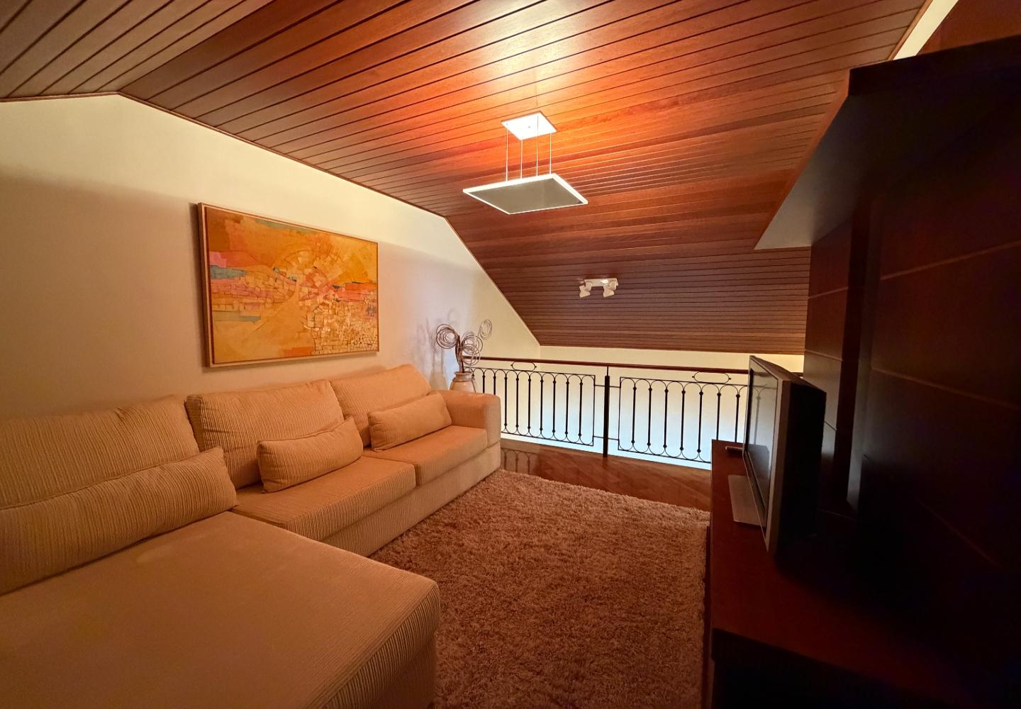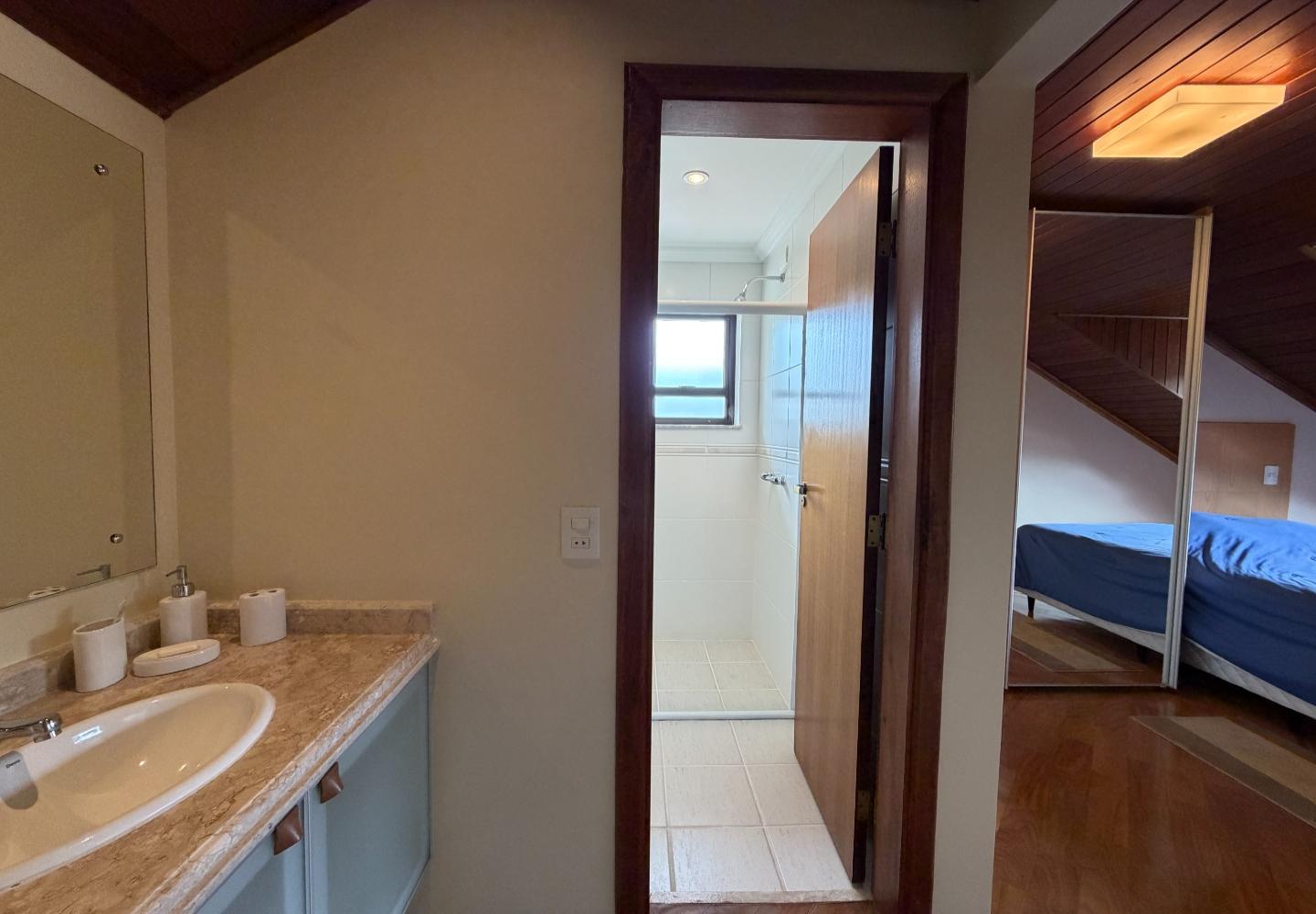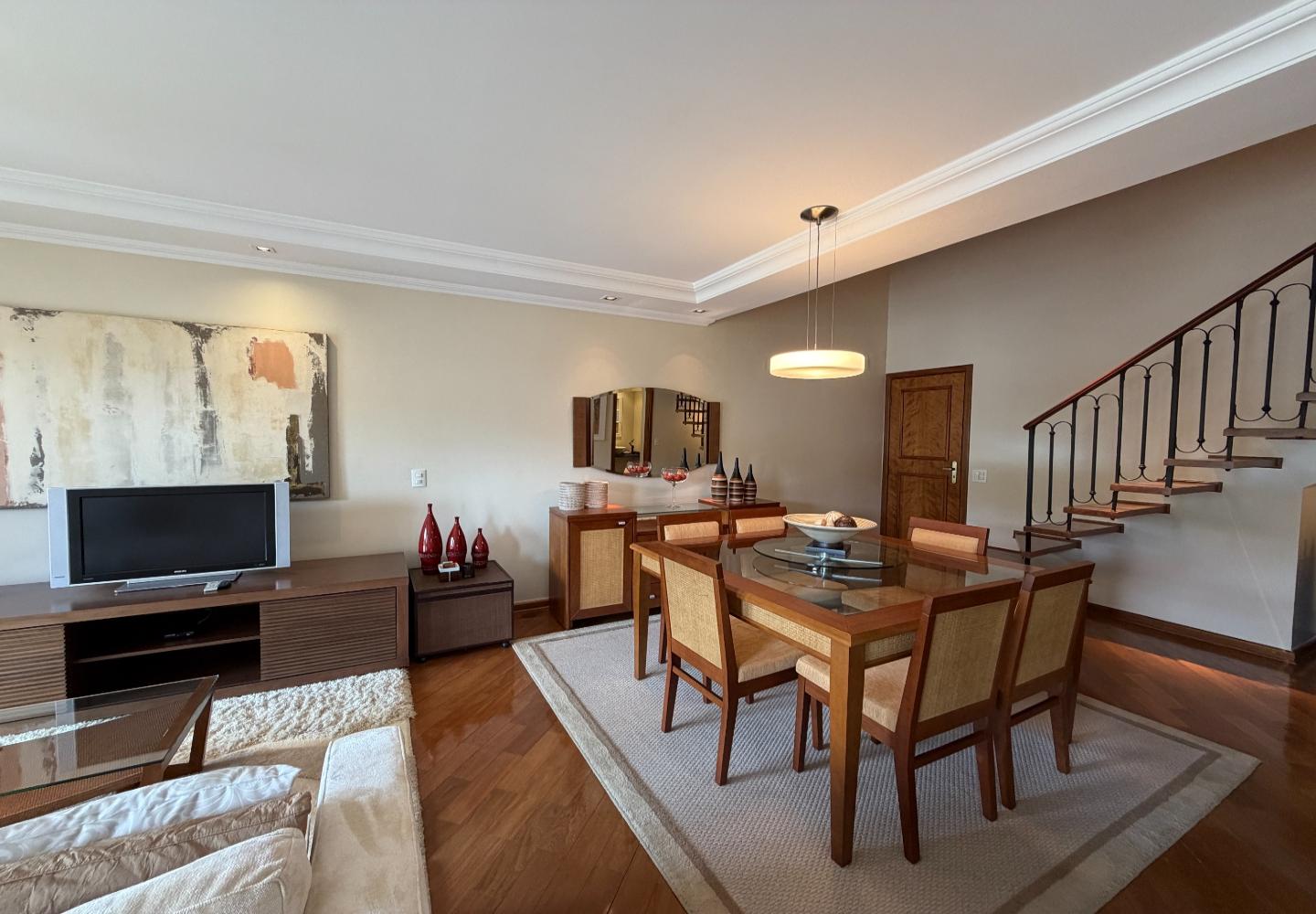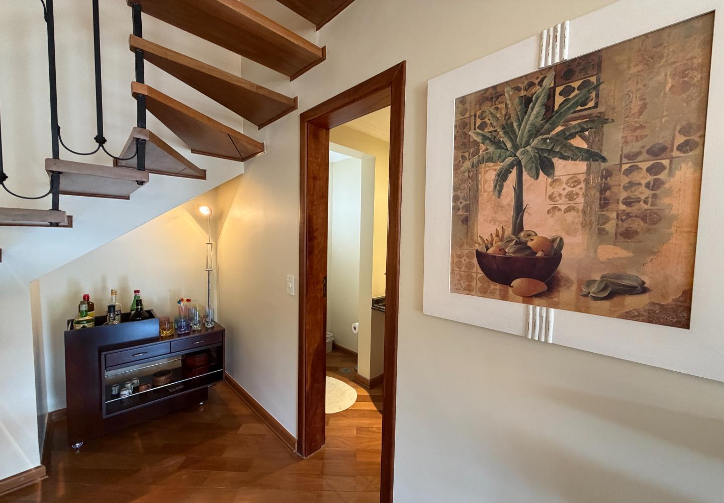 No centro de Capivari, esta cobertura no condomínio Pousada do Barão entrega uma planta rara e muito bem resolvida: são 4 suítes, com 2 no piso principal e 2 no pavimento superior, garantindo privacidade e boa separação de usos no dia a dia.