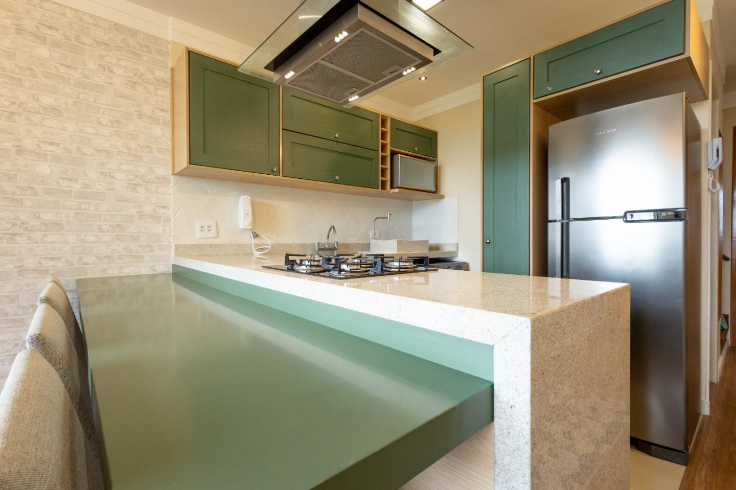 Apartamento duplex localizado no Résidentiel YY Eté Et Hiver, com planta funcional e ambientes bem integrados. O pavimento principal reúne sala de estar e cozinha em conceito aberto, com marcenaria planejada, bancada ampla e iluminação bem distribuída.