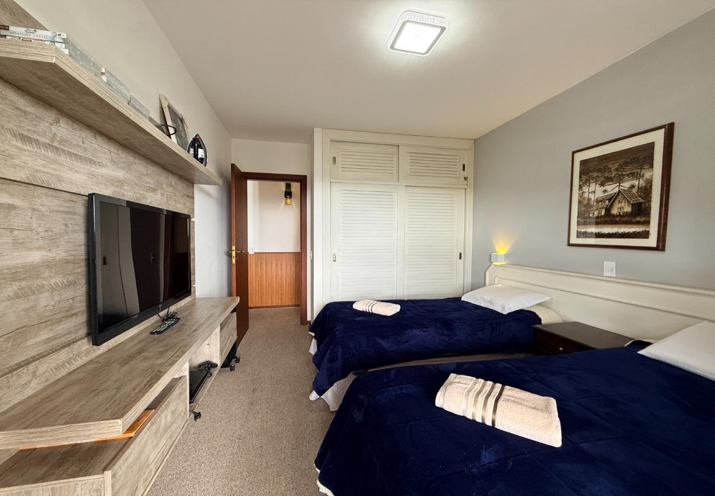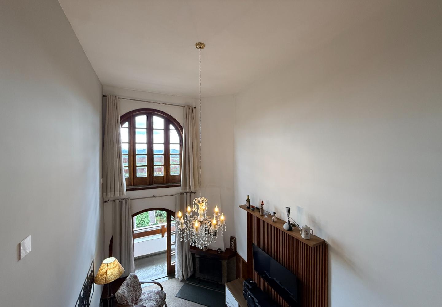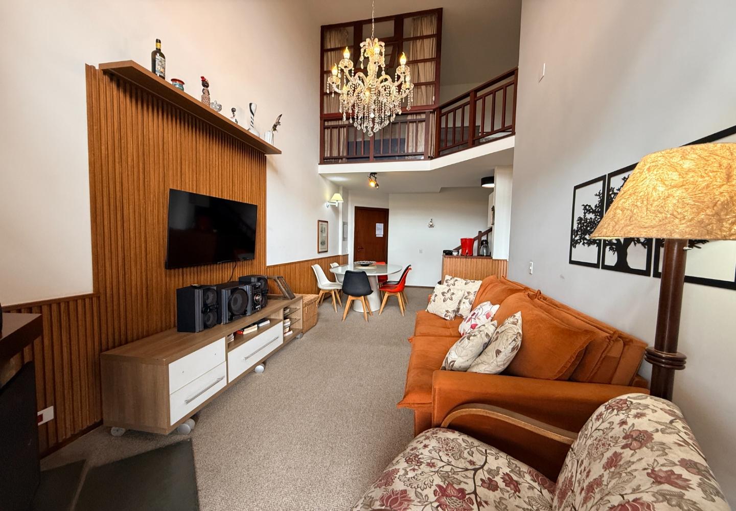 Apartamento duplex com 100m², bem distribuído e com uma área social marcada pelo pé-direito duplo e grandes aberturas, que trazem luz natural e valorizam a vista para a vegetação ao redor. A sala integra estar, jantar e cozinha em um único ambiente, com lareira e acesso direto à varanda. No piso principal, o apartamento conta com um dormitório atendido por banheiro social. No pavimento superior, há mais um dormitório, além de um espaço adicional que hoje está configurado como quarto, mas pode ser utilizado como sala íntima, escritório ou outro ambiente de apoio, conforme a necessidade. O apartamento será vendido mobiliado. A taxa de condomínio inclui gás, água, internet básica e pacote SKY.