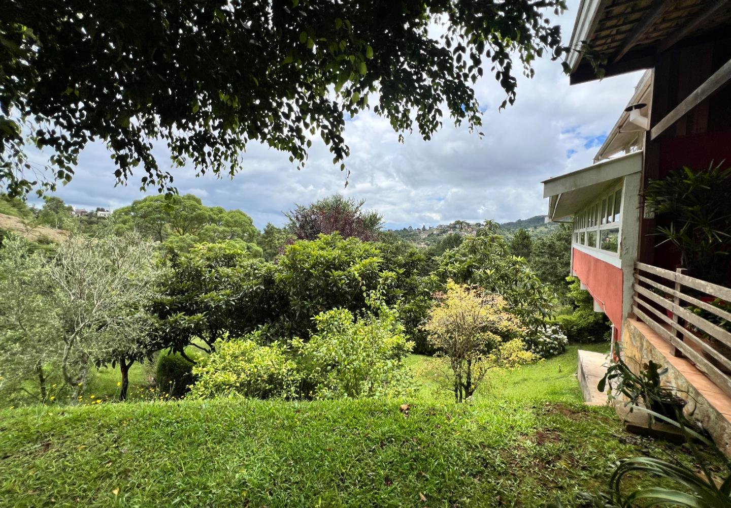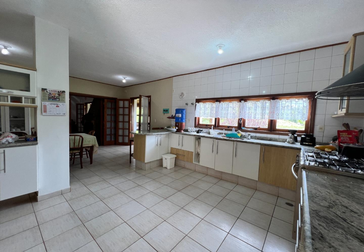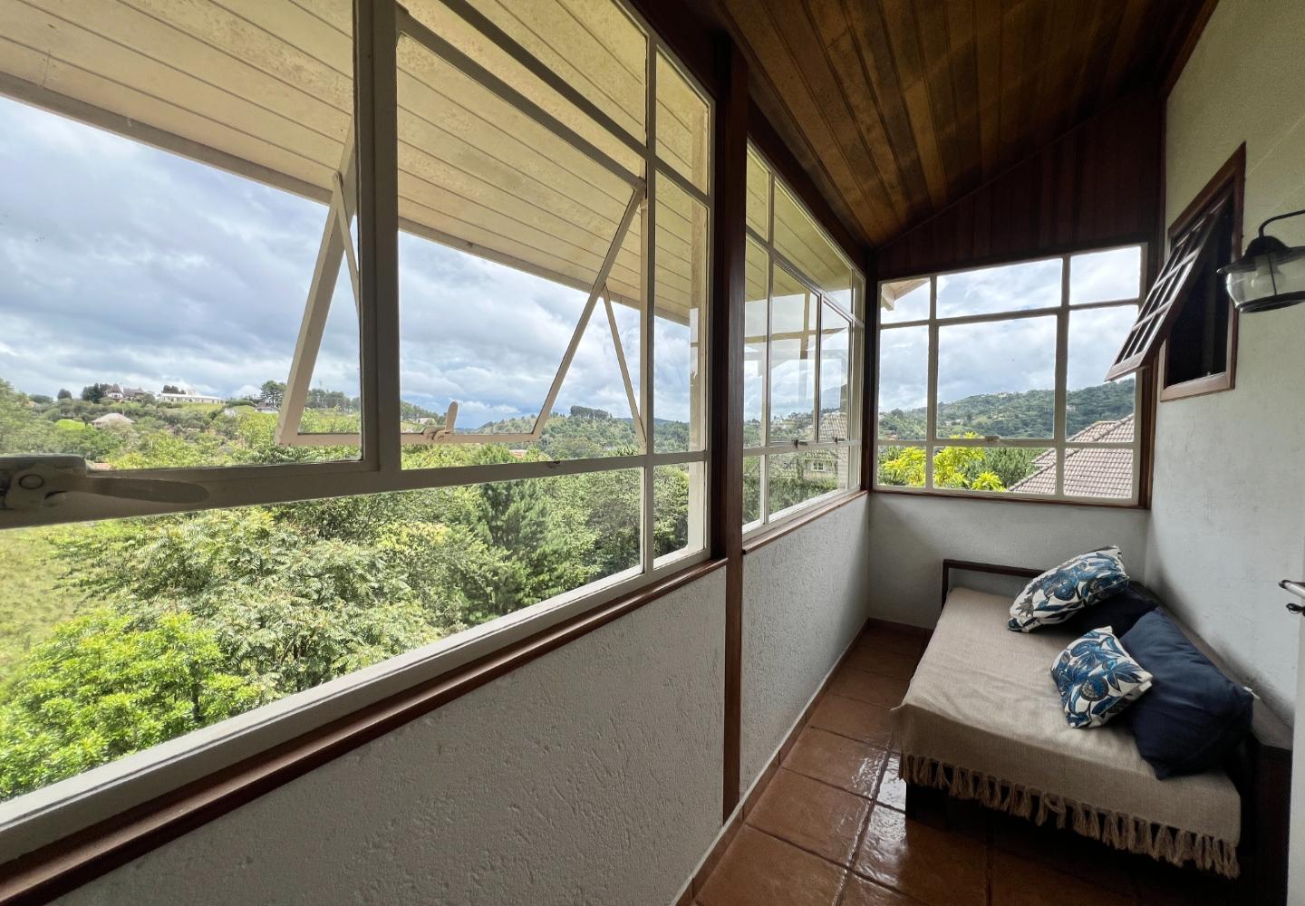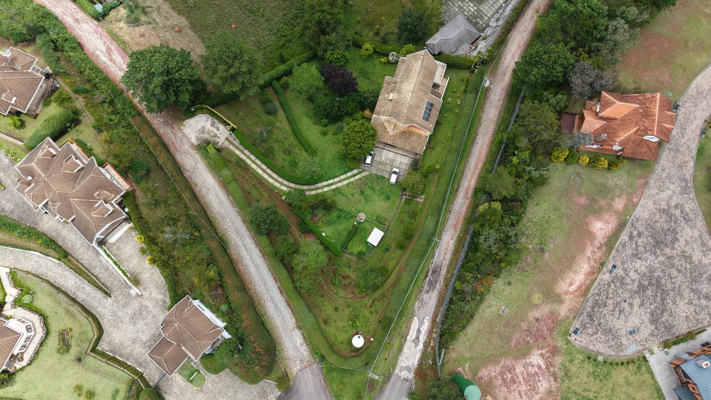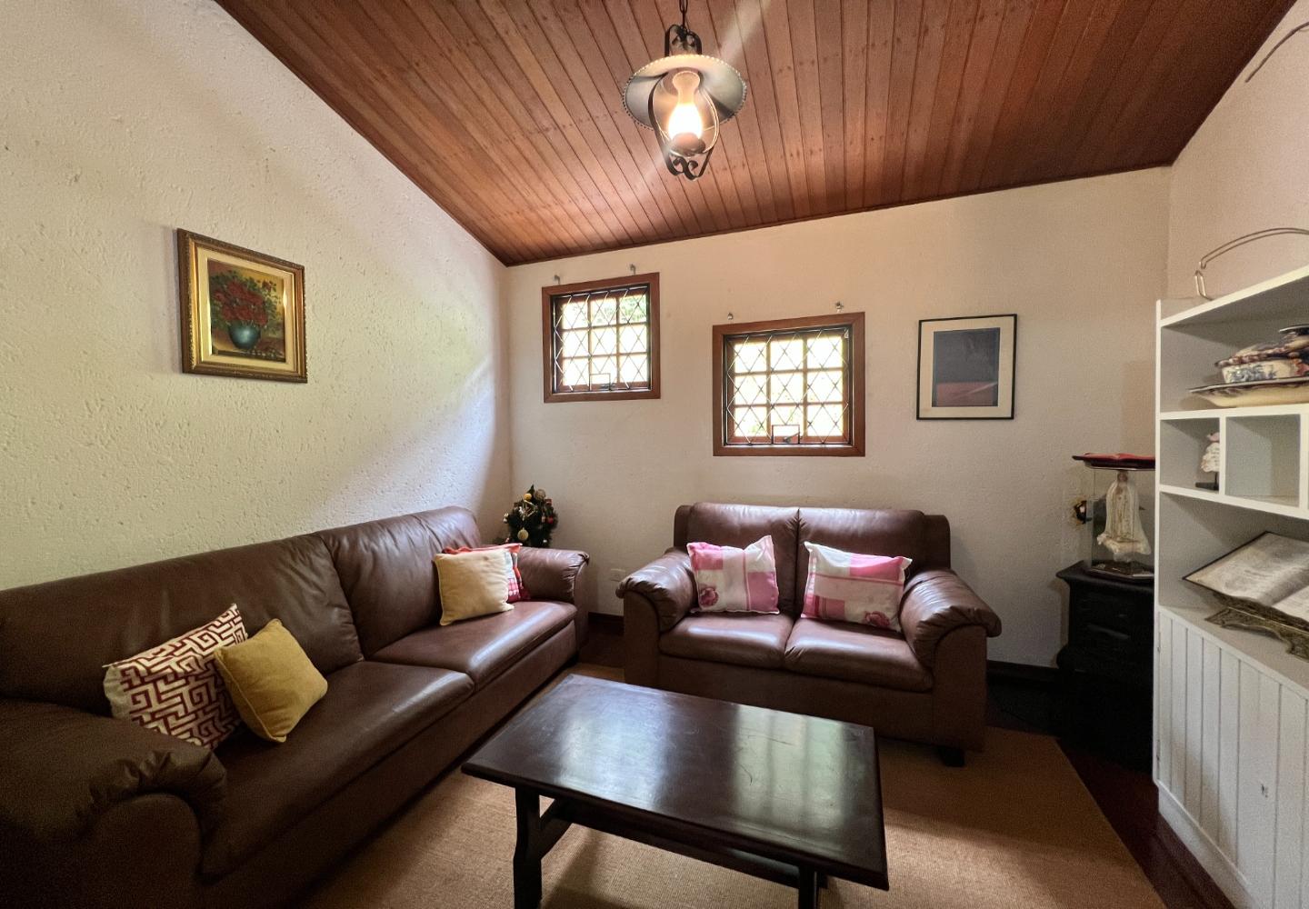 No Atalaia, esta casa se destaca pelo terreno generoso de 2.800 m² e pela implantação que aproveita bem a topografia, com jardins e áreas externas abertas ao verde. São 409 m² de área construída, em um conjunto com linguagem bem característica da serra, incluindo volumes com acabamento em pedra, boa presença de madeira e telhado inclinado.