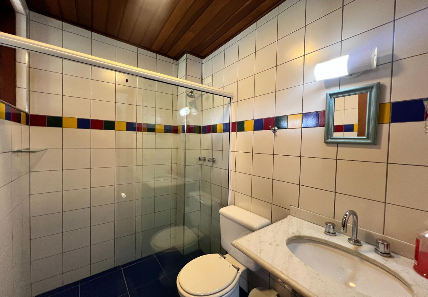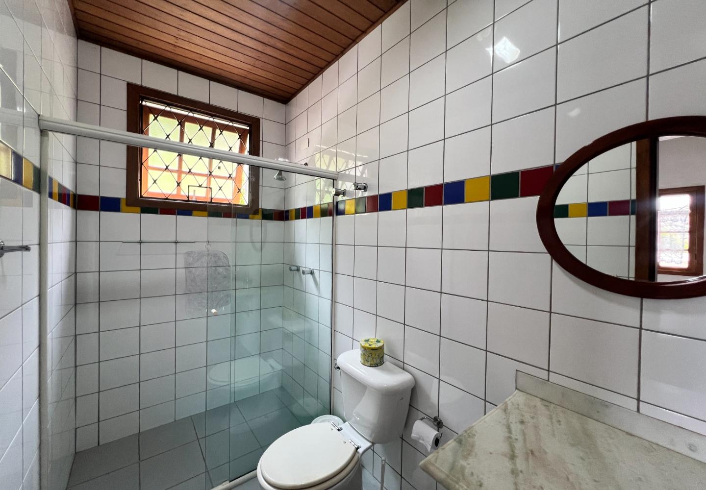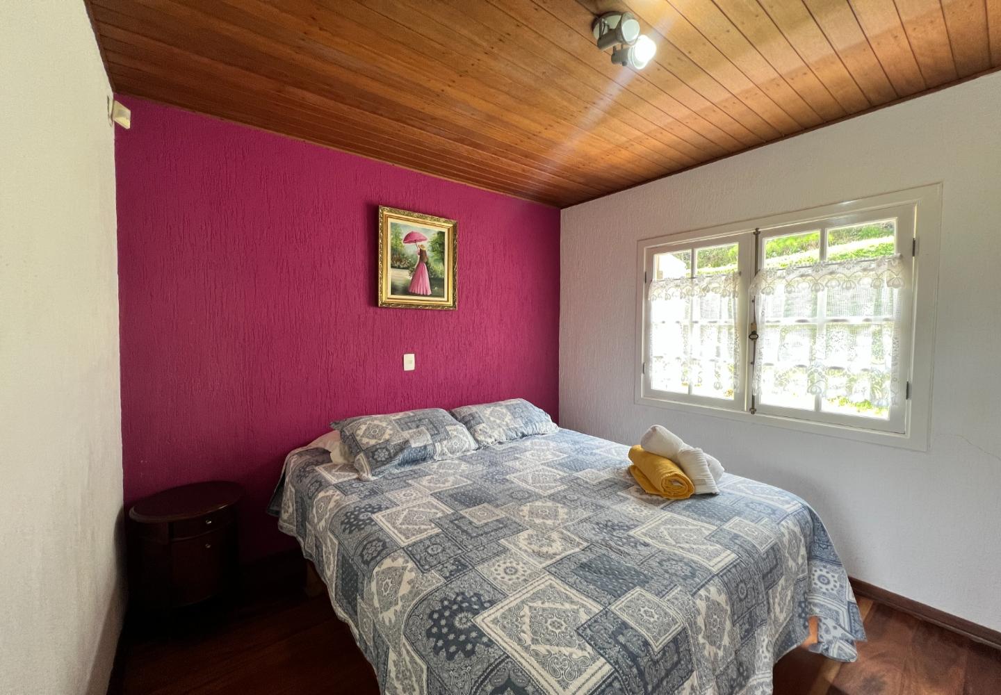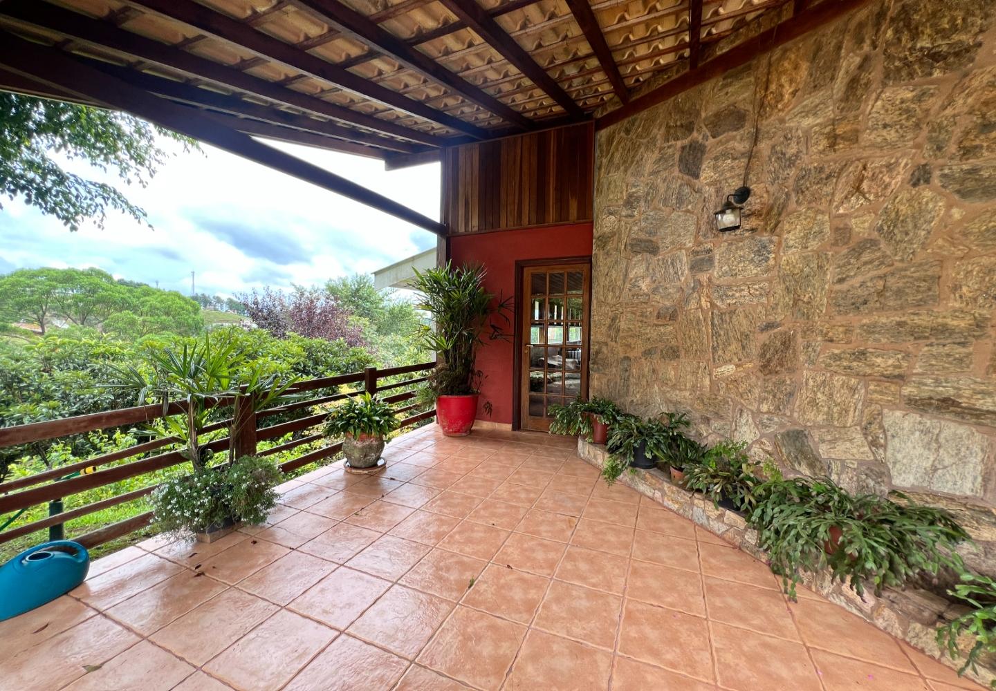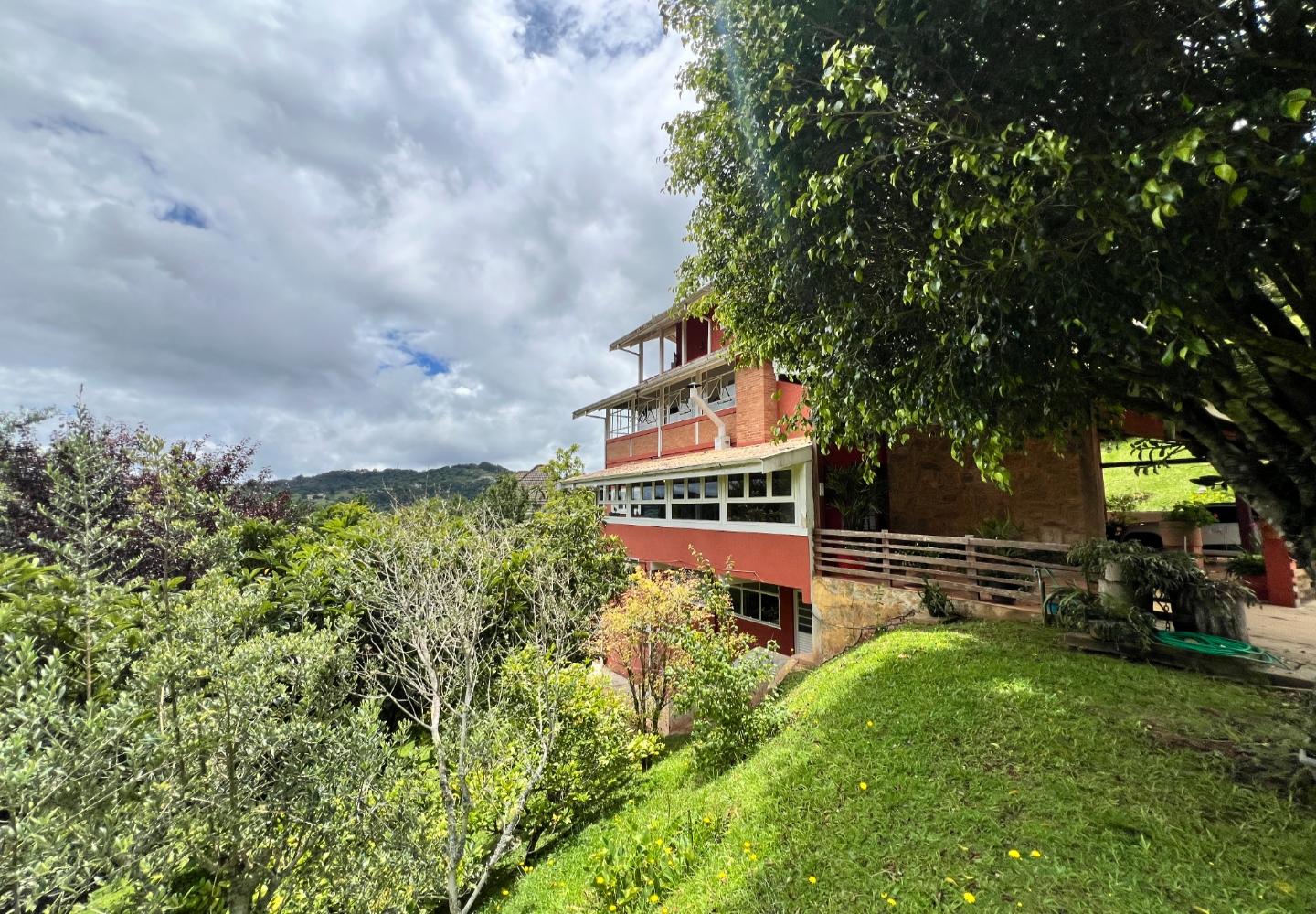 No Atalaia, esta casa se destaca pelo terreno generoso de 2.800 m² e pela implantação que aproveita bem a topografia, com jardins e áreas externas abertas ao verde. São 409 m² de área construída, em um conjunto com linguagem bem característica da serra, incluindo volumes com acabamento em pedra, boa presença de madeira e telhado inclinado.