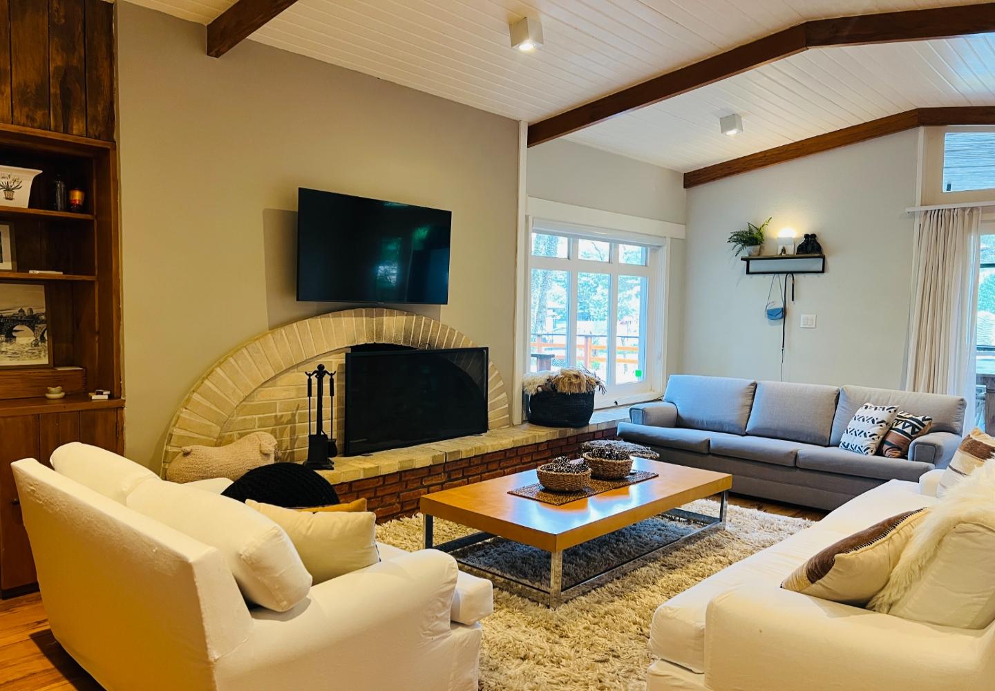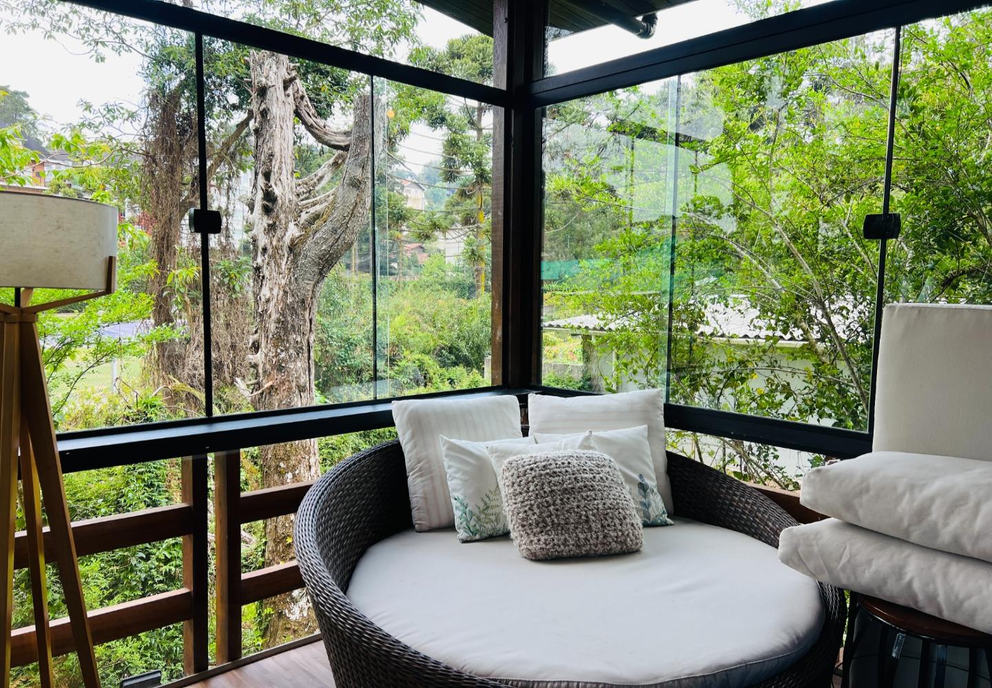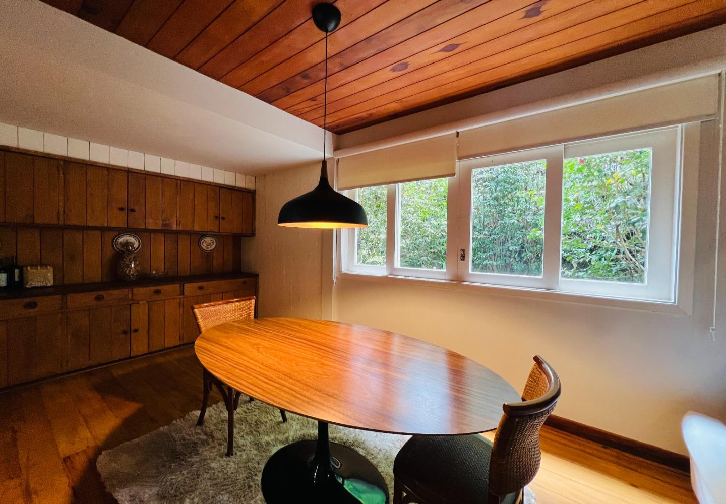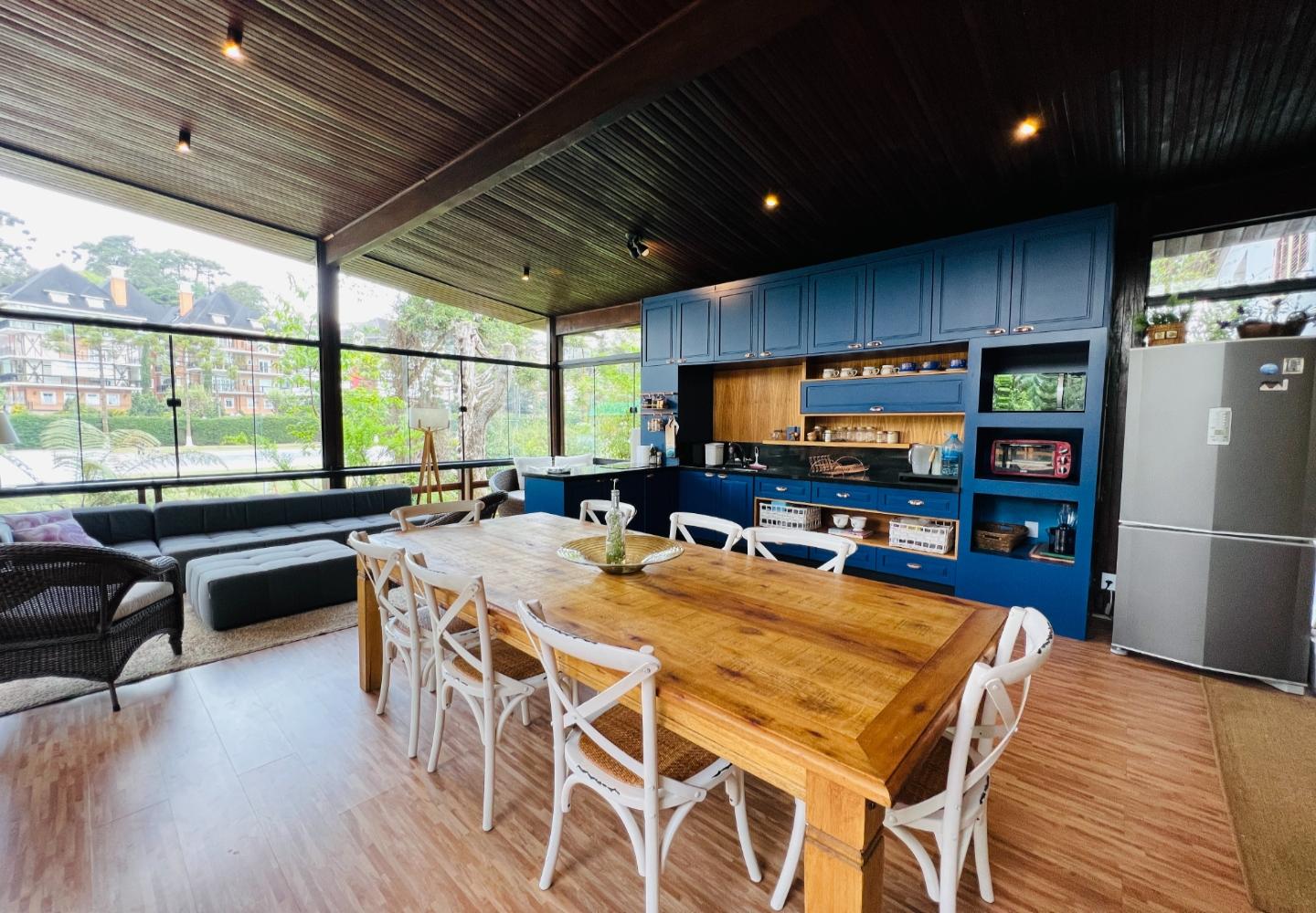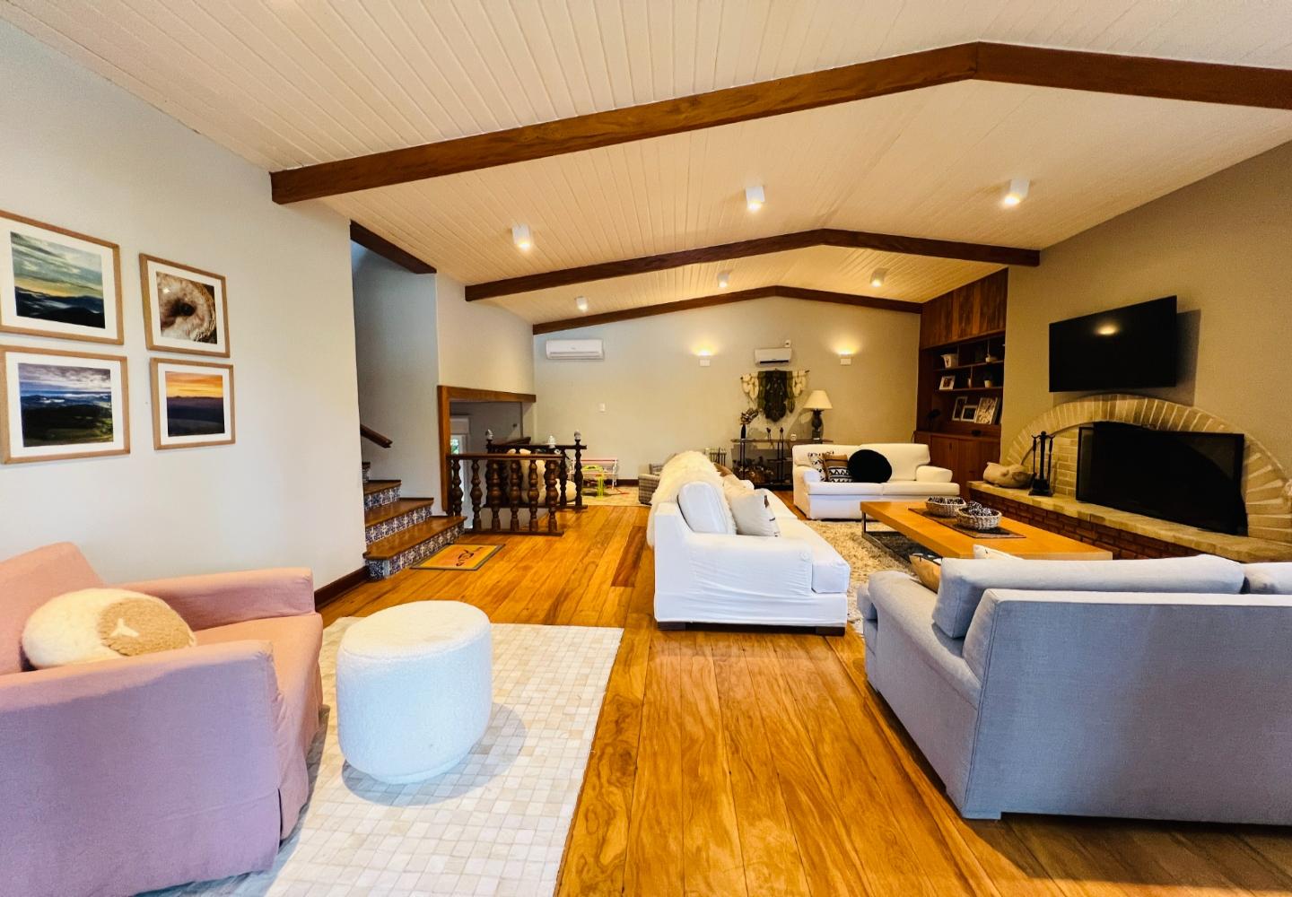 São 350 m² de área construída em um terreno de 800 m², com ambientes bem distribuídos e uma arquitetura que favorece adaptações. O imóvel principal conta com cinco dormitórios, três banheiros, amplas salas com lareira e piso de madeira, além de uma cozinha funcional. O espaço envidraçado integrado ao deck de madeira oferece um cenário agradável e versátil — perfeito para um restaurante, café ou ambiente corporativo que valorize o visual da montanha.