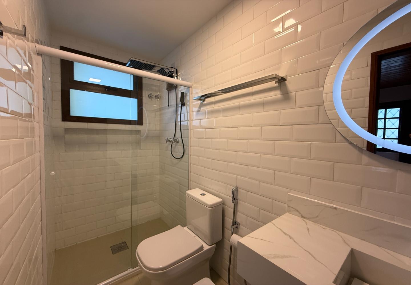 Na parte hidráulica, além do boiler, todo o sistema é pressurizado, garantindo bastante água quente e fria em todas as torneiras, com boa vazão. E, para suportar essa estrutura e também aquecedores elétricos em todos os ambientes, a casa teve aumento de carga na elétrica, deixando tudo mais preparado e estável.