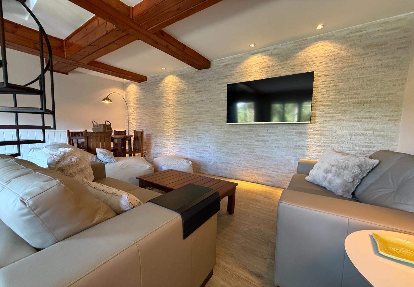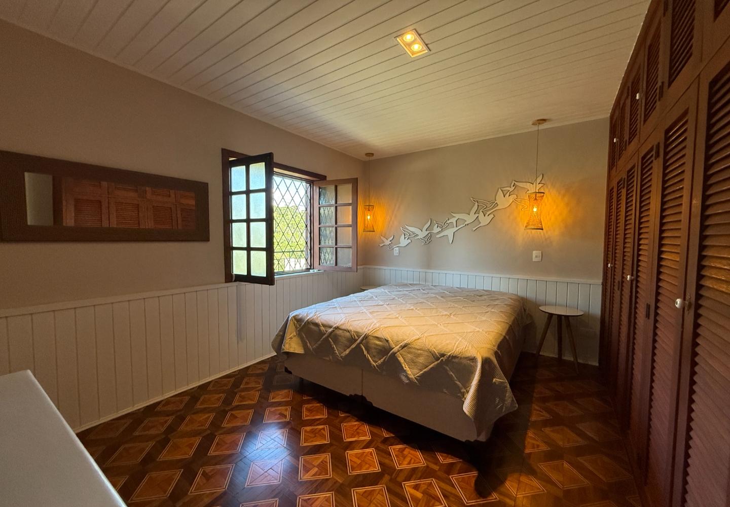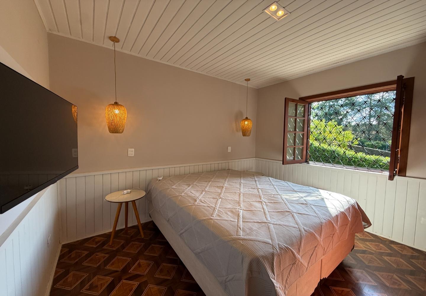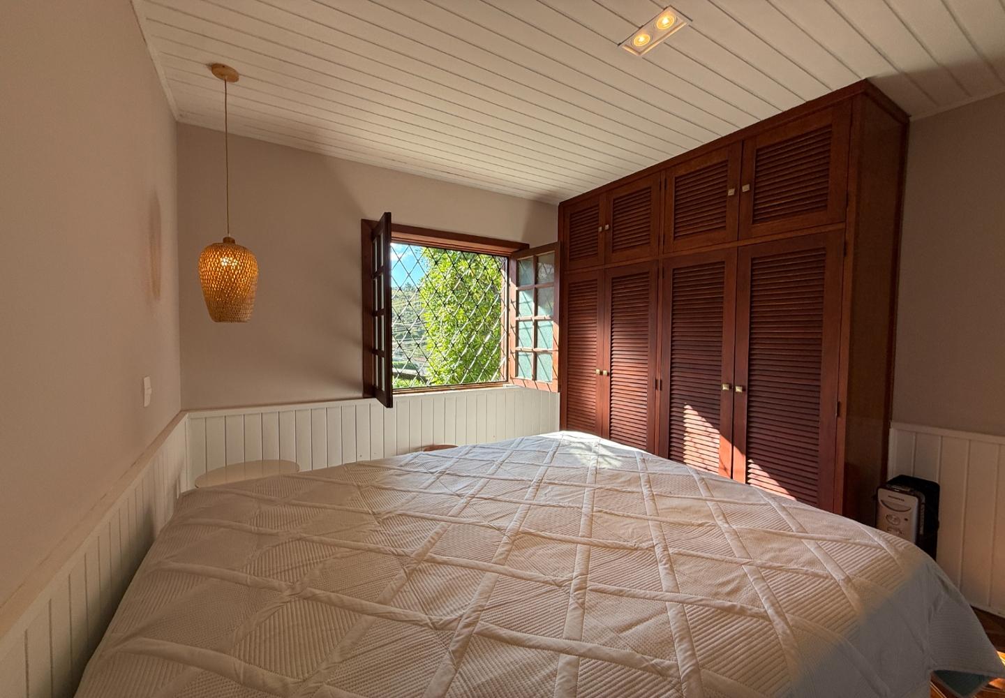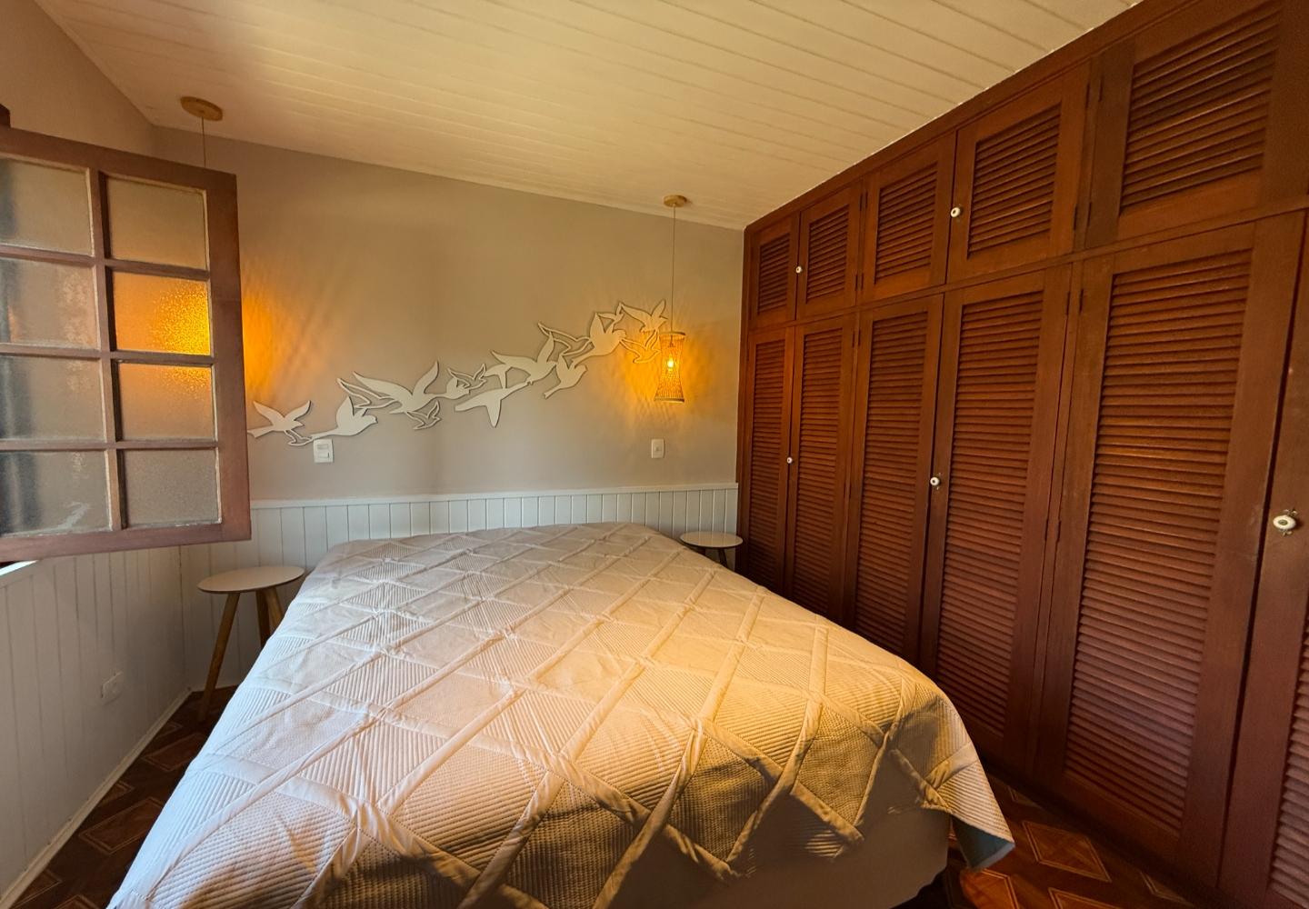 Além da reforma, a casa recebeu melhorias bem importantes de conforto e desempenho: foi feita a colocação de isolamento térmico sobre o forro e a laje, e as janelas em PVC contam com vidros duplos, trazendo isolamento térmico e também acústico. No dia a dia, isso faz diferença.