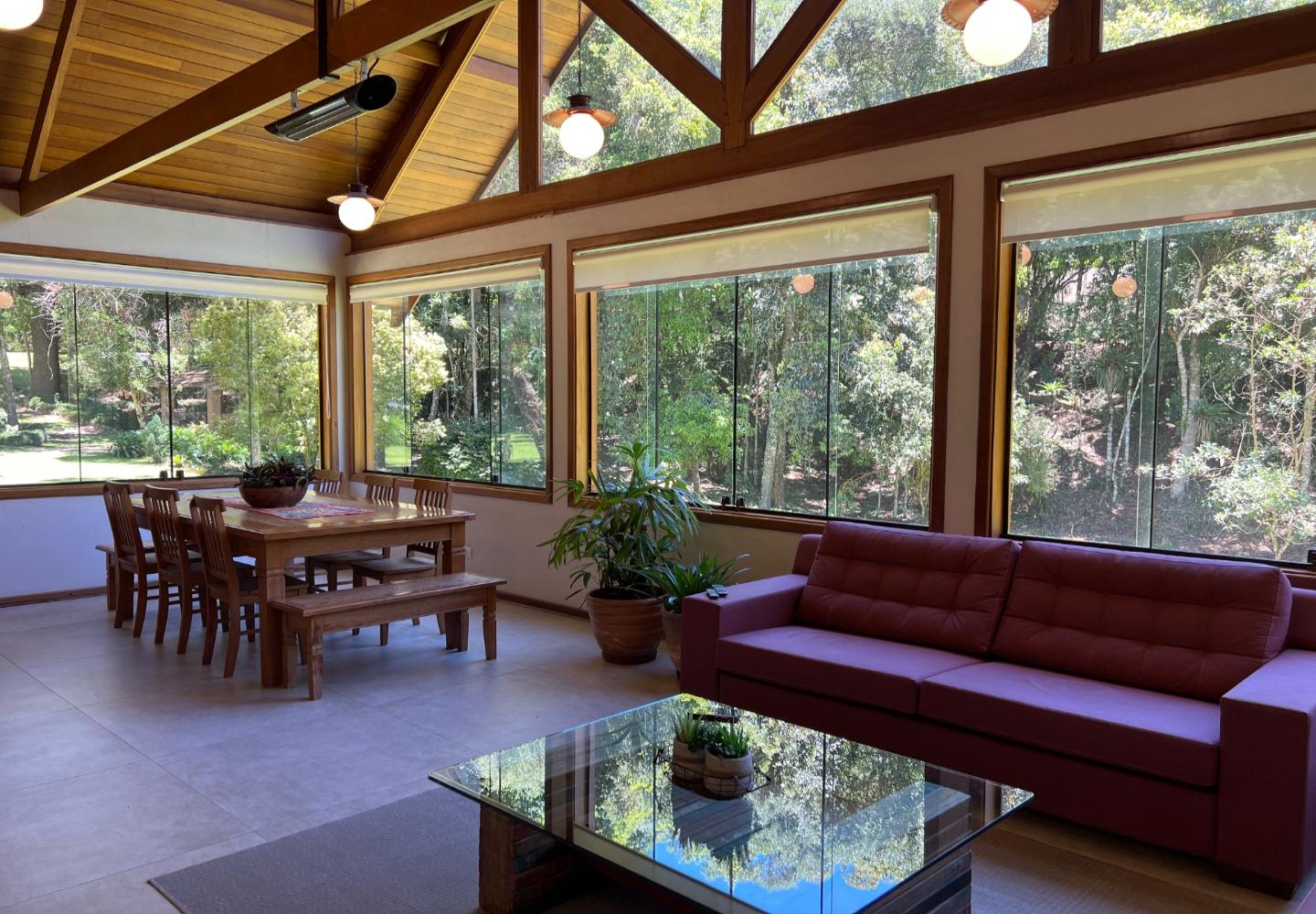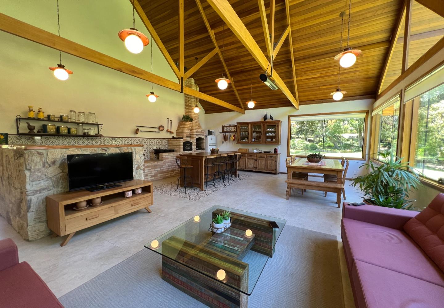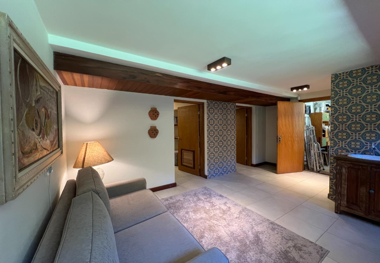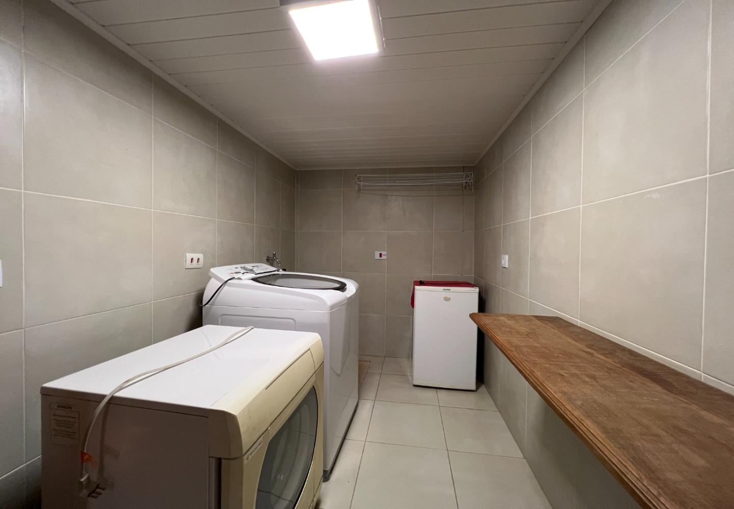 No pavimento inferior, ficam o office com banheiro, a lavanderia e um galpão atualmente utilizado como área de apoio. Embora essa área já ofereça possibilidade imediata de adaptação, o diferencial da propriedade está na escala do terreno e na posição da casa dentro dele: todo o conjunto permite conversões de uso, desde projetos residenciais ampliados até empreendimentos comerciais de porte médio. O espaço, a topografia favorável, a facilidade de acesso e a localização em zona valorizada possibilitam implantar restaurante, café, pousada, clínica, espaço de eventos ou propostas híbridas, utilizando tanto a estrutura existente quanto novas edificações dentro da área disponível.
