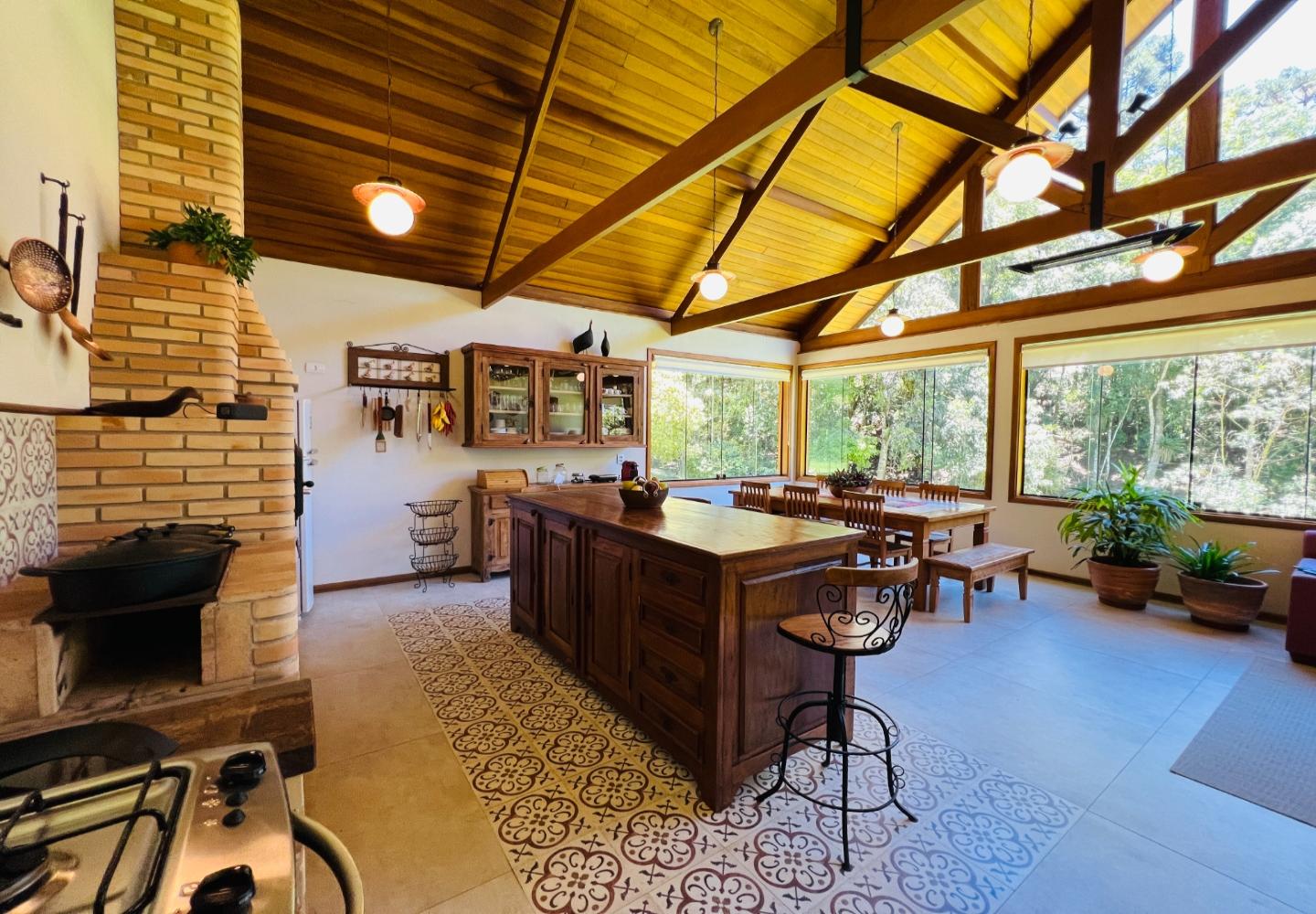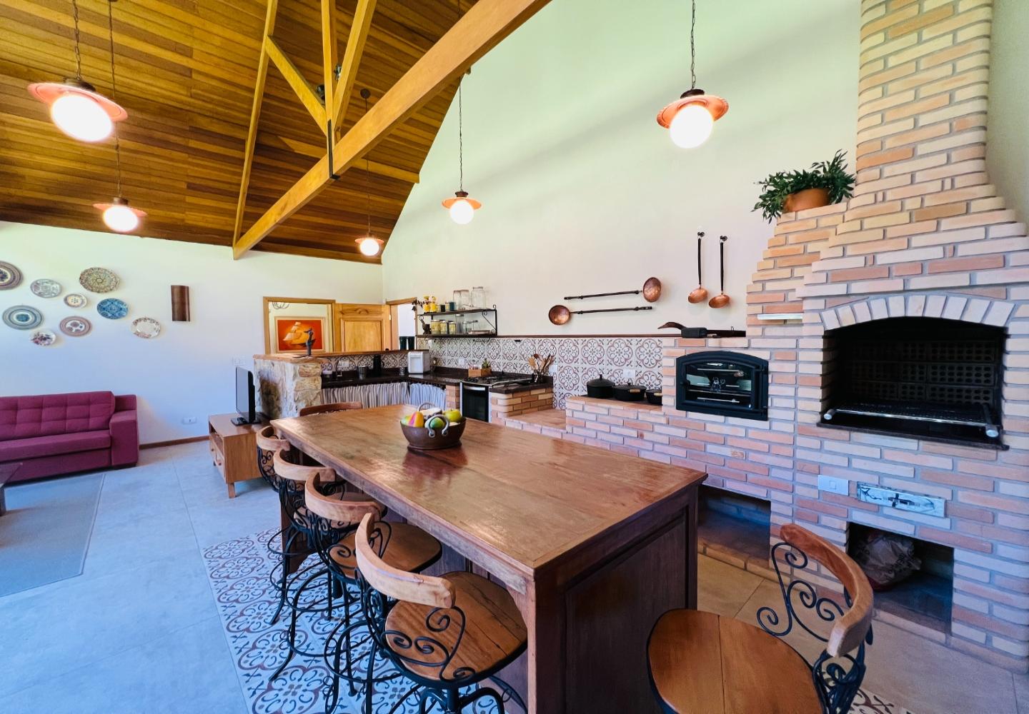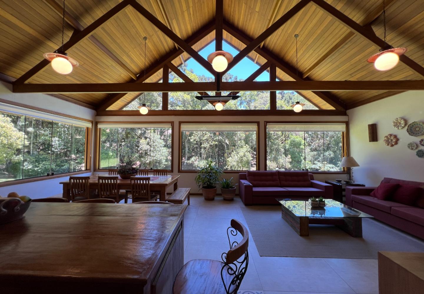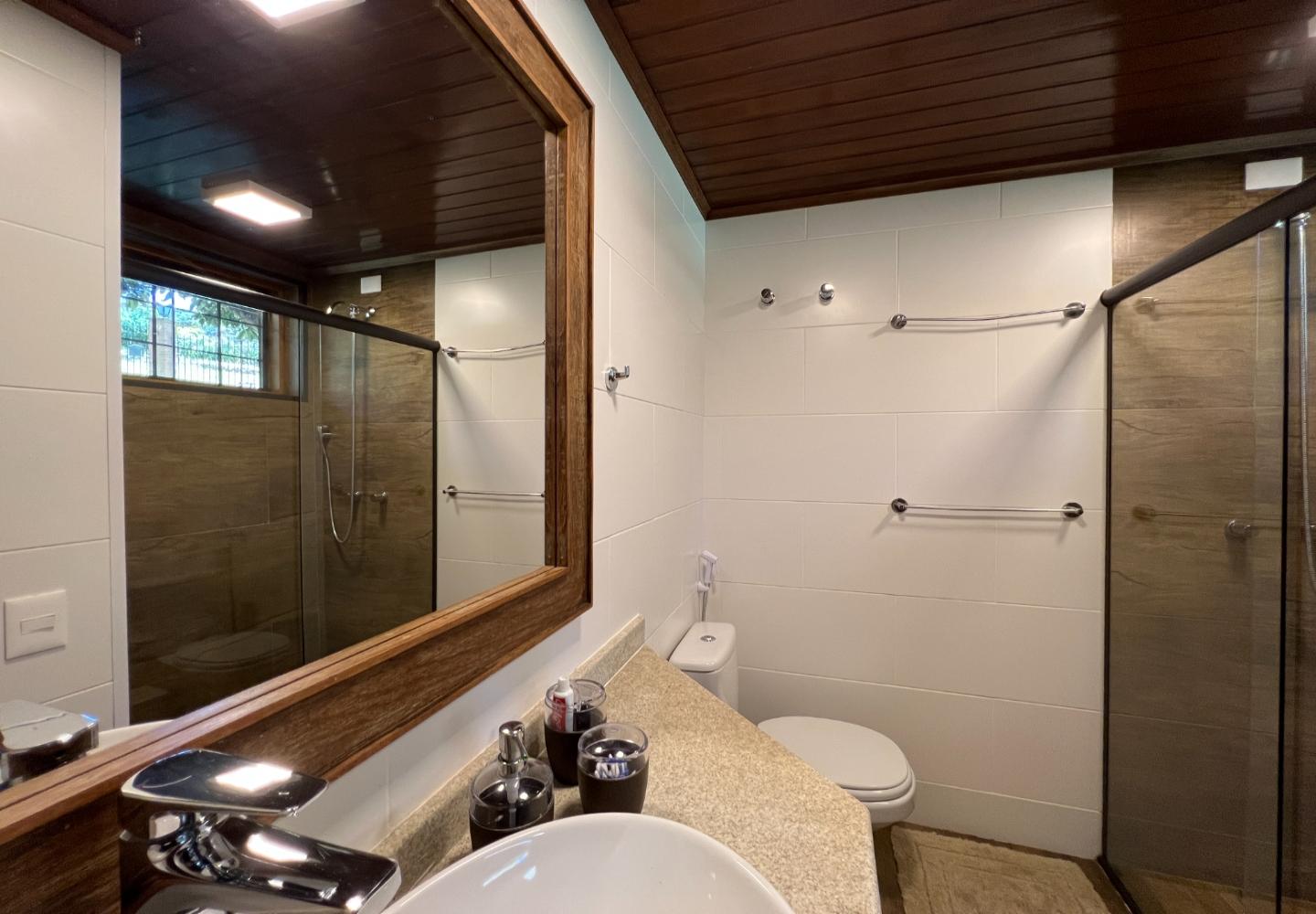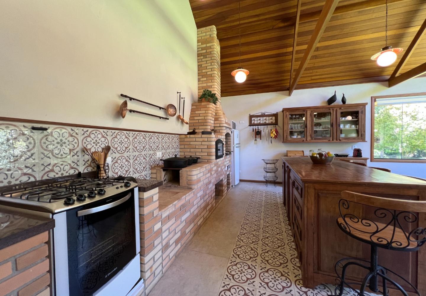 No pavimento inferior, ficam o office com banheiro, a lavanderia e um galpão atualmente utilizado como área de apoio. Embora essa área já ofereça possibilidade imediata de adaptação, o diferencial da propriedade está na escala do terreno e na posição da casa dentro dele: todo o conjunto permite conversões de uso, desde projetos residenciais ampliados até empreendimentos comerciais de porte médio. O espaço, a topografia favorável, a facilidade de acesso e a localização em zona valorizada possibilitam implantar restaurante, café, pousada, clínica, espaço de eventos ou propostas híbridas, utilizando tanto a estrutura existente quanto novas edificações dentro da área disponível.