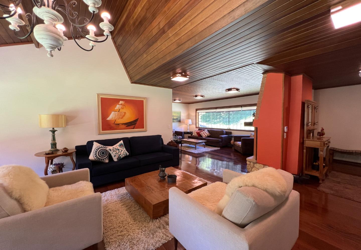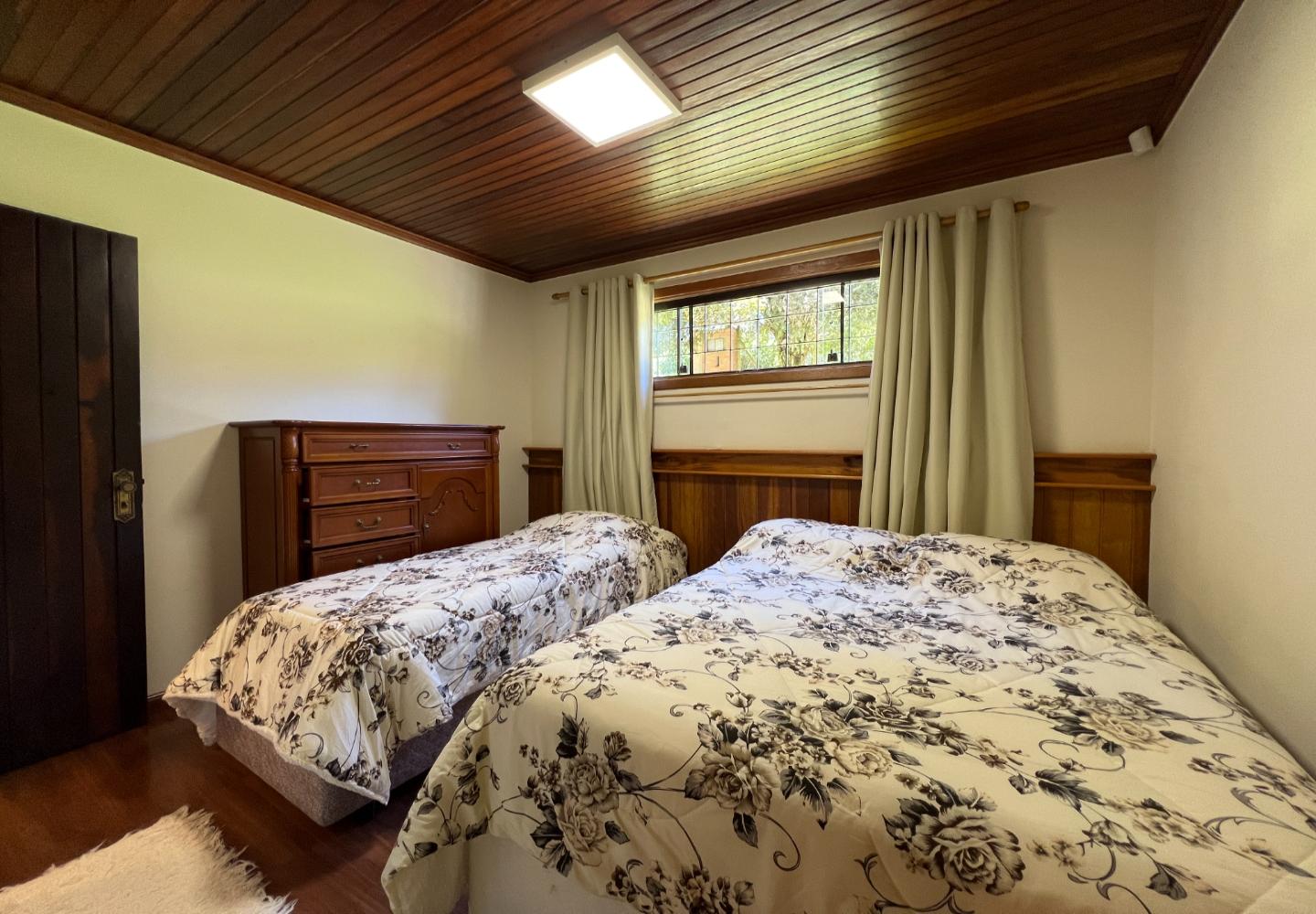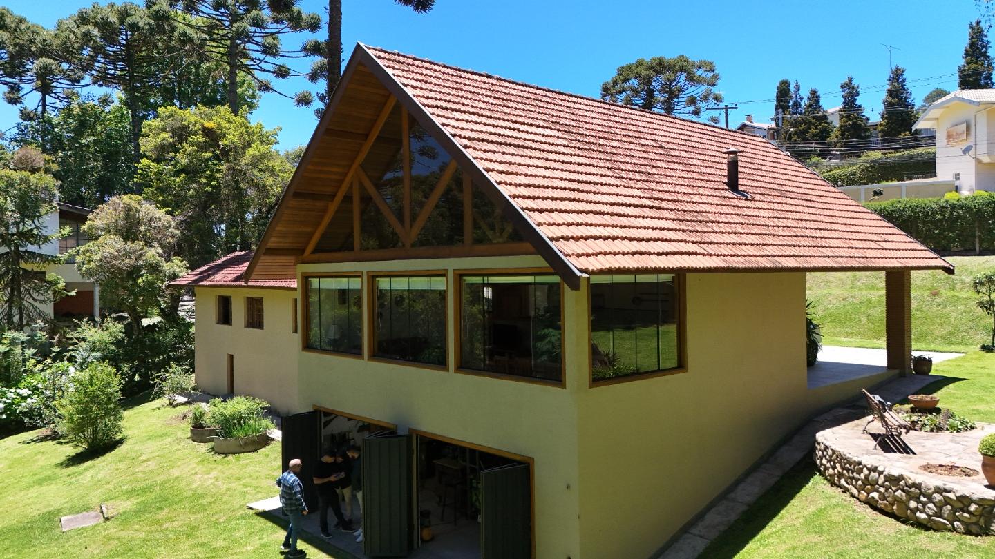 Em uma rua tranquila na região do Morro do Elefante, esta casa se destaca pelo terreno praticamente plano de 3.070 m², com ampla área gramada, araucárias maduras e excelente testada para a rua. São 310 m² distribuídos em dois pavimentos. No nível superior, o living envidraçado se abre para o jardim e integra cozinha, jantar e espaço gourmet com forno e bancada central. Ao lado, um segundo estar com lareira organiza a área social e conduz à ala íntima, composta por quatro dormitórios, sendo duas suítes.