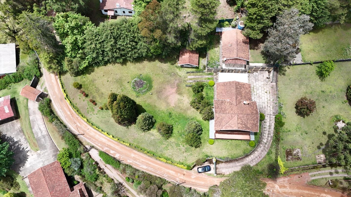 Localizada na região de Descansópolis, a apenas 200 metros do asfalto, esta propriedade se destaca pela posição elevada em relação à rua e pela excelente incidência de sol ao longo do dia. O terreno de 2.642 m² oferece amplo espaço verde, jardim formado e boa privacidade, abrigando duas casas independentes: uma principal e outra de hóspedes.