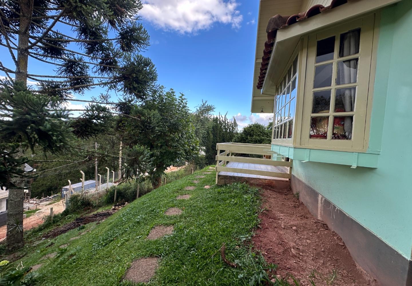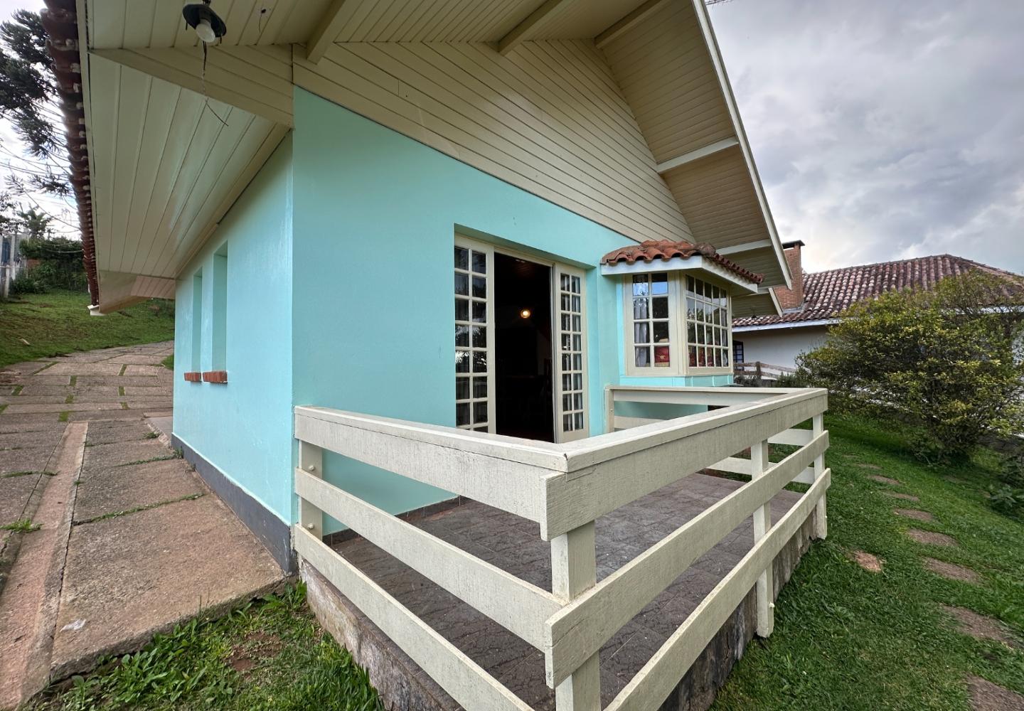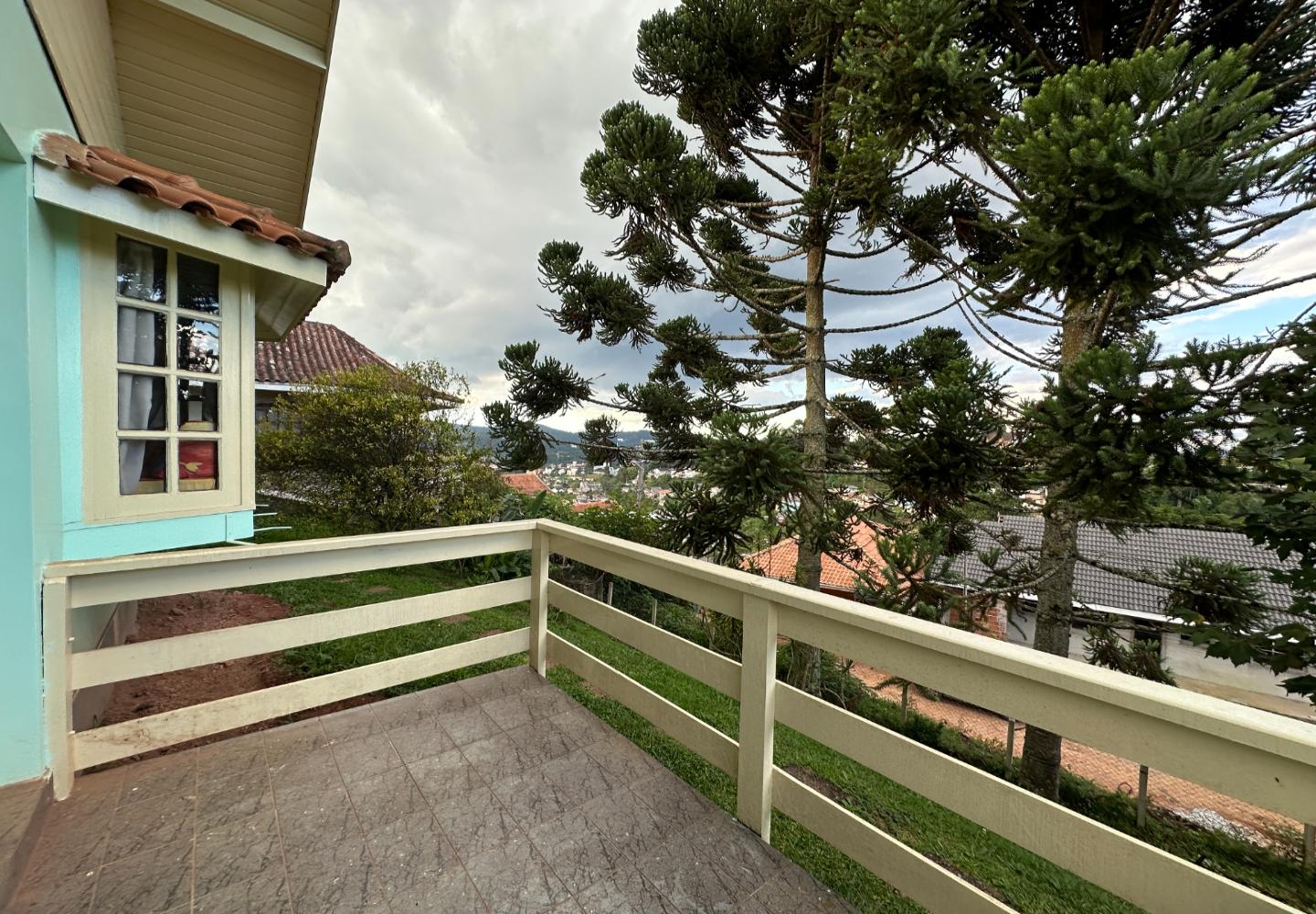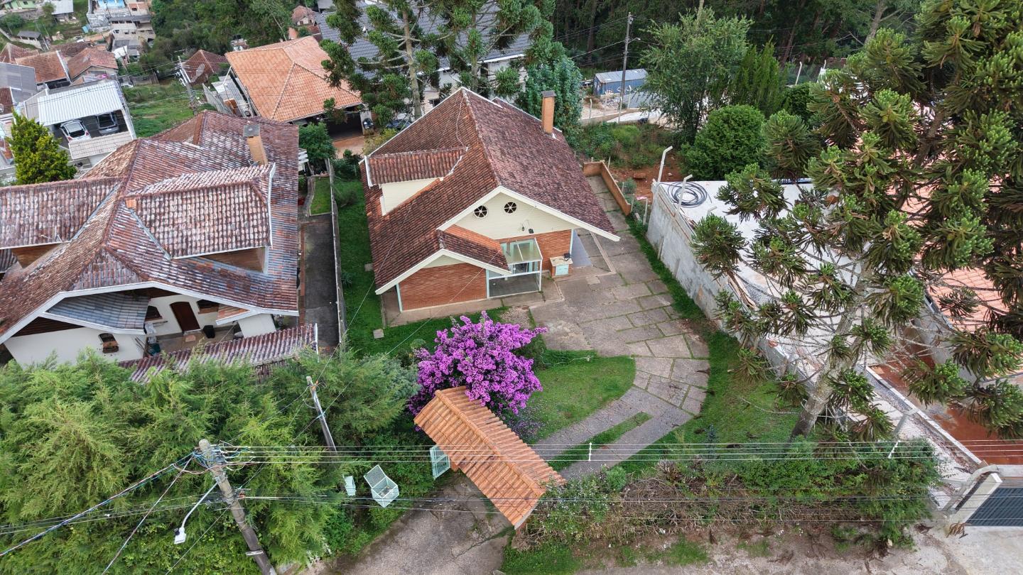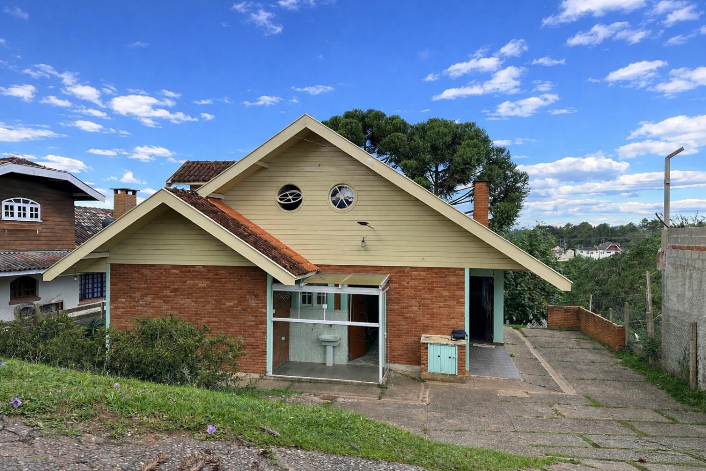 No alto da Vila Inglesa, esta casa tem 145 m² de área útil em um terreno de 648 m², com boa área externa e excelente aproveitamento do lote. No pavimento térreo são dois dormitórios, sendo uma suíte, além de banheiro social, sala com lareira e cozinha com passa-pratos integrada à área social. No piso superior, a casa conta com um pequeno living e mais uma suíte, trazendo mais privacidade à distribuição. O terreno acompanha bem a implantação da casa, com acesso já definido, área gramada e espaço externo que valoriza bastante o imóvel.