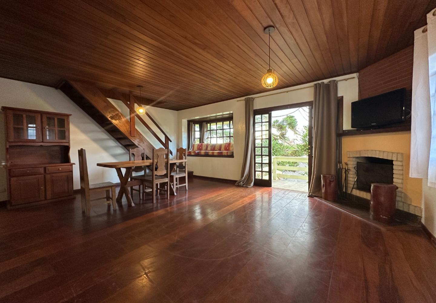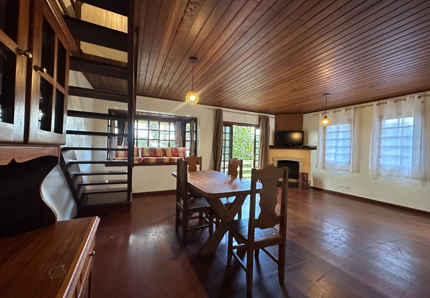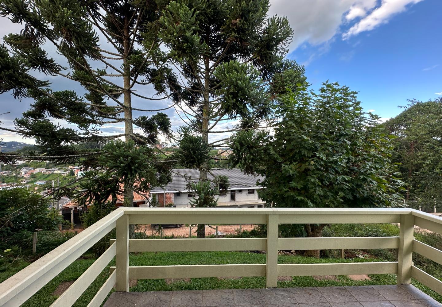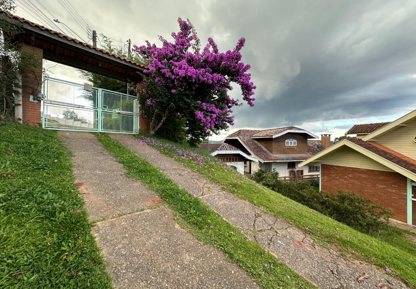 No alto da Vila Inglesa, esta casa tem 145 m² de área útil em um terreno de 648 m², com boa área externa e excelente aproveitamento do lote. No pavimento térreo são dois dormitórios, sendo uma suíte, além de banheiro social, sala com lareira e cozinha com passa-pratos integrada à área social. No piso superior, a casa conta com um pequeno living e mais uma suíte, trazendo mais privacidade à distribuição. O terreno acompanha bem a implantação da casa, com acesso já definido, área gramada e espaço externo que valoriza bastante o imóvel.
