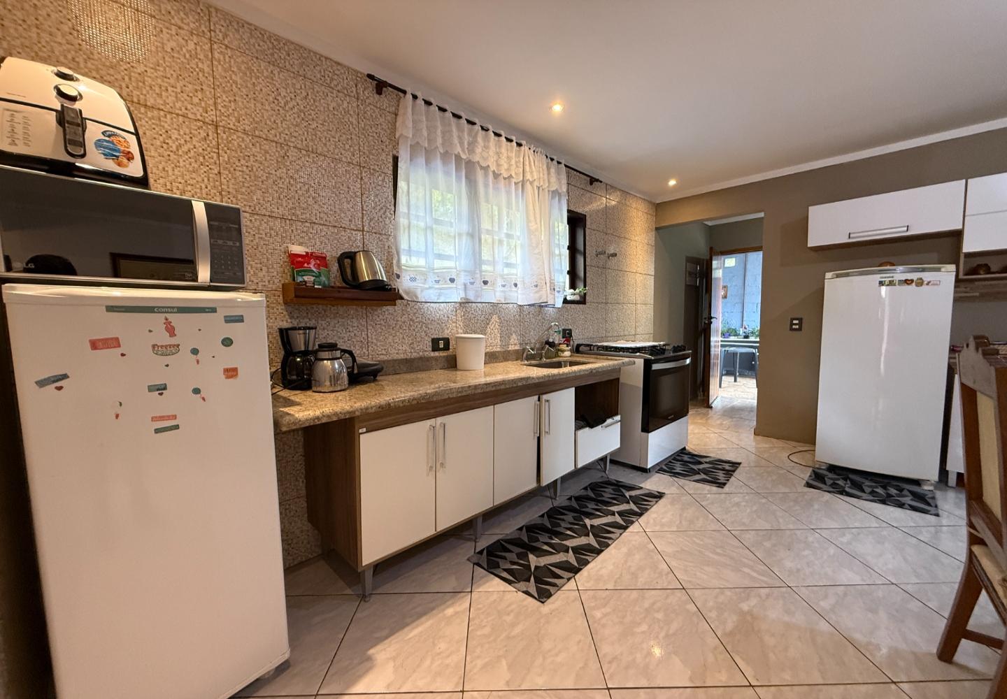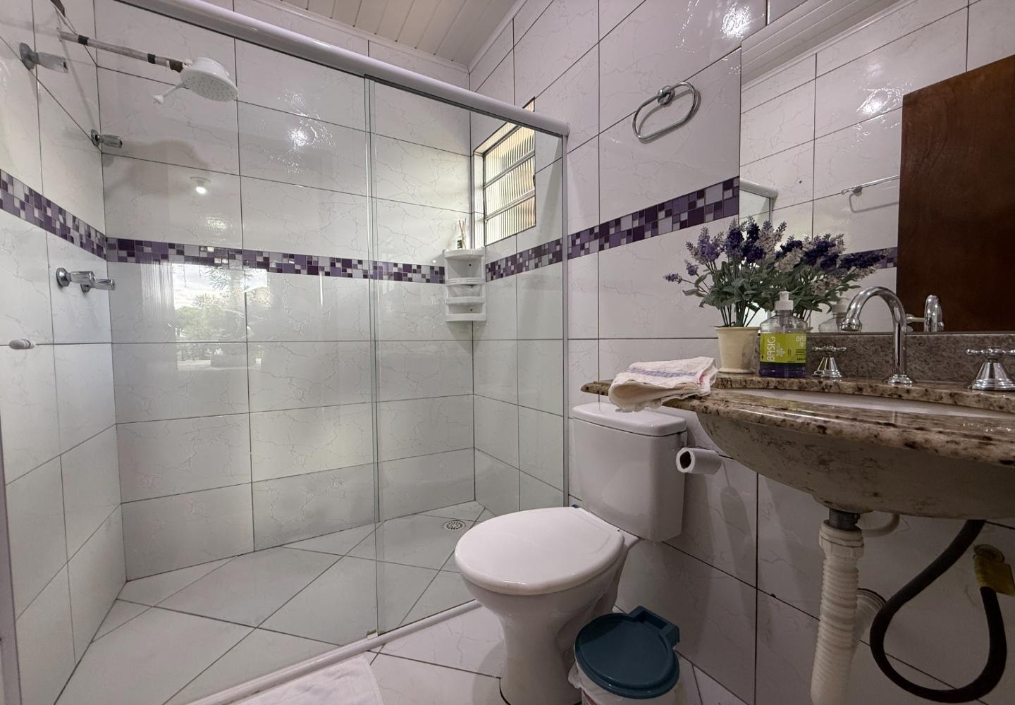 No nível inferior do terreno, há uma segunda casa com 86 m², composta por sala, cozinha, banheiro e dois dormitórios, com acesso independente, o que amplia as possibilidades de uso, seja para família, hóspedes ou apoio. O imóvel dispõe ainda de duas vagas descobertas.
