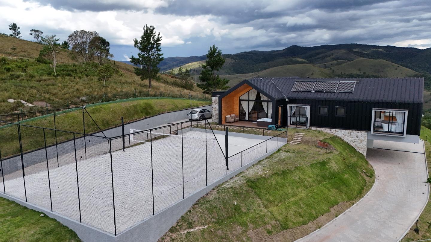 Casa localizada no Condomínio Iporanga, um dos endereços mais consolidados e valorizados de Campos do Jordão, implantada em um terreno amplo de 2.200 m², com 324 m² de área construída e vista aberta para as montanhas. A arquitetura privilegia integração, iluminação natural e materiais que dialogam com a paisagem.