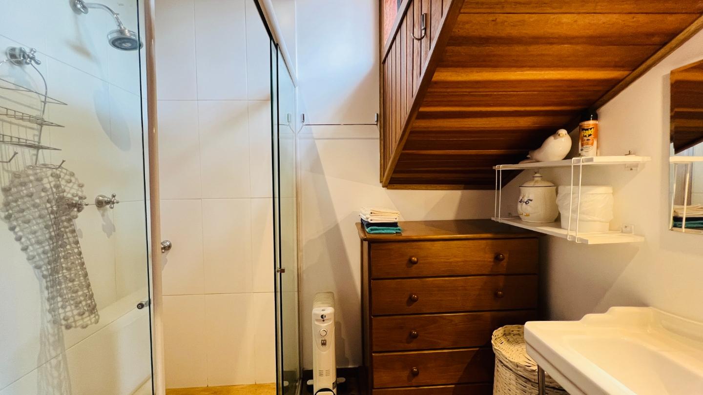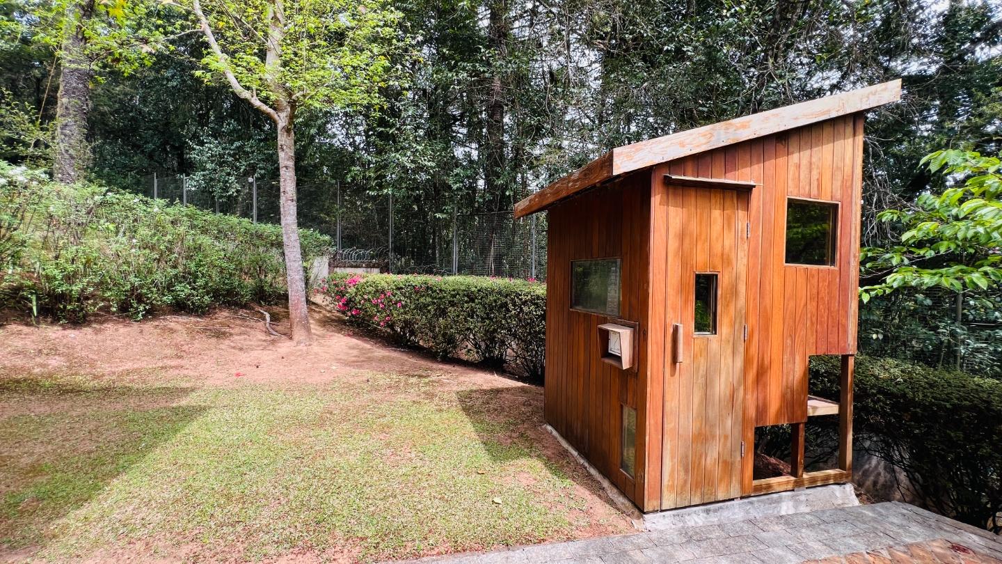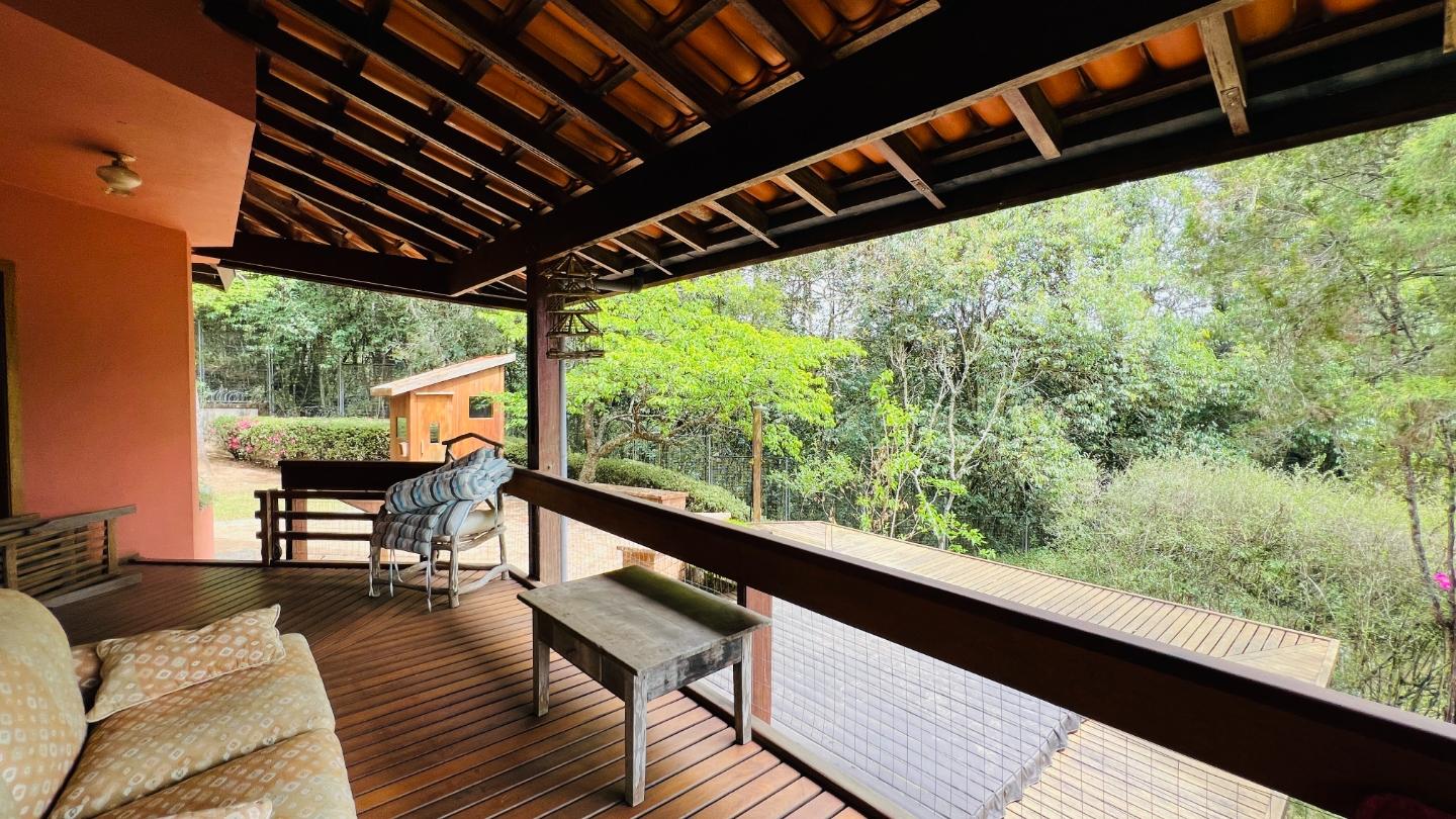 Na parte externa, um dos diferenciais é a área de lazer com sauna e hidromassagem, proporcionando momentos de relaxamento em meio ao verde da serra.