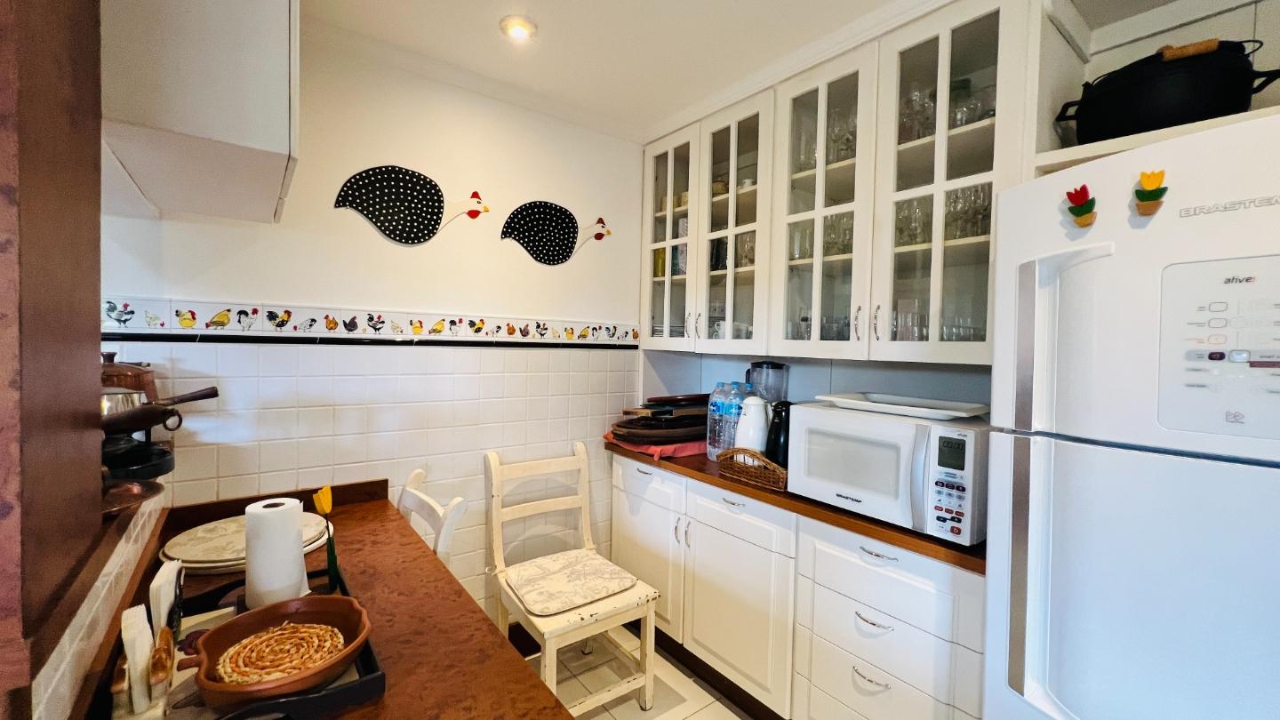 São 4 dormitórios, sendo 3 suítes amplas, distribuídos em uma planta funcional e bem iluminada. O living reúne sala de estar com lareira, sala de TV, área de jantar e integração com a varanda gourmet equipada com churrasqueira e forno, perfeita para receber familiares e amigos.
