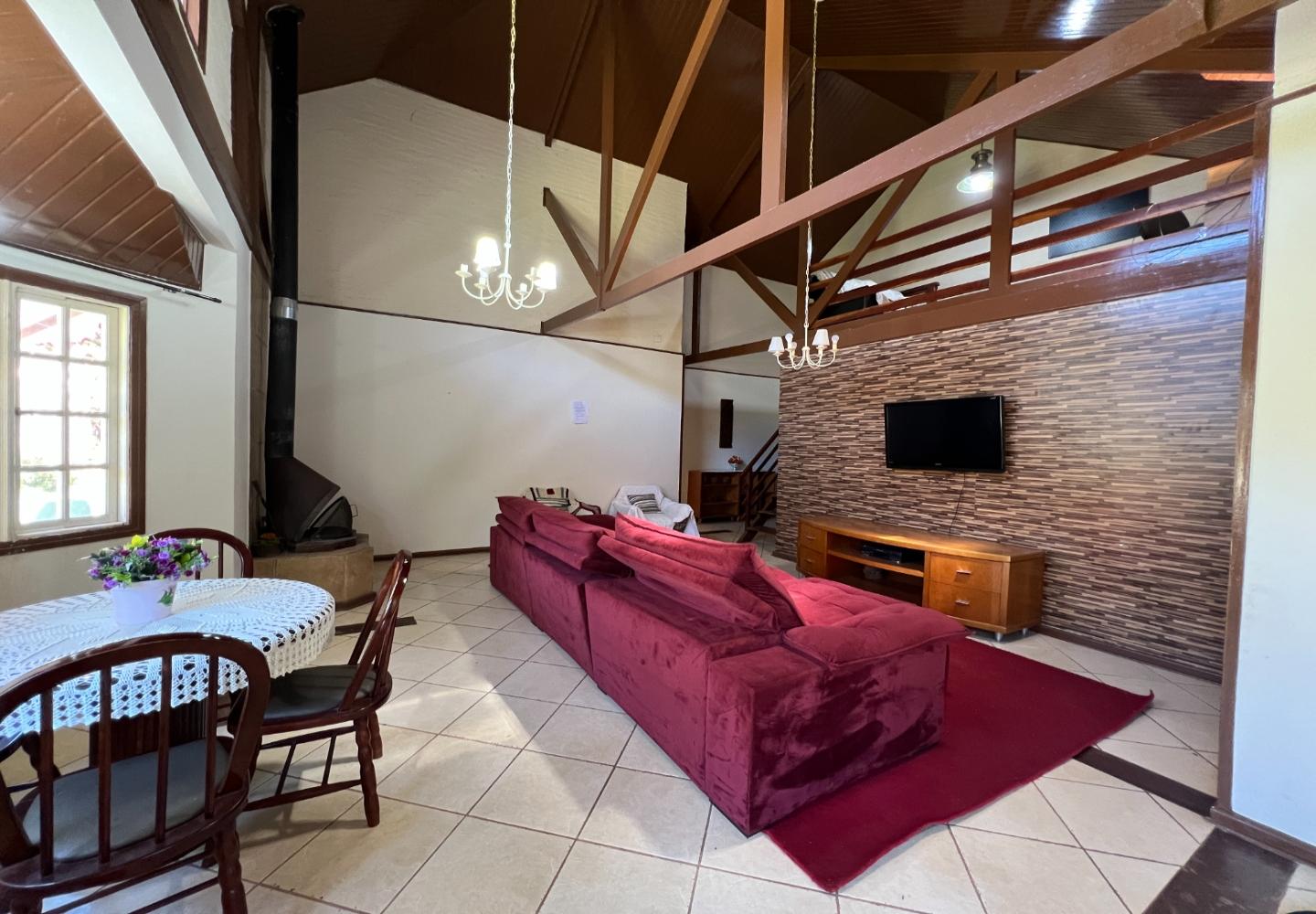 A casa principal conta com 3 suítes, escritório, sala ampla, cozinha, despensa e lavanderia, garantindo conforto e praticidade. O segundo imóvel é um chalé aconchegante, com dormitório, sala integrada à cozinha e banheiro. Já a terceira construção é uma casa compacta, composta por 3 cômodos e banheiro, ideal para hóspedes ou apoio.