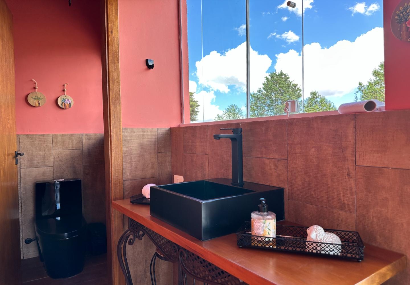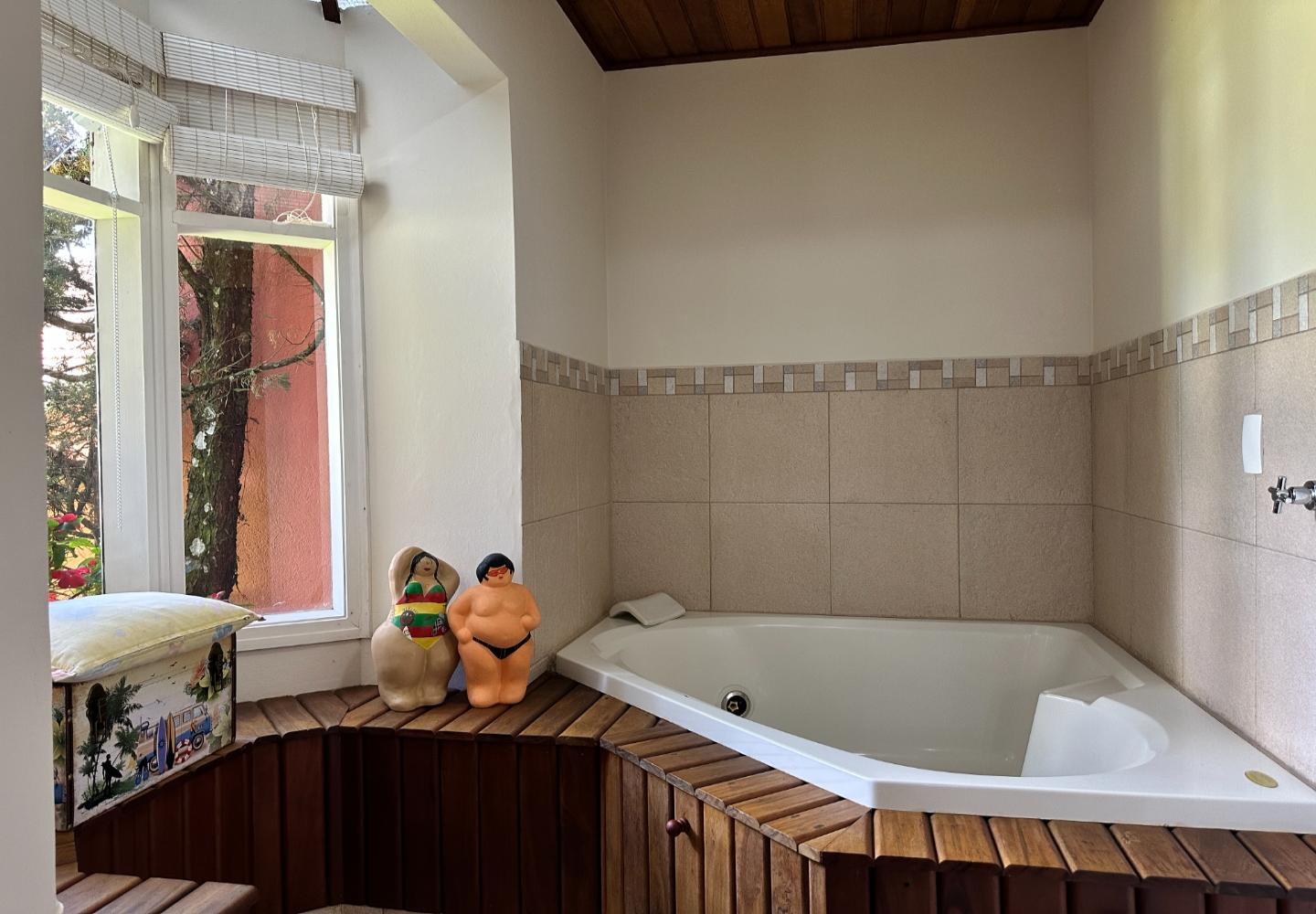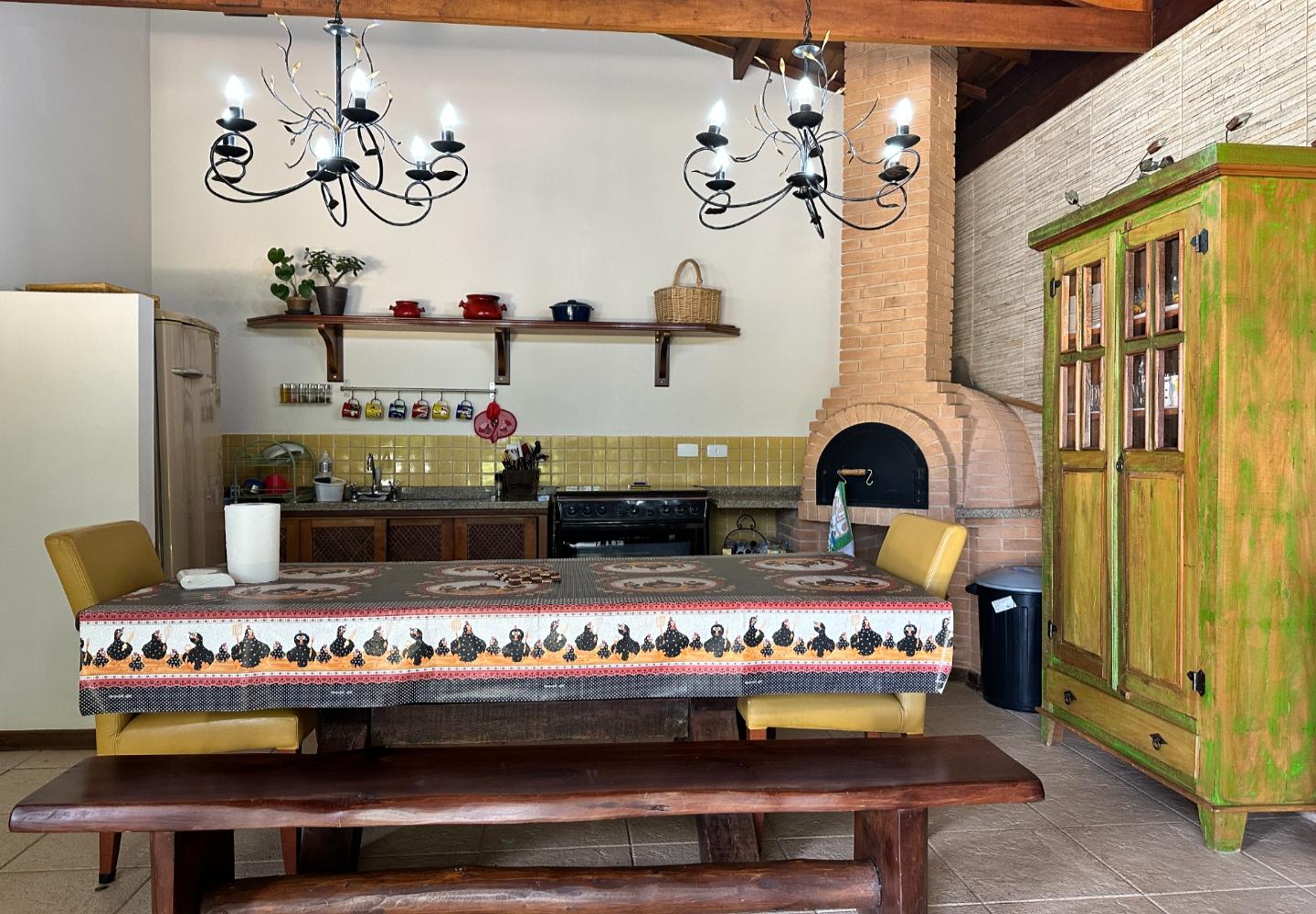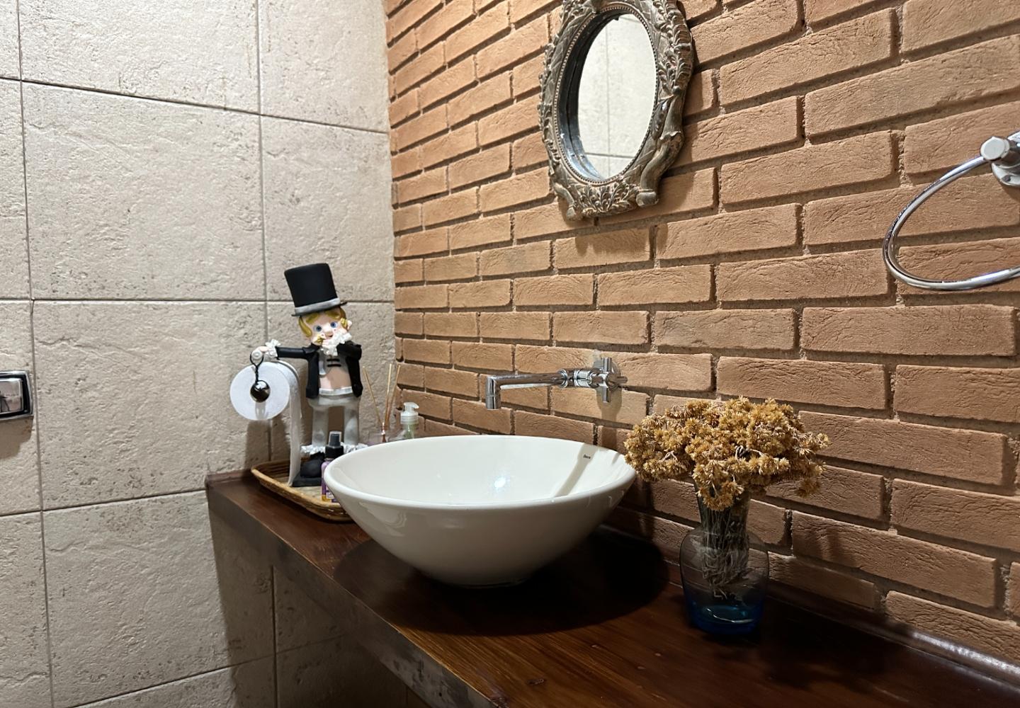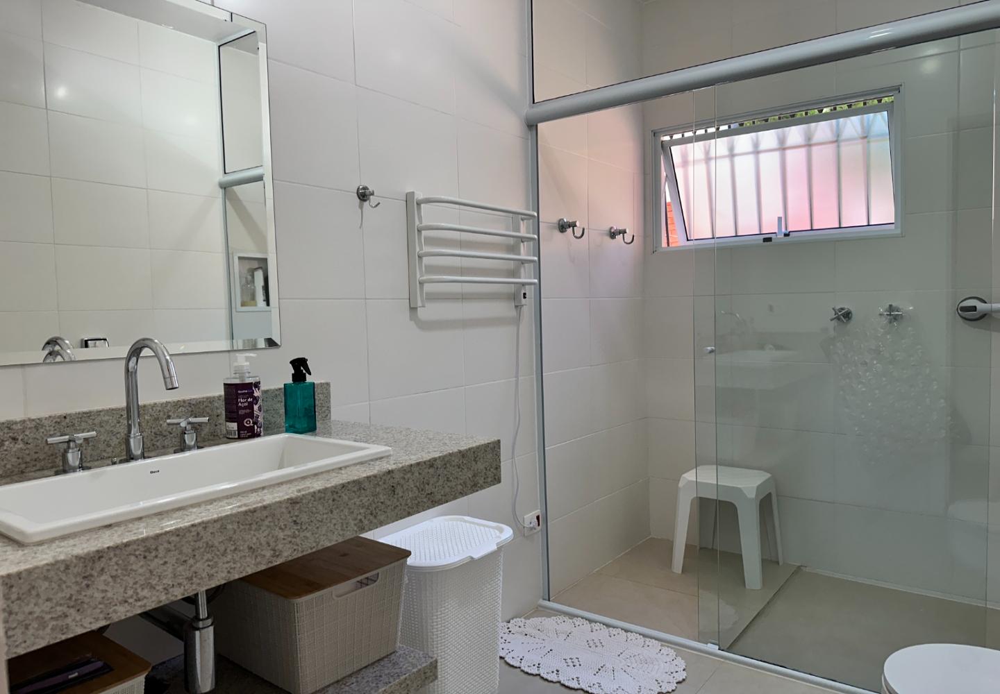 Ainda no piso principal ficam os outros três dormitórios, totalizando quatro no imóvel: dois atendidos por banheiro social e uma suíte master com closet, além de lavabo. Nos fundos, a área gourmet se conecta a um trecho mais reservado do jardim, onde estão a sauna e a hidromassagem. A casa de caseiros adiciona praticidade para apoio e manutenção, e o terreno oferece margem para atualizações pontuais que elevam ainda mais o padrão do conjunto.