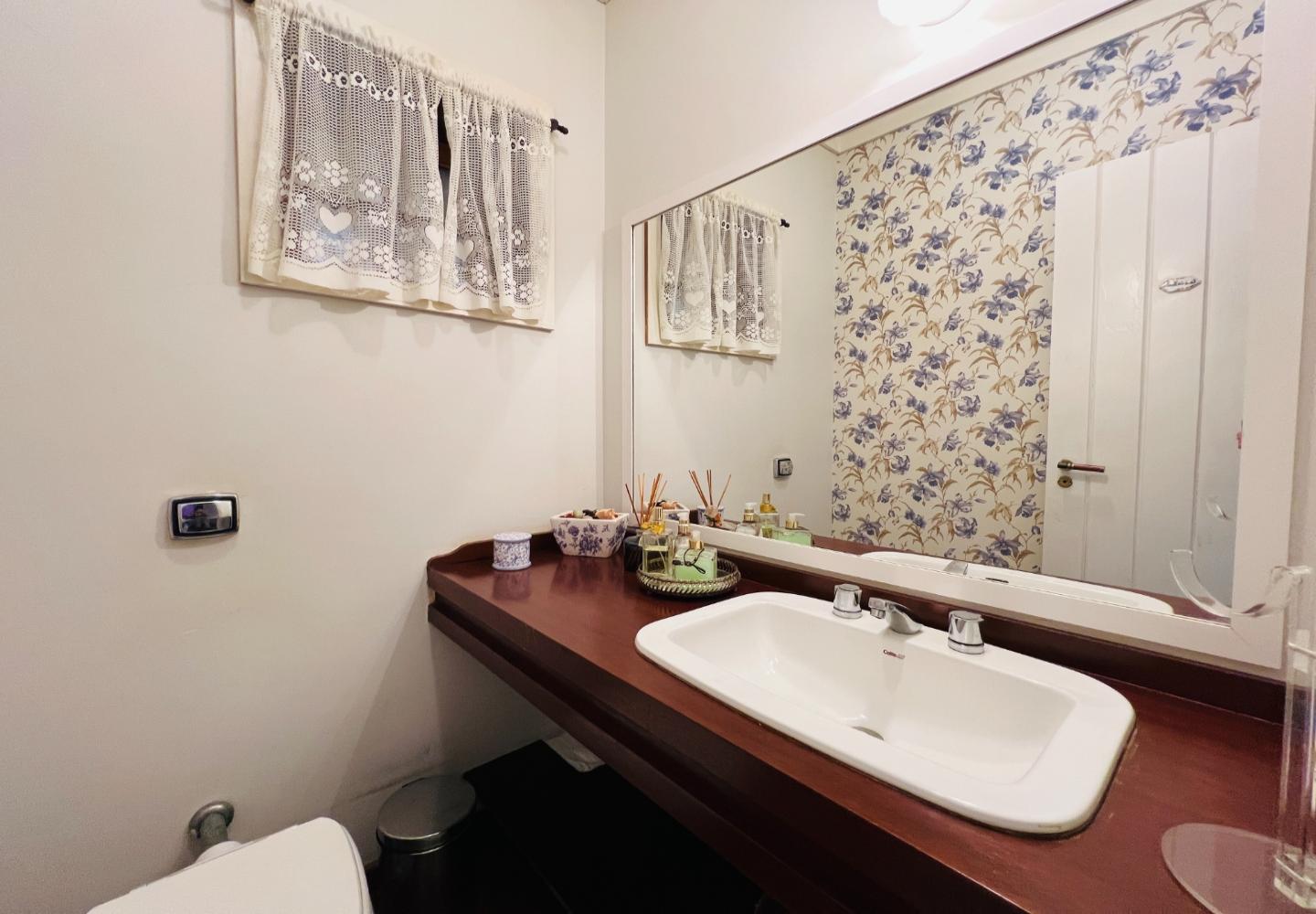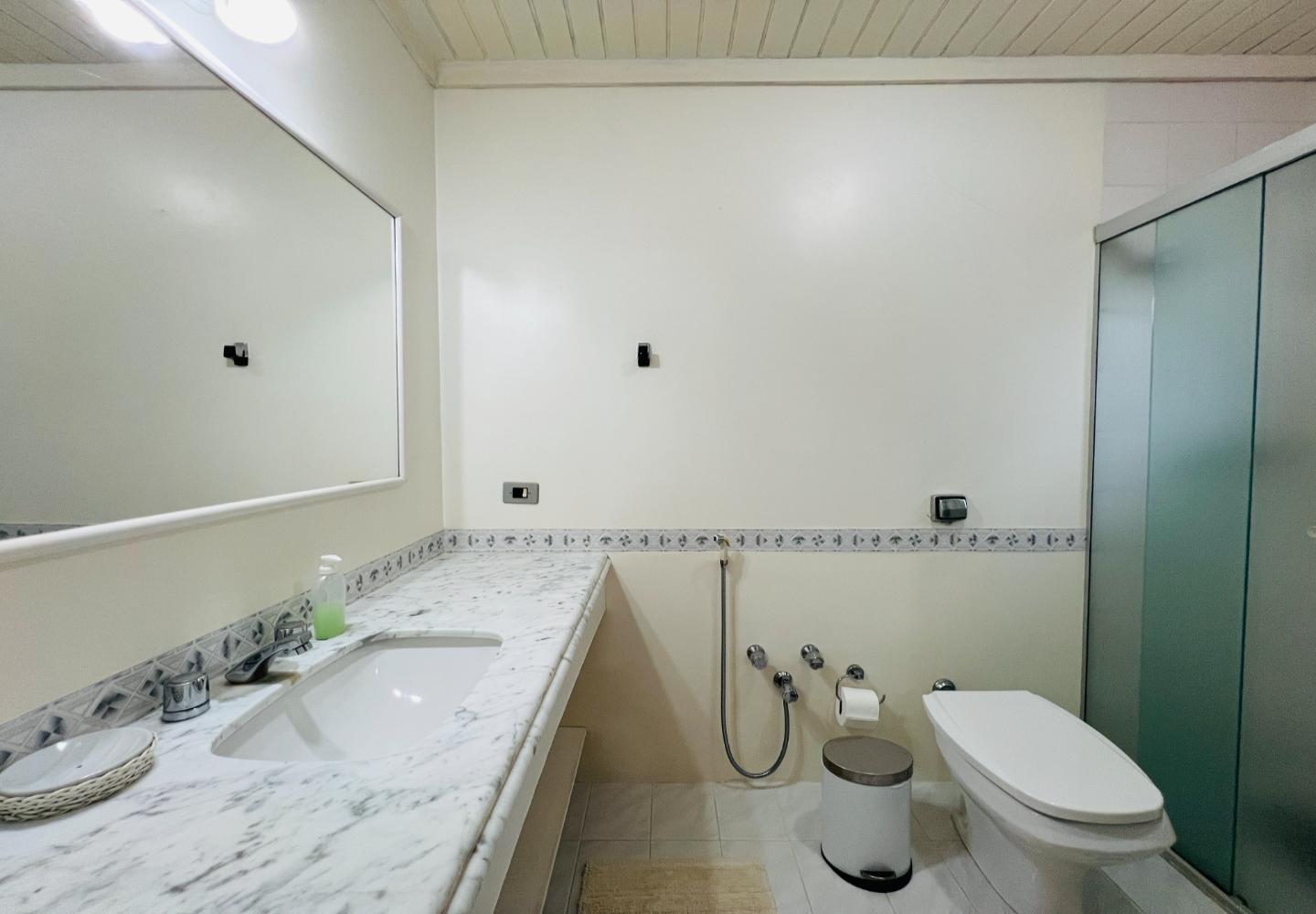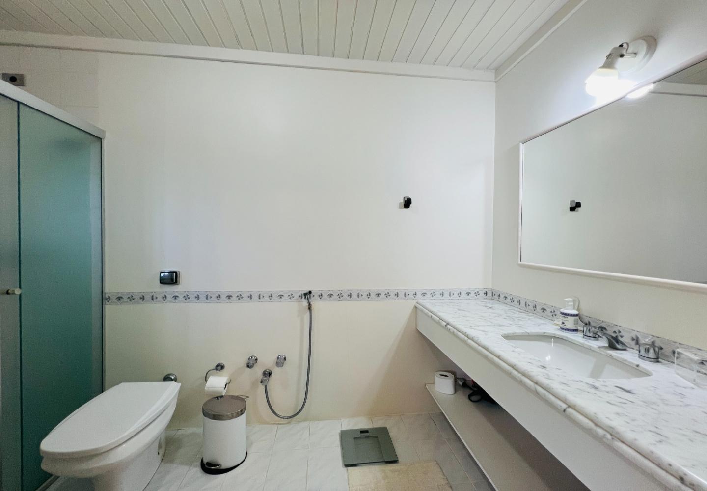 No piso térreo, a área social é marcada pela sala de lareira com pé-direito alto, integrada à sala de estar e TV. O pavimento inclui ainda lavabo, sala de jantar com dois ambientes, deck voltado para a vista permanente, ampla cozinha com móveis planejados, lavanderia e despensa.