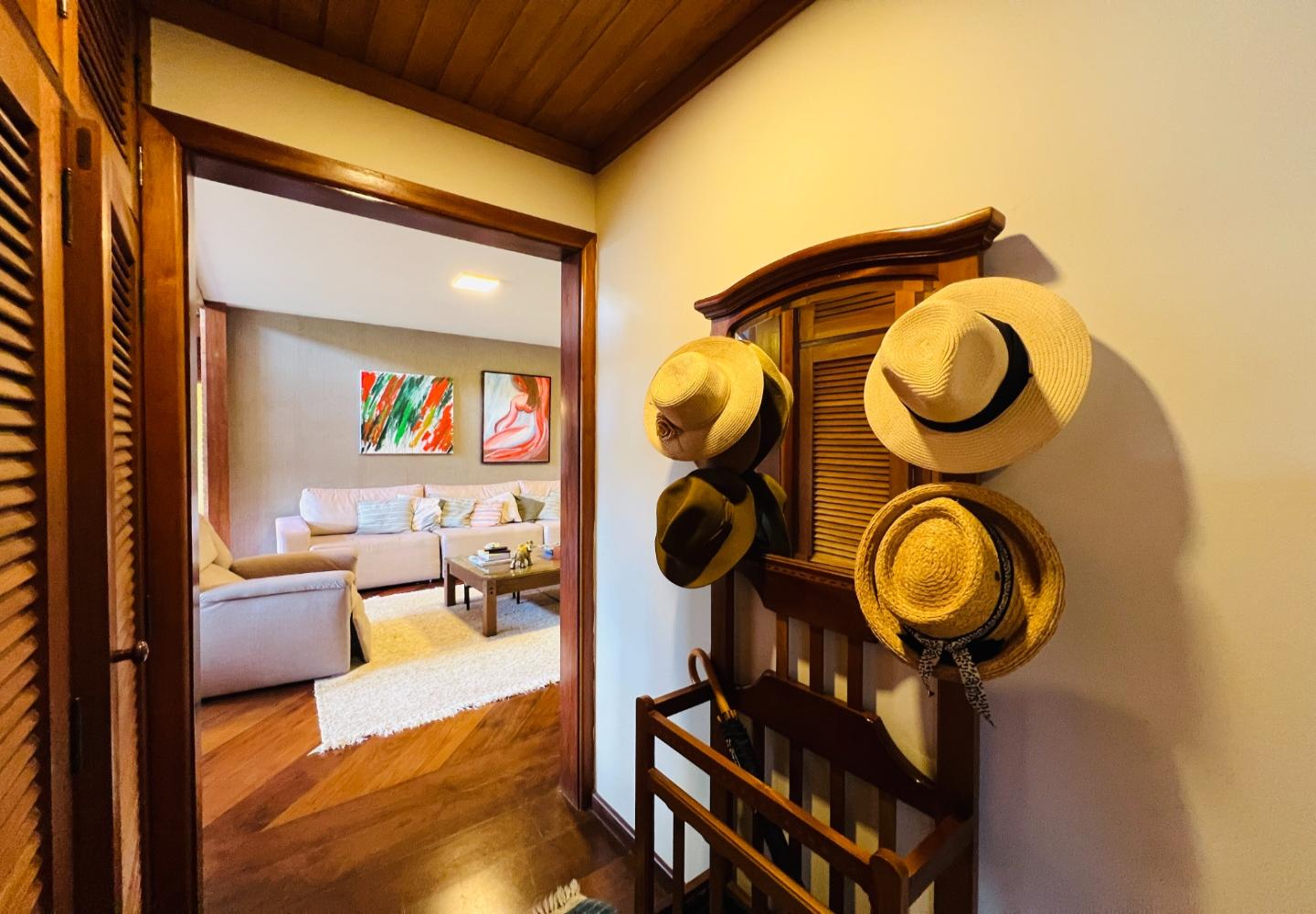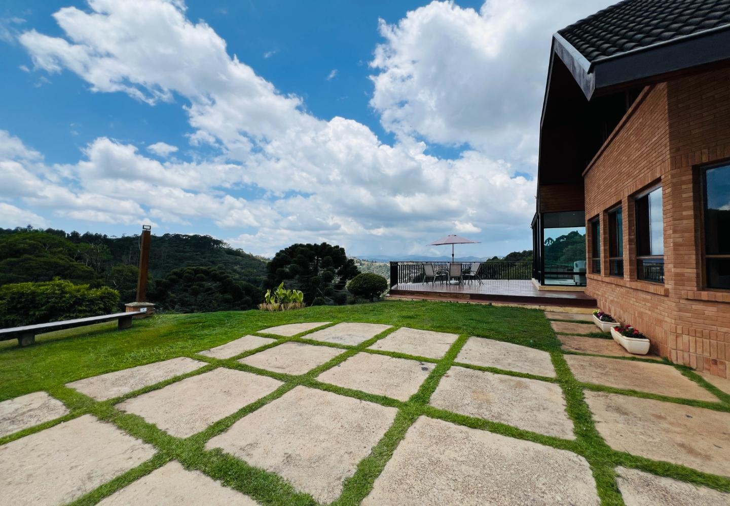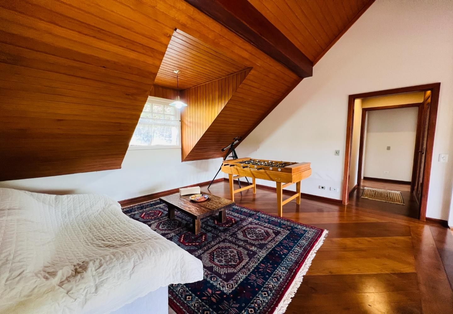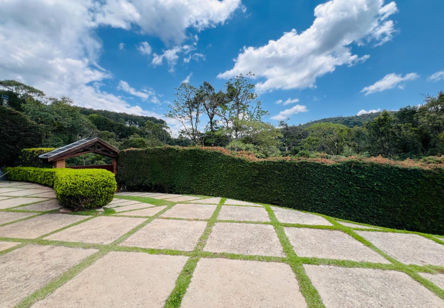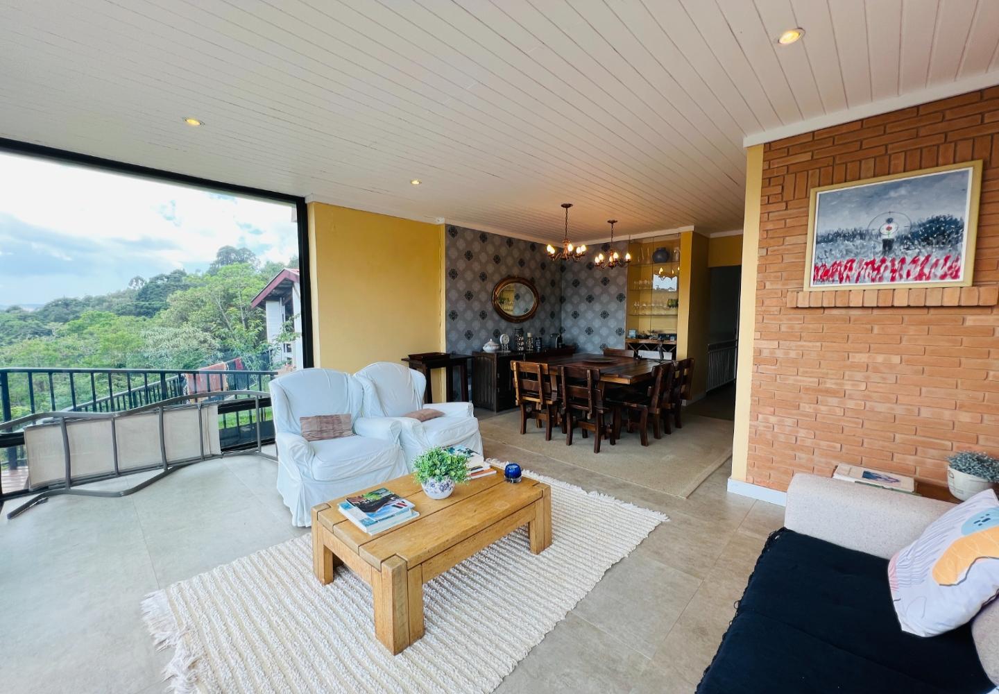 No piso superior, o mezanino dá acesso a duas suítes, uma sala íntima e um ateliê generoso, com excelente iluminação natural e ventilação. A área externa, implantada em terreno de 1.150 m², apresenta jardim gramado, bom aproveitamento do relevo e vista definitiva para as montanhas. Com 350 m² de área construída, esta casa se destaca pela qualidade estrutural, conforto térmico e localização privilegiada dentro do condomínio.