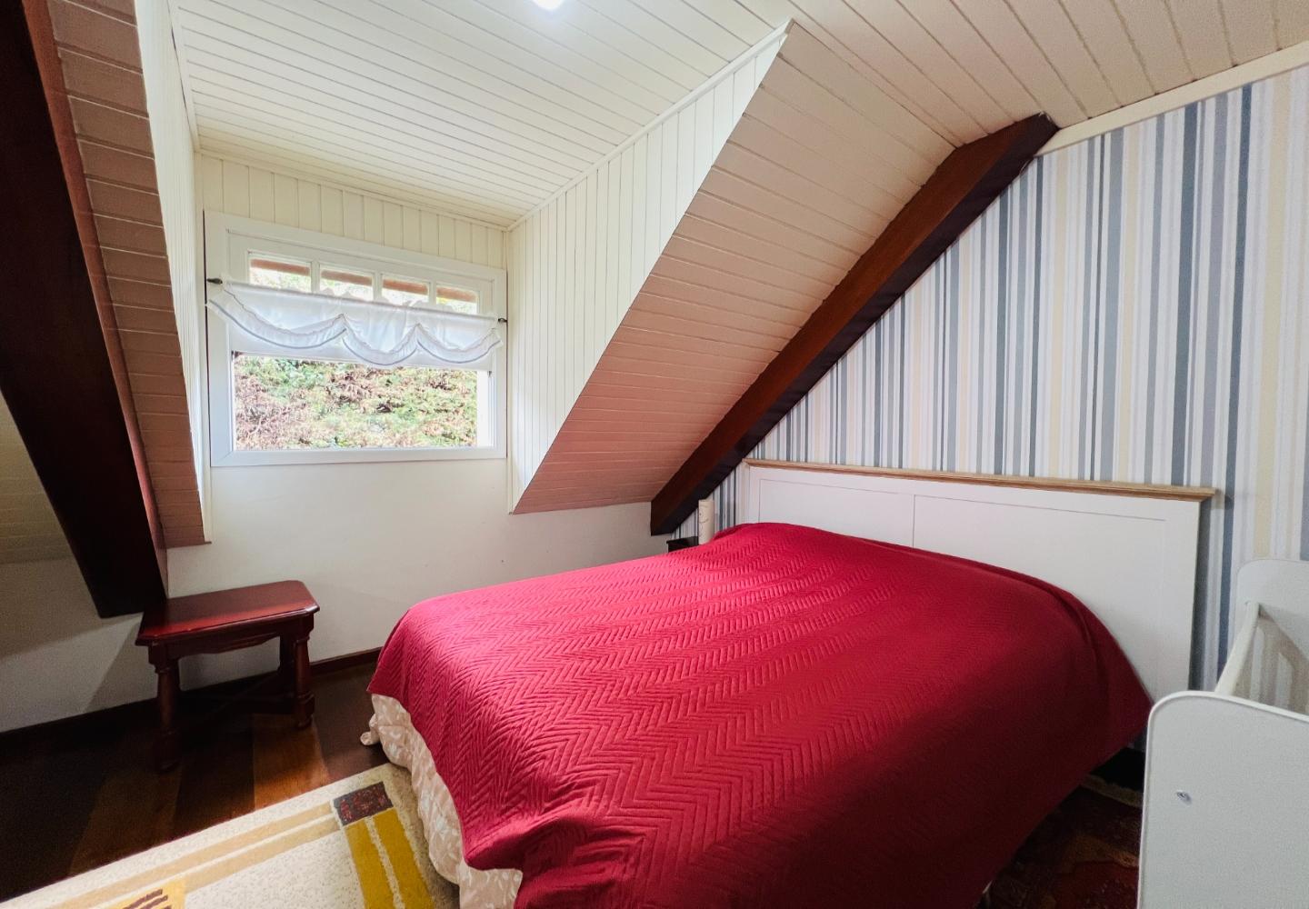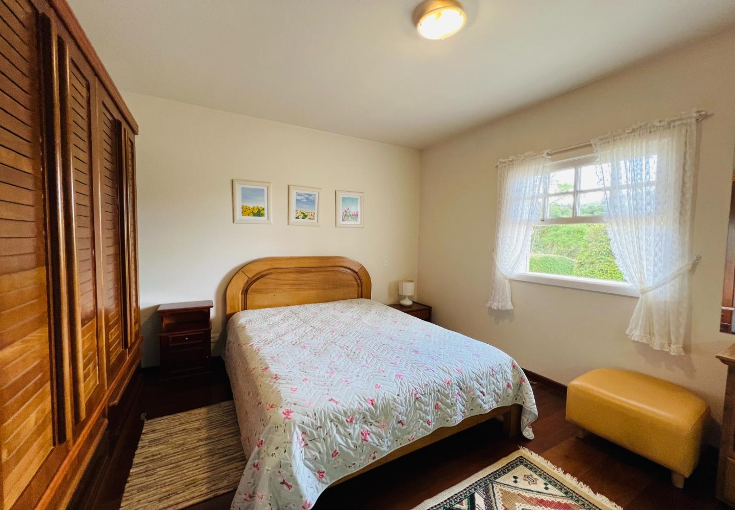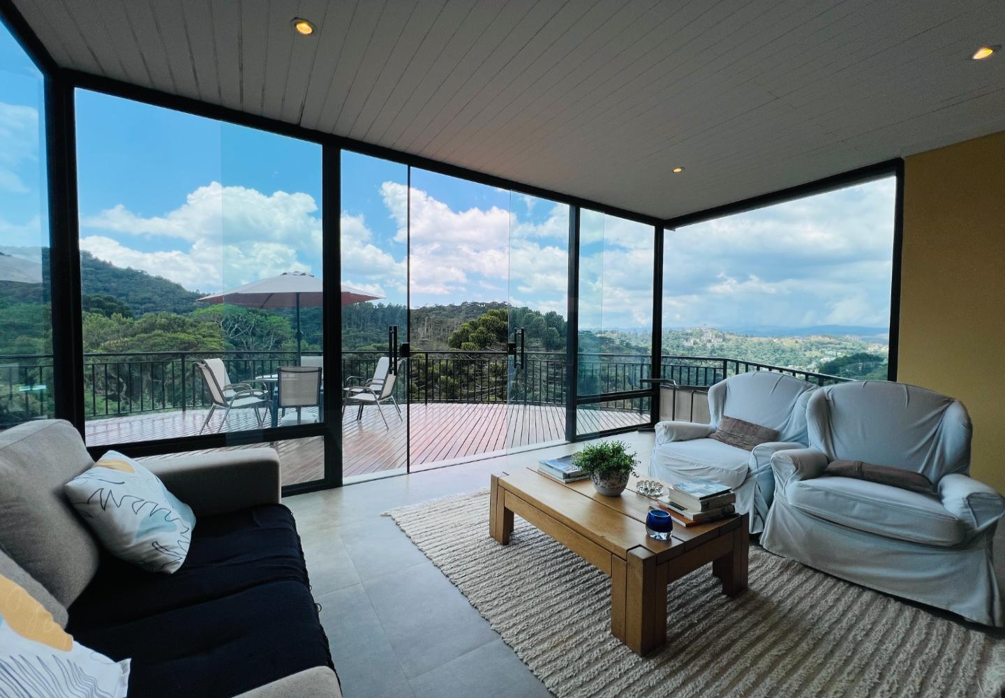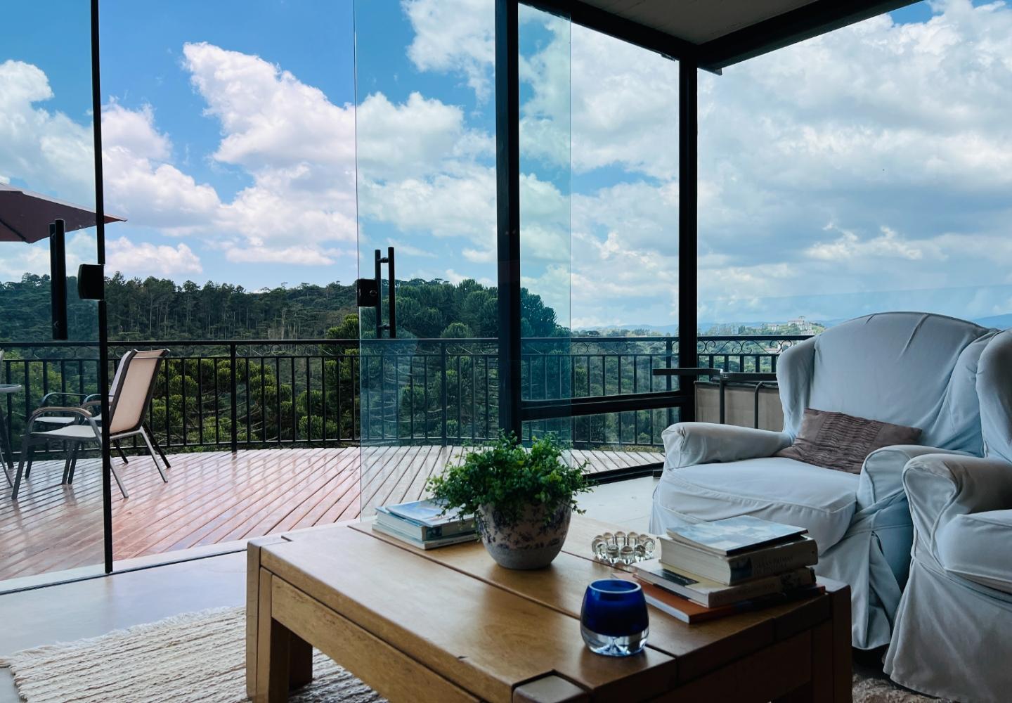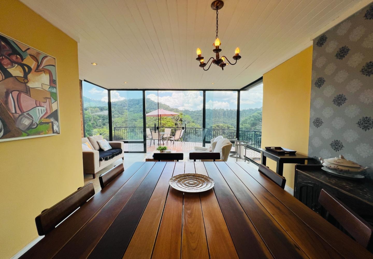 No piso superior, o mezanino dá acesso a duas suítes, uma sala íntima e um ateliê generoso, com excelente iluminação natural e ventilação. A área externa, implantada em terreno de 1.150 m², apresenta jardim gramado, bom aproveitamento do relevo e vista definitiva para as montanhas. Com 350 m² de área construída, esta casa se destaca pela qualidade estrutural, conforto térmico e localização privilegiada dentro do condomínio.