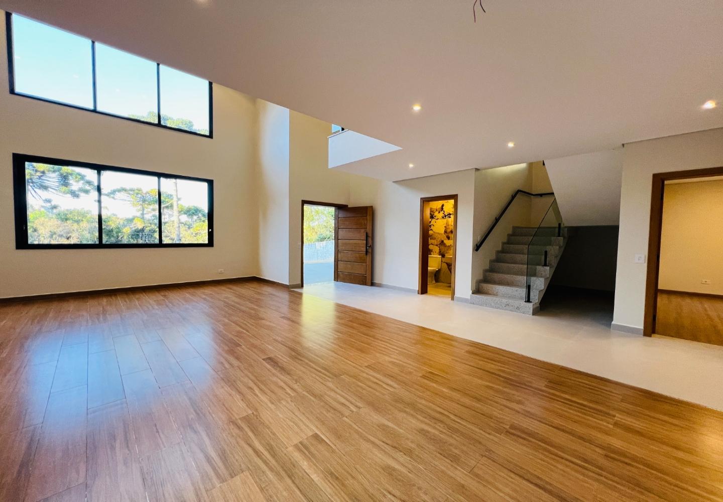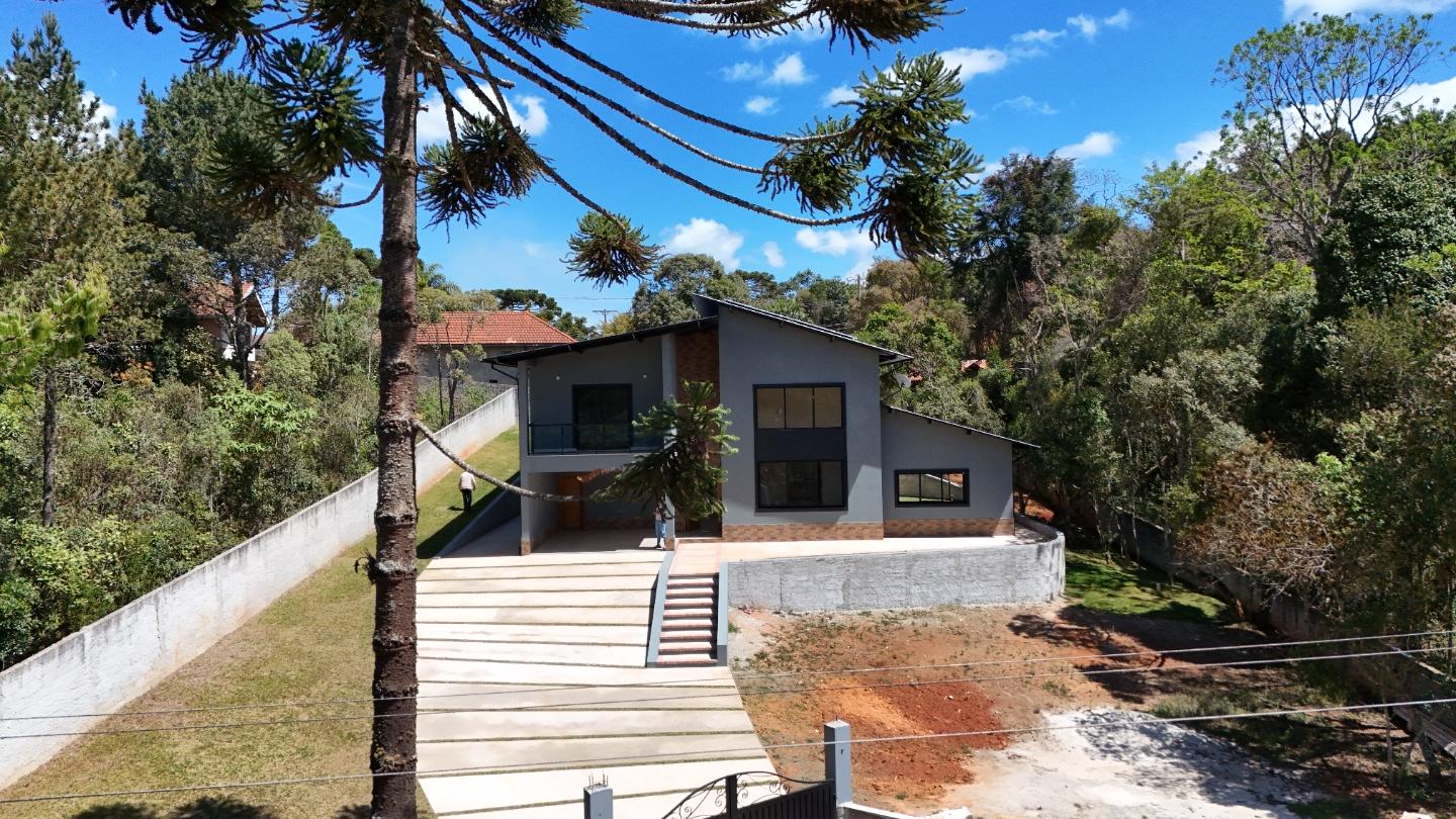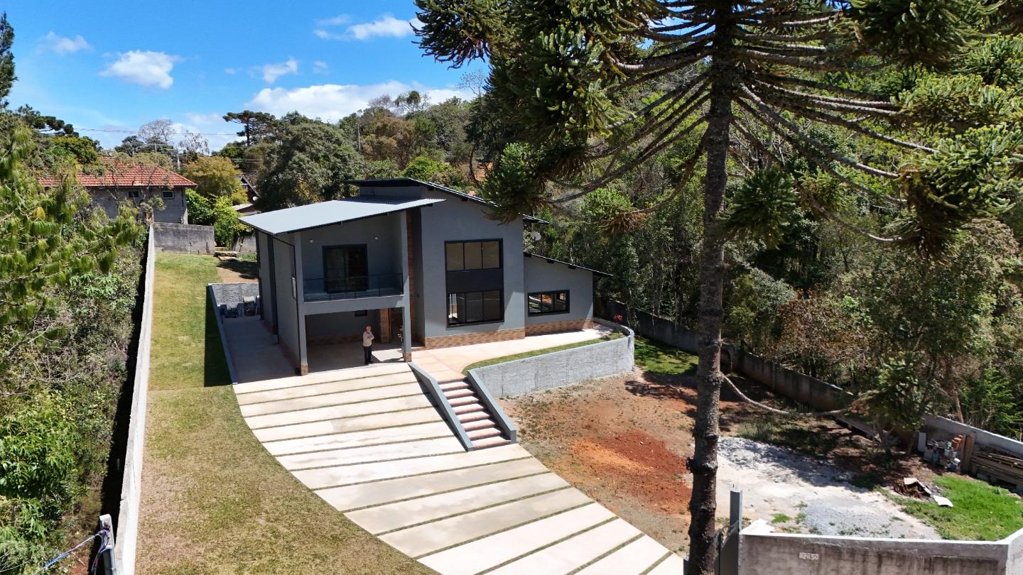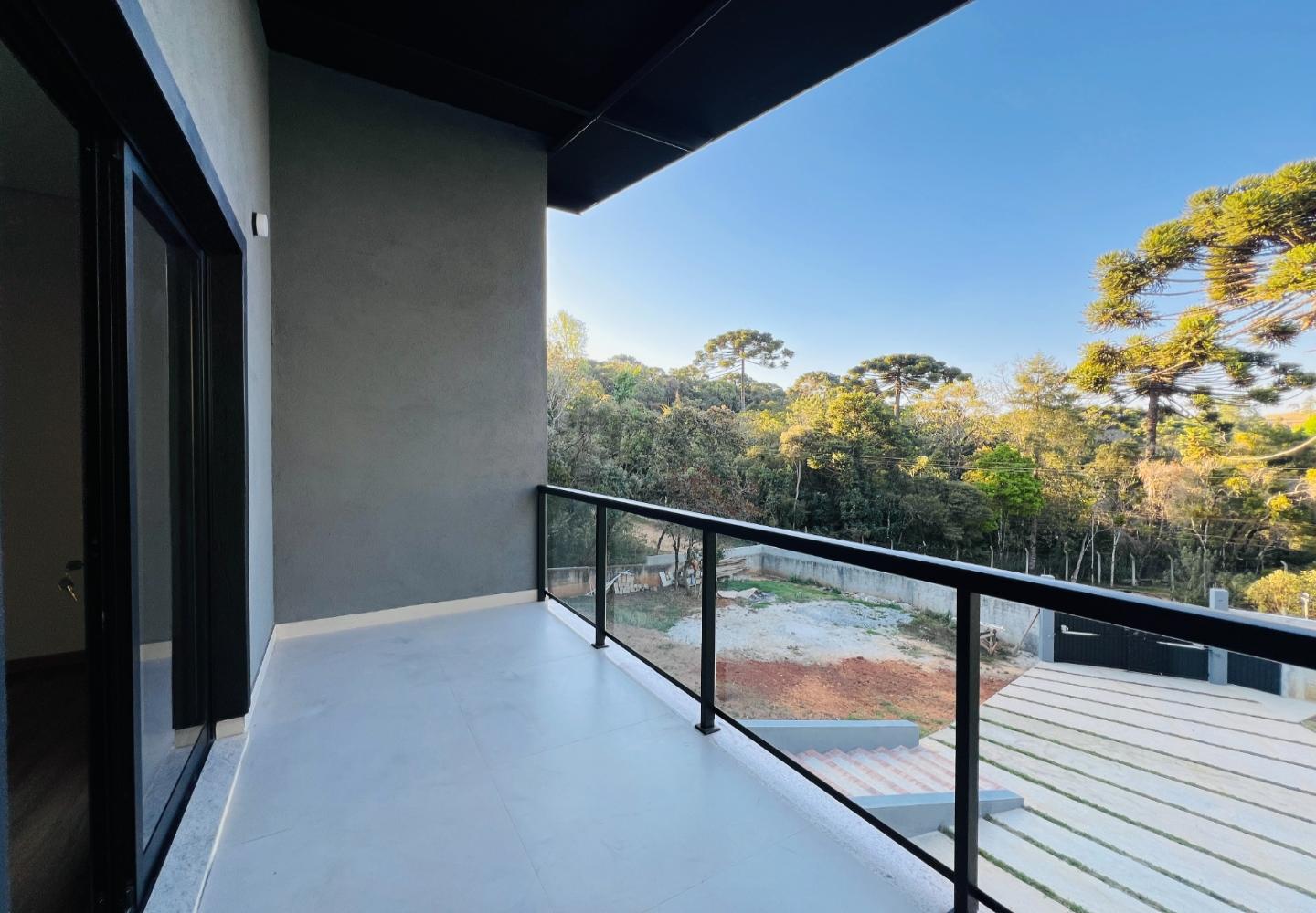 O imóvel conta ainda com varandas com vista para as araucárias, banheiros modernos com acabamentos em porcelanato, área externa gramada, espaço reservado para churrasqueira e área gourmet, além de amplo quintal para lazer. O portão de entrada e o acesso pavimentado garantem praticidade e segurança.